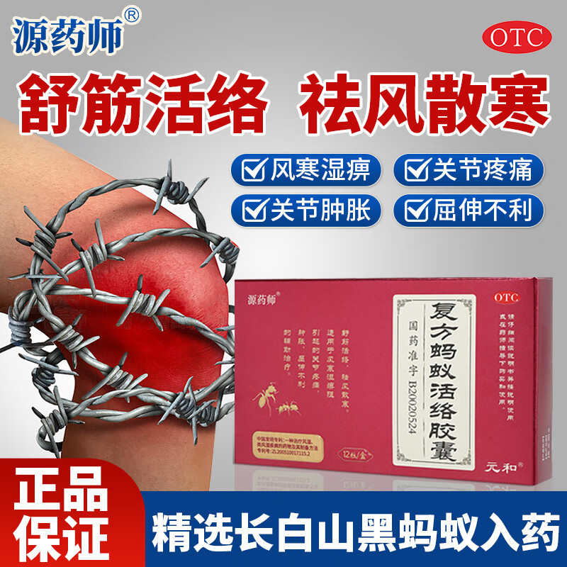 [源药师]复方蚂蚁活络胶囊 0.3g*12粒 3盒装 舒筋活络 祛风散寒 适用于风寒湿痹阻引起的关节疼痛肿胀屈伸不利的辅助治疗 风寒湿痹 舒筋活络