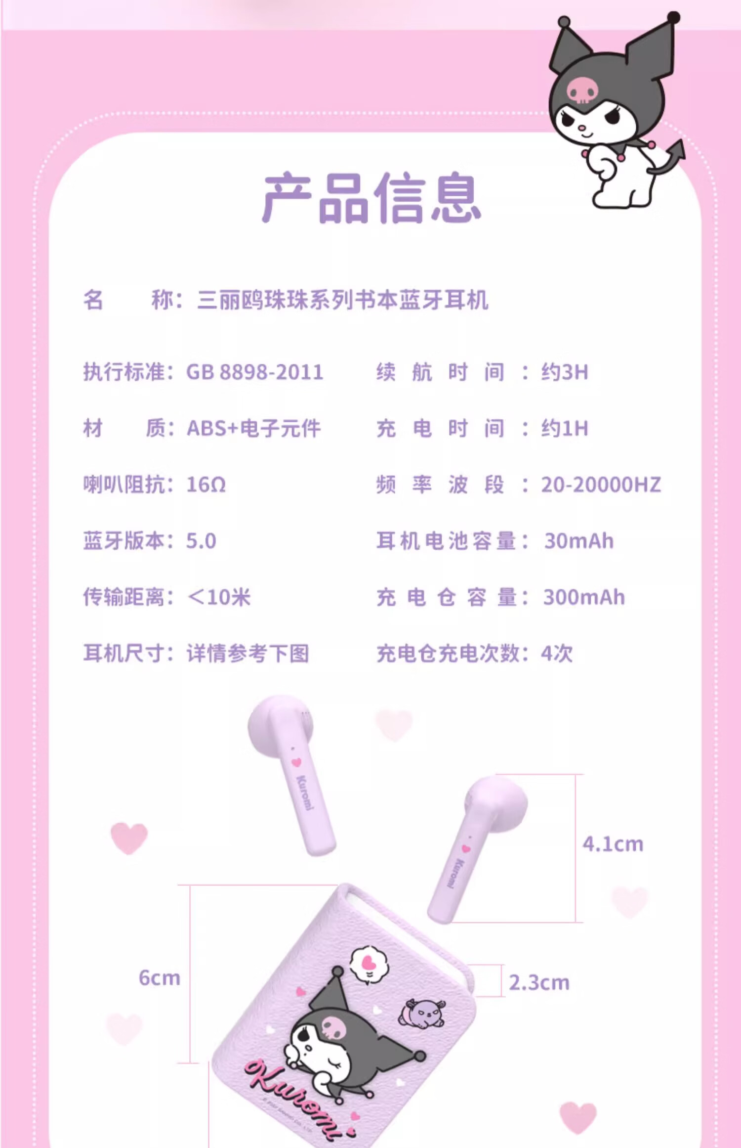 KUROMI三丽鸥系列库洛米方糖书本蓝牙耳机卡通可爱帕恰狗联名通话降噪音乐无线半入耳式学生儿童卡通礼物 JS-0106黄色【帕恰狗】 适用华为鸿蒙安卓苹果oppo