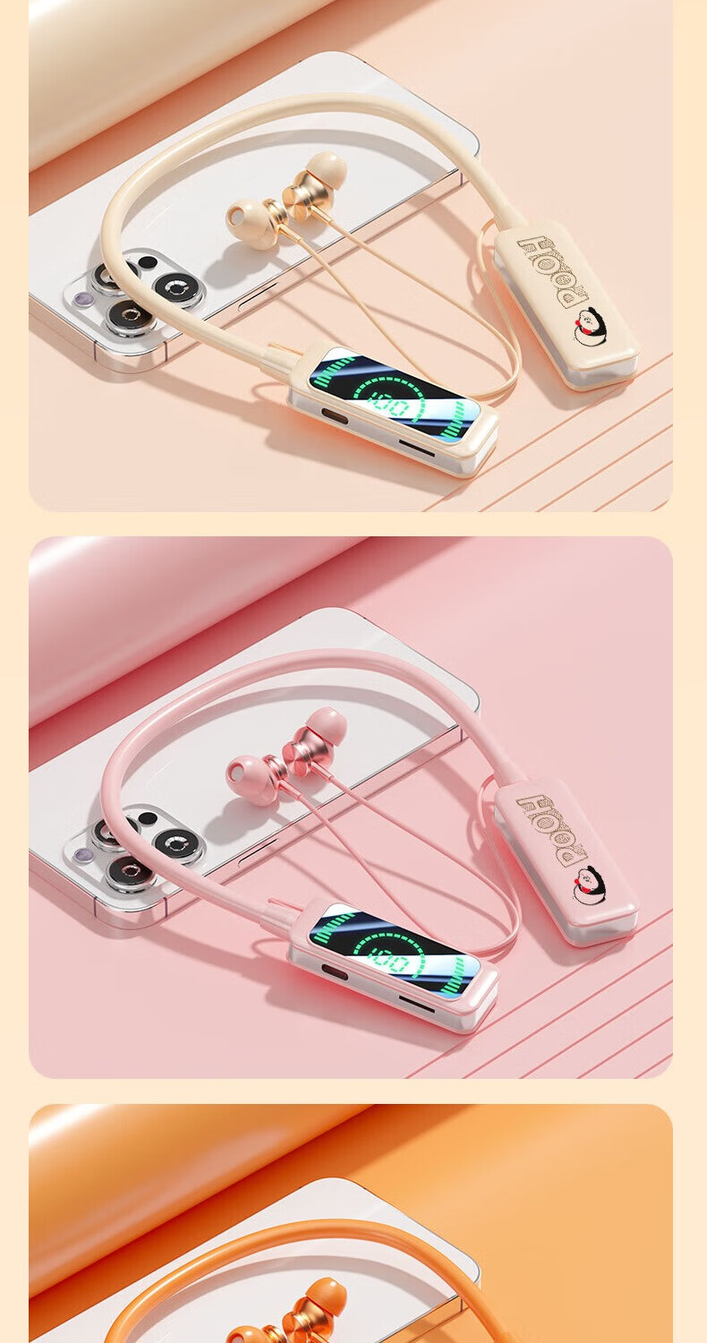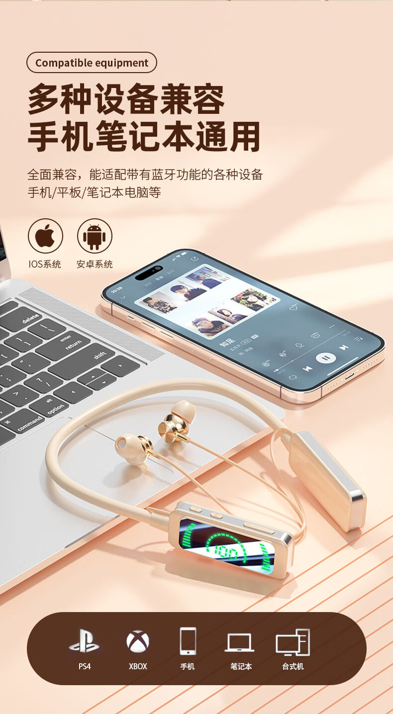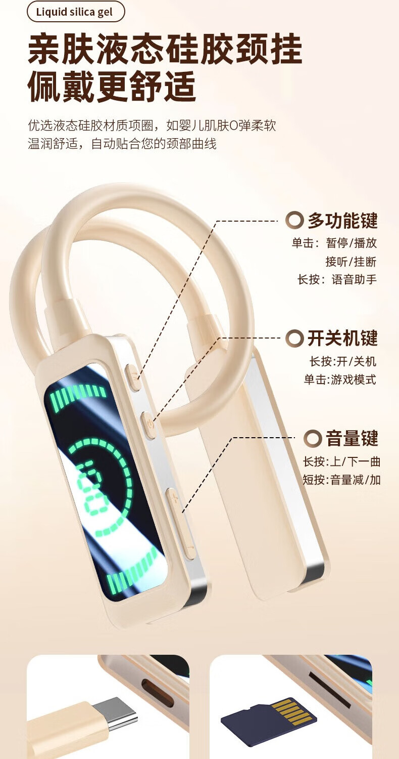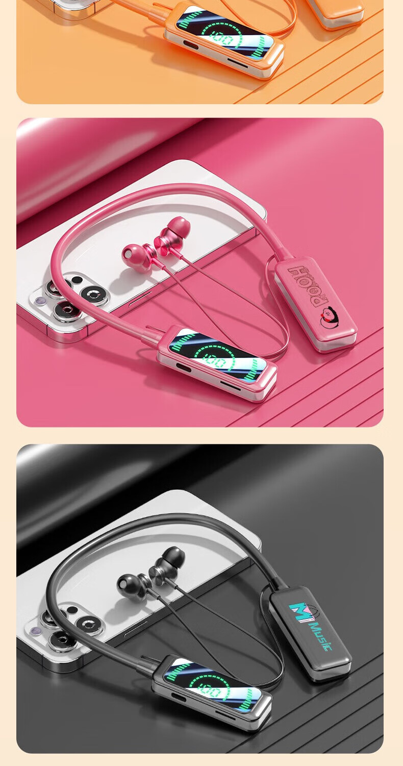 麦拉森【优选百货】入耳式挂脖蓝牙耳机K歌录歌直播带耳返混响超长续航适用于苹果华为手机通用 粉色【Y6】 可K歌+可插入内存卡