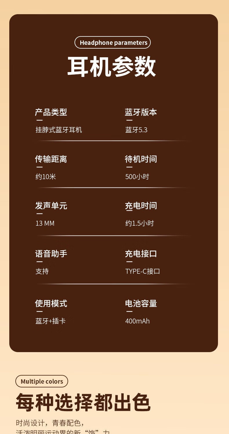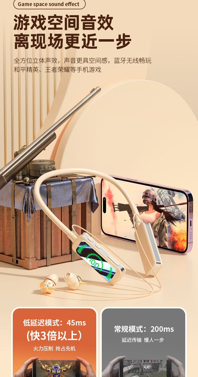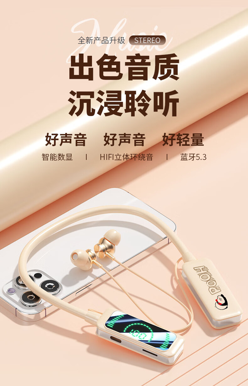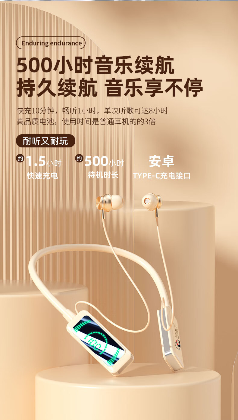 麦拉森【优选百货】入耳式挂脖蓝牙耳机K歌录歌直播带耳返混响超长续航适用于苹果华为手机通用 粉色【Y6】 可K歌+可插入内存卡