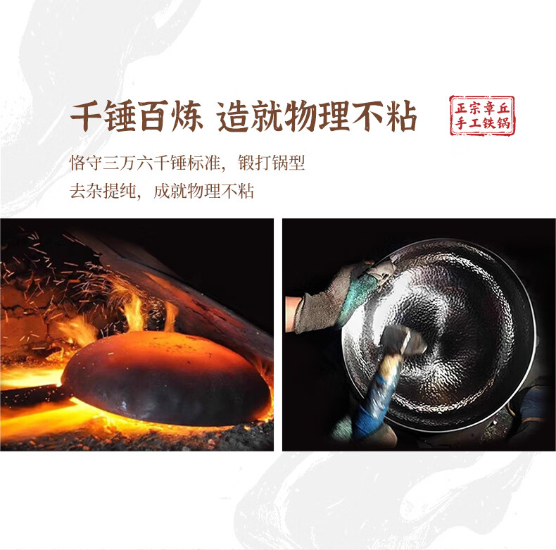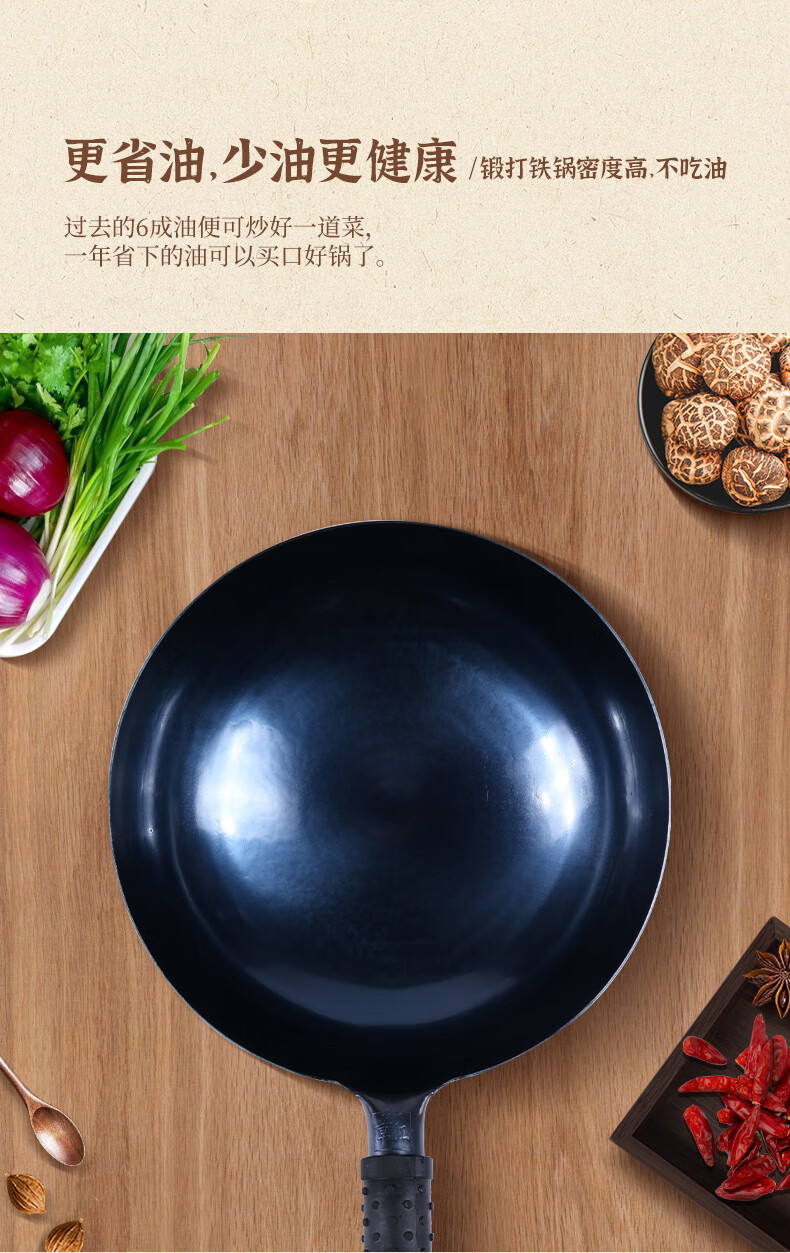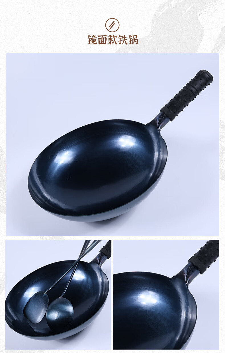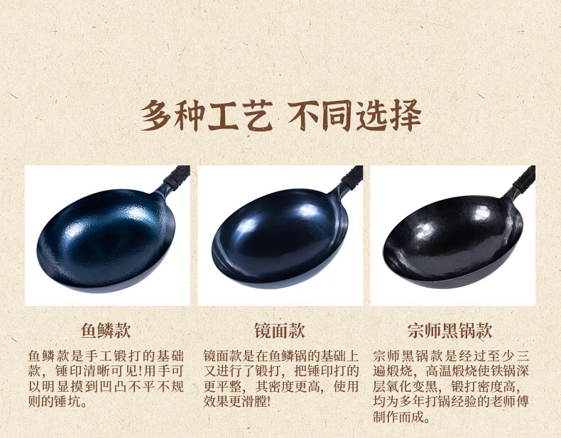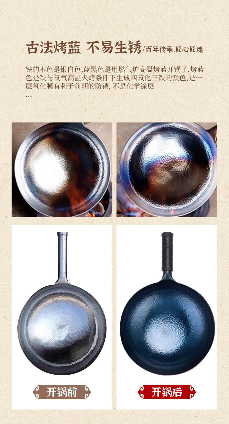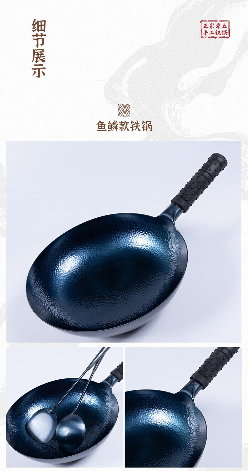 谭铁匠正宗章丘老式铁锅炒菜锅手工锻打家用炒锅无涂层物理不粘锅熟铁锅 手工鱼鳞款【三万六千锤】+已开锅 32cm