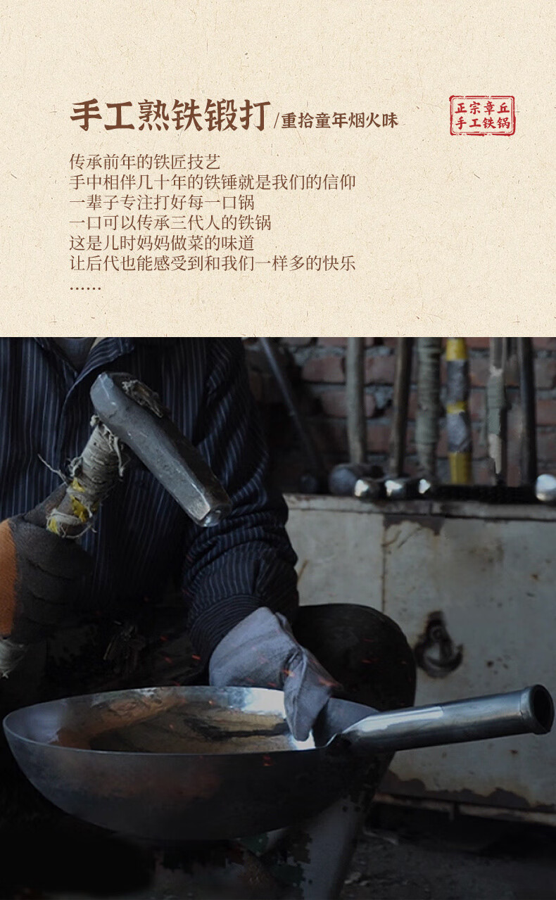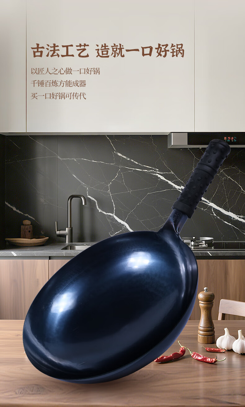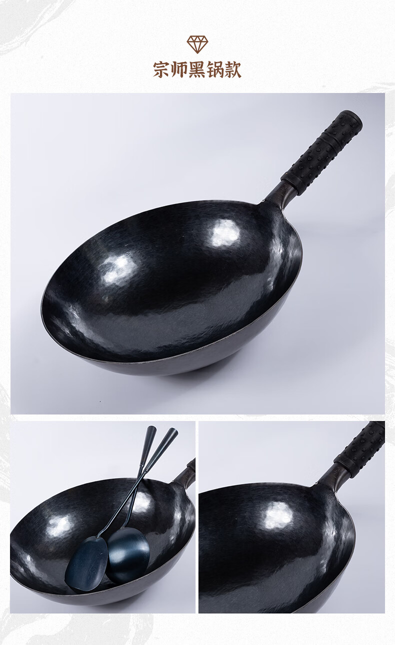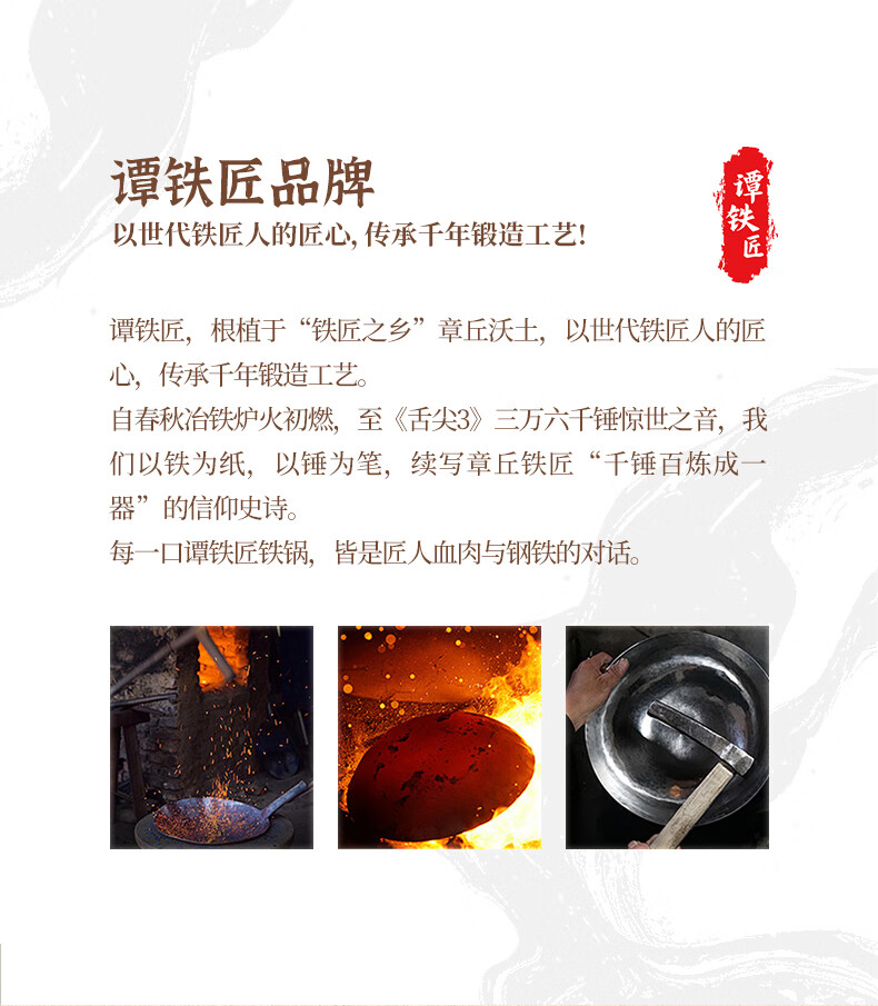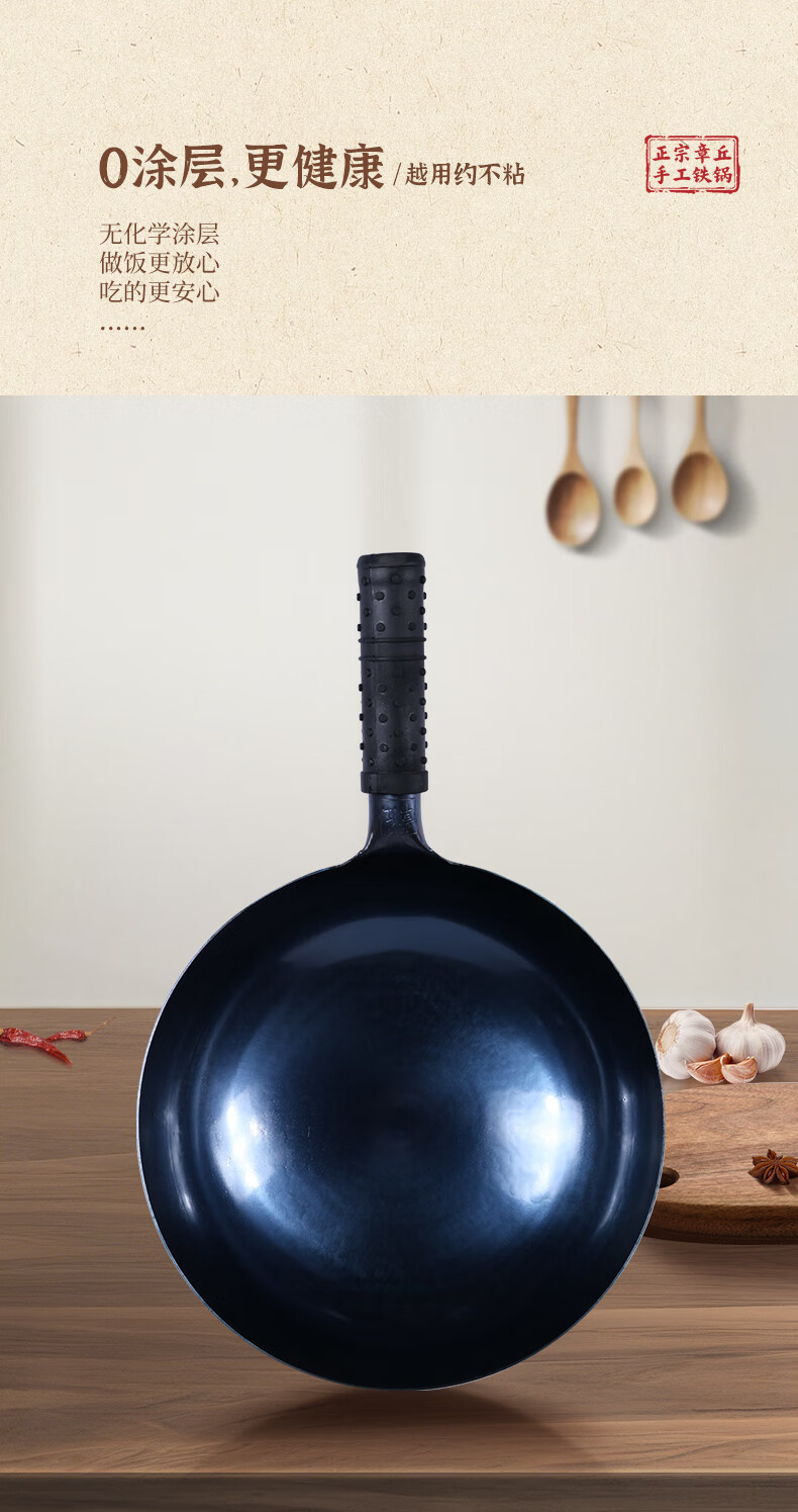 谭铁匠正宗章丘老式铁锅炒菜锅手工锻打家用炒锅无涂层物理不粘锅熟铁锅 手工鱼鳞款【三万六千锤】+已开锅 32cm