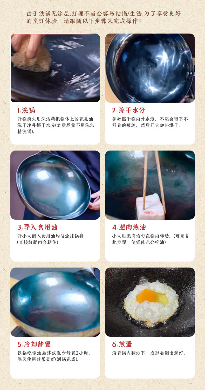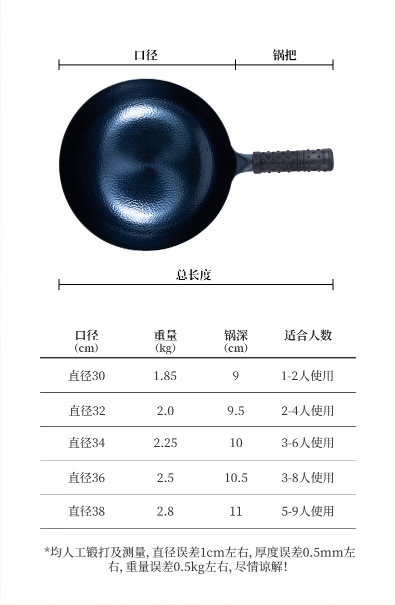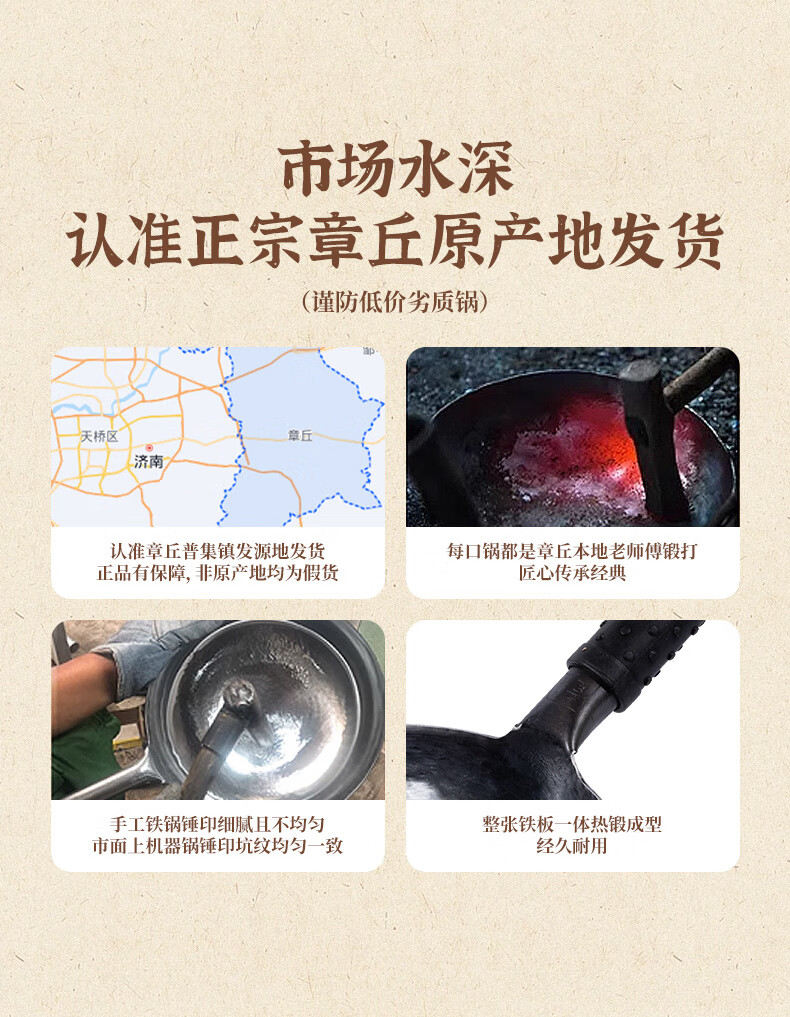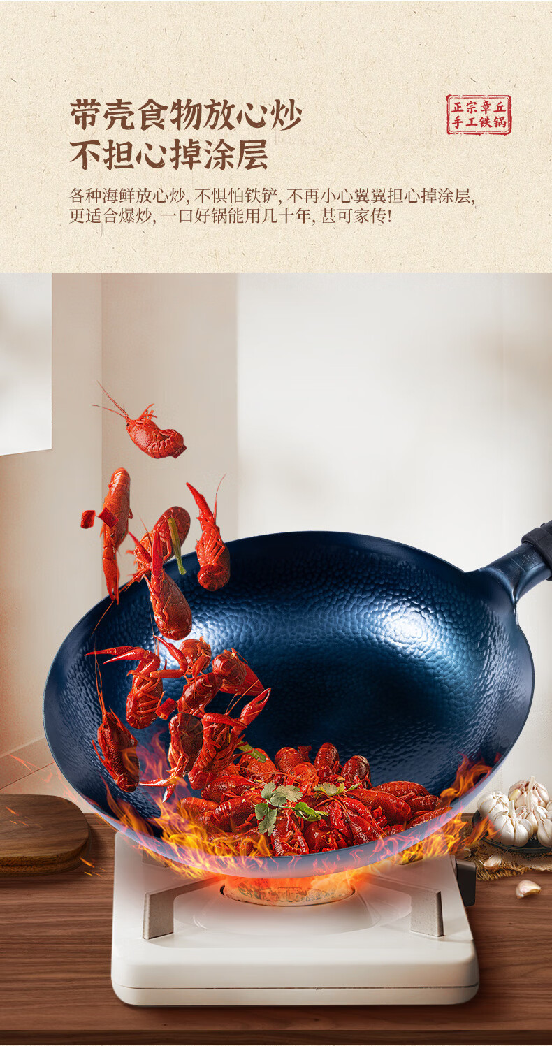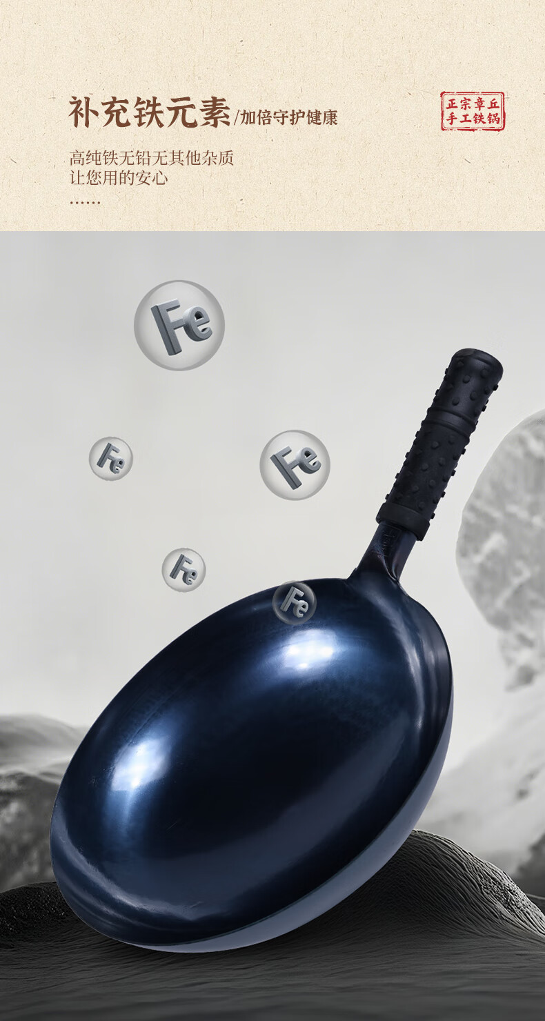 谭铁匠正宗章丘老式铁锅炒菜锅手工锻打家用炒锅无涂层物理不粘锅熟铁锅 手工鱼鳞款【三万六千锤】+已开锅 32cm