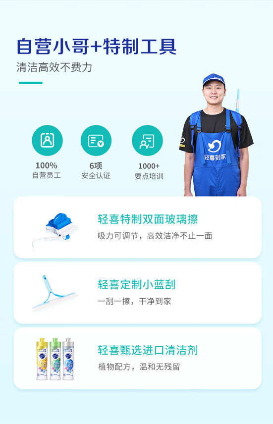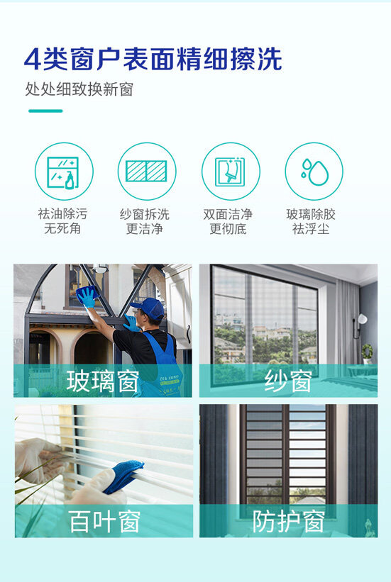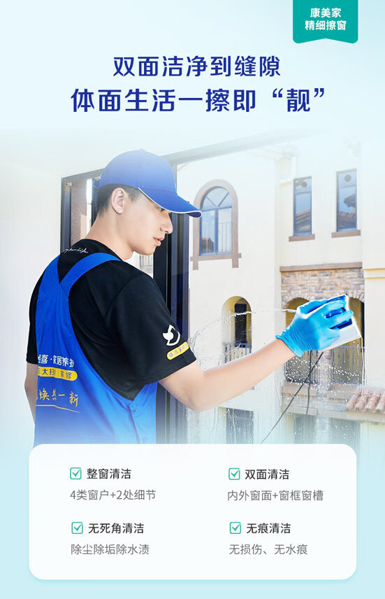 【轻喜到家】家政保洁服务 擦玻璃双面擦窗 台风后精细擦窗除胶窗槽纱窗清洗钟点工小时工上门服务 ≤120㎡ 全国覆盖68城