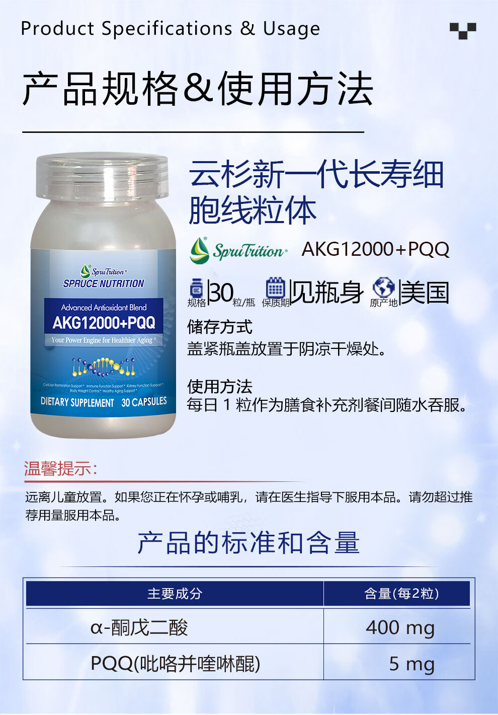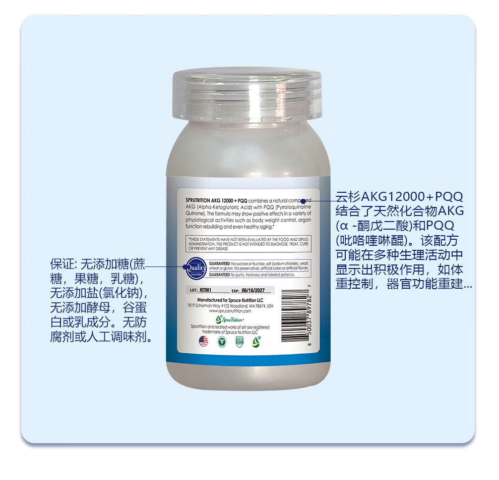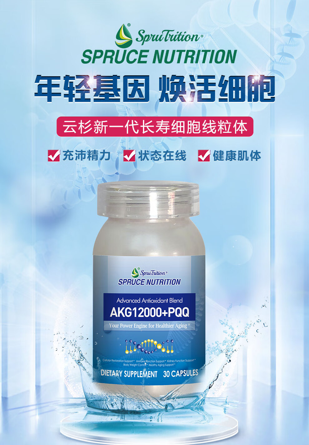SPRUTRITION美国SPRUTRITION 云杉新一代长寿细胞线粒体提高免疫力改善体质 1瓶装