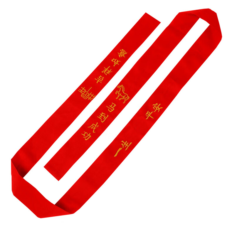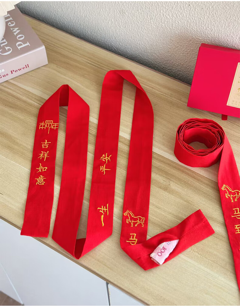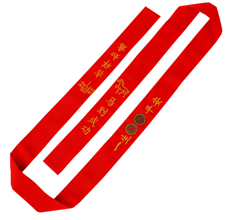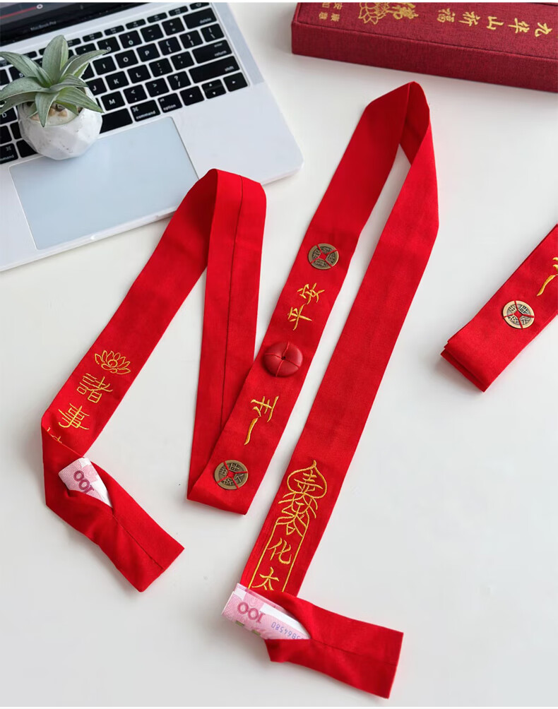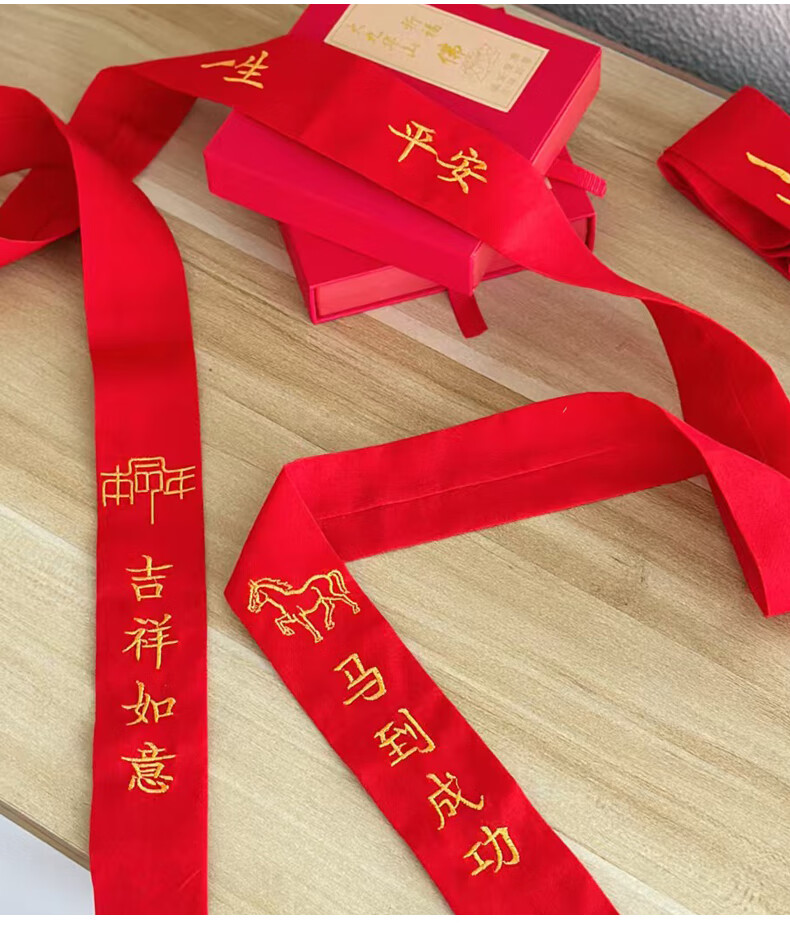 2026马年本命年红腰带朱砂平安扣铜钱纯棉刺绣男女士通用红色裤带 精美刺绣款