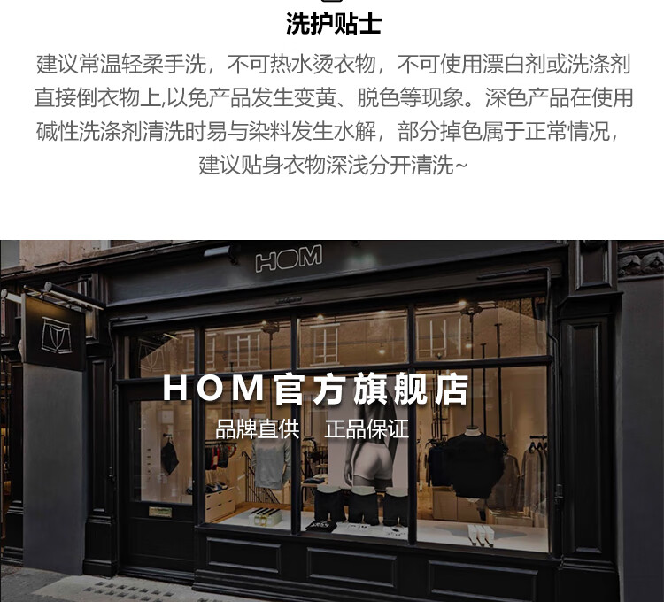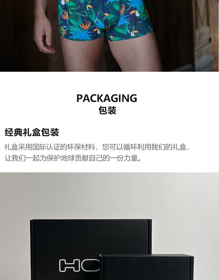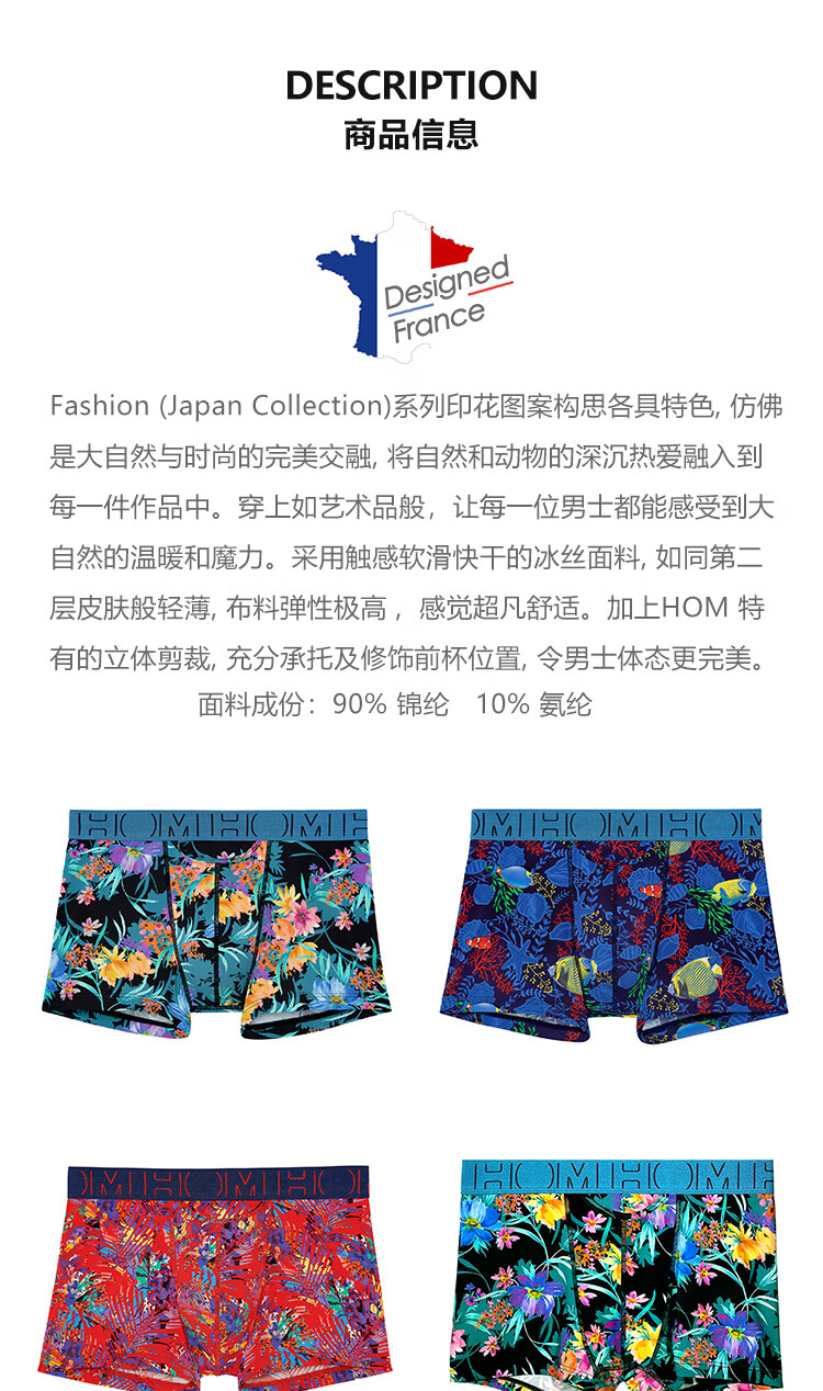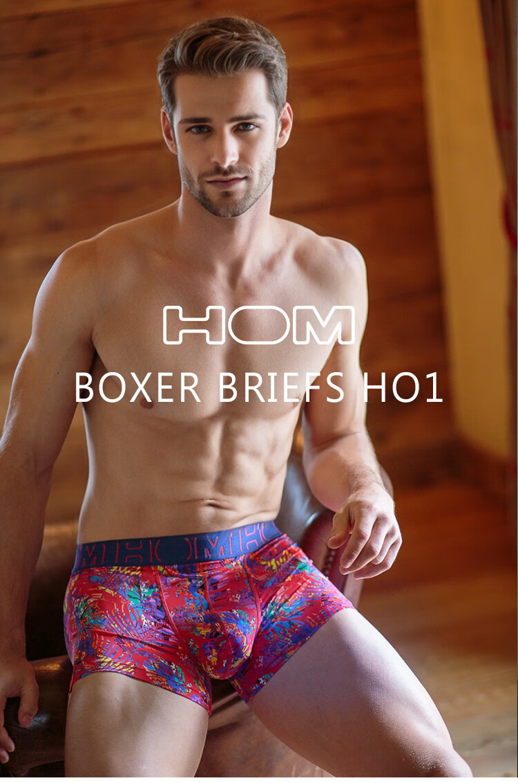 HOM法国男士平角内裤高弹透气平脚裤U凸设计前开口内裤短裤衩正品 黑色印花 M