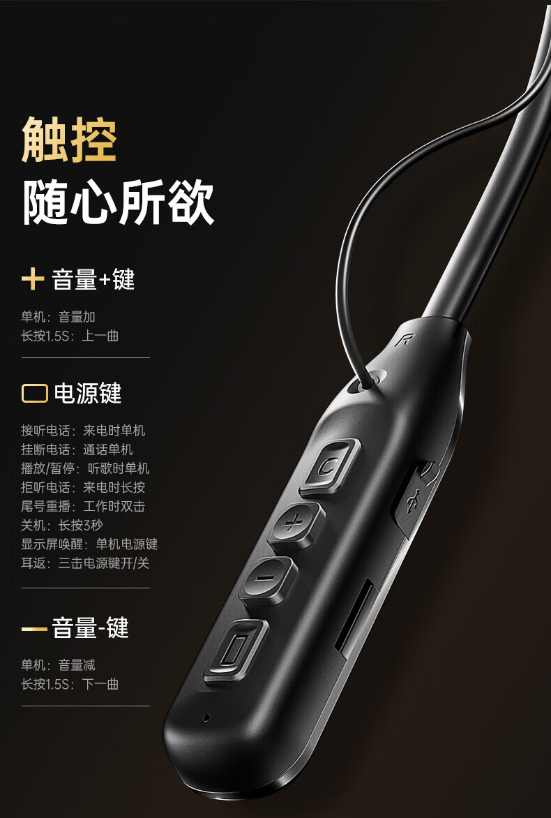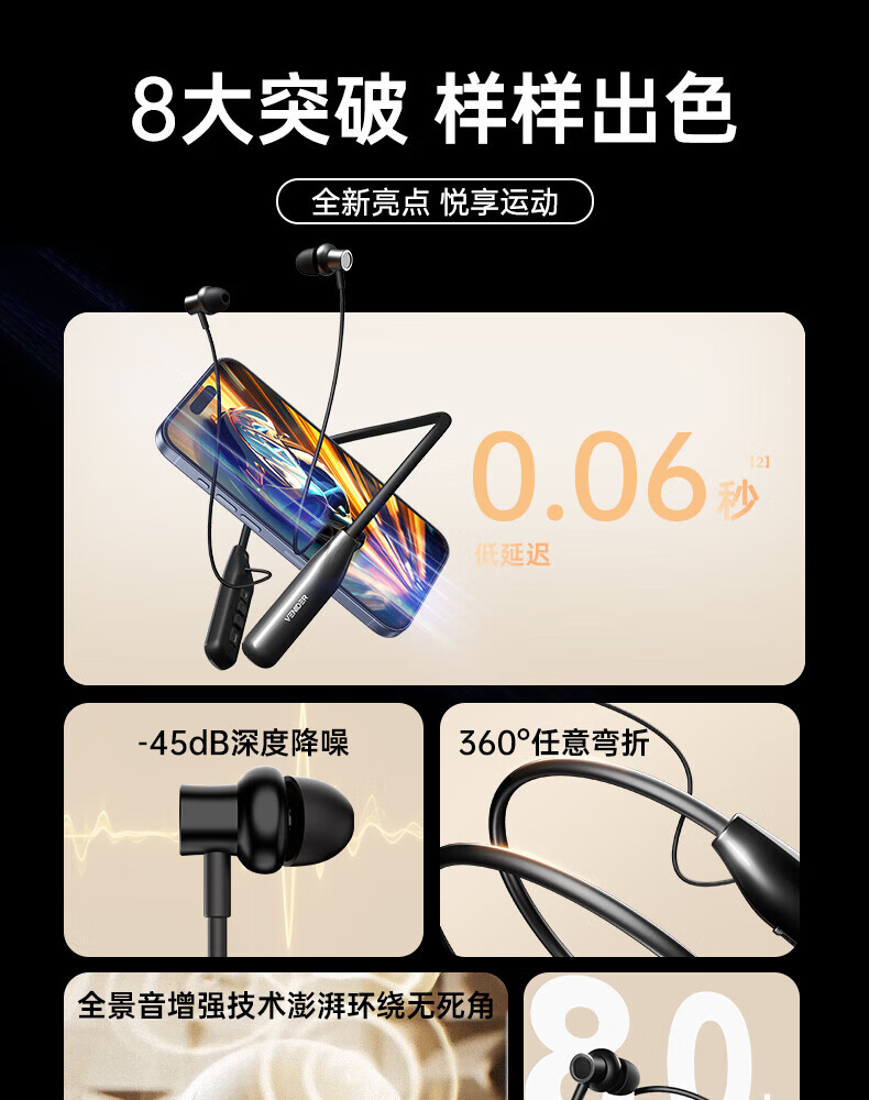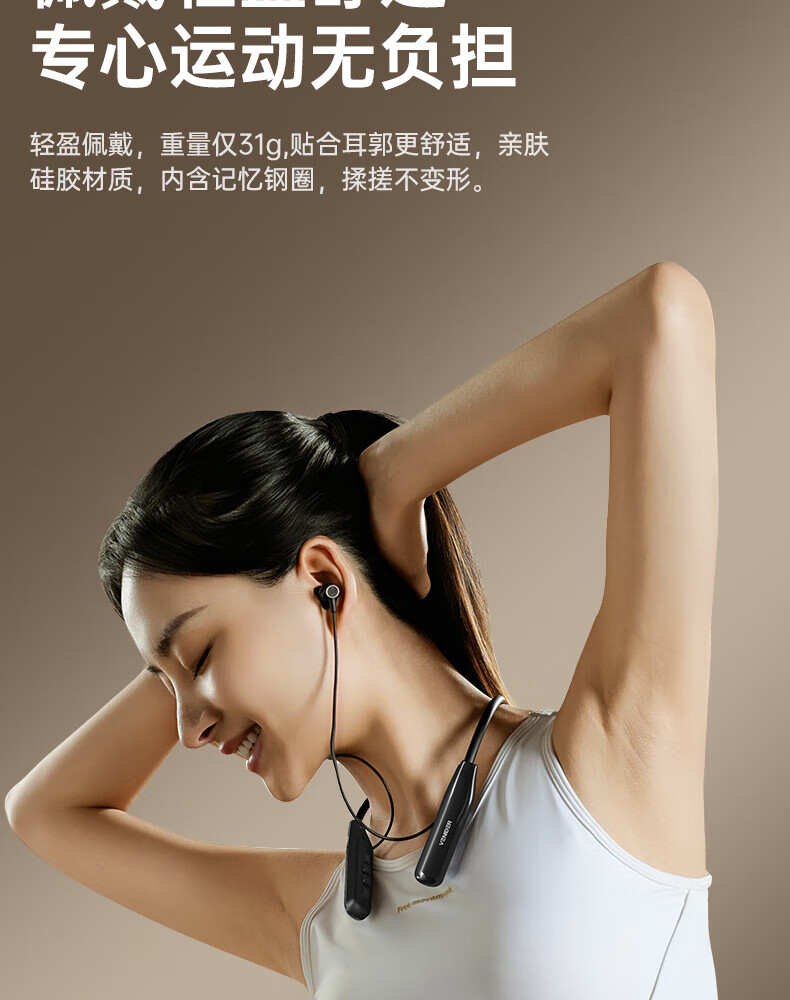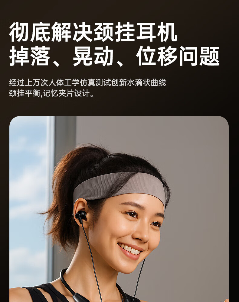 唯立德【久戴不痛丨2026新款】蓝牙耳机挂脖式真无线运动跑步降噪防水防汗耳机HiF音乐耳机 高雅黑 | 不漏音 | 久戴无痛感