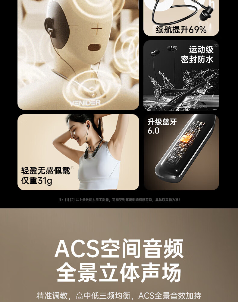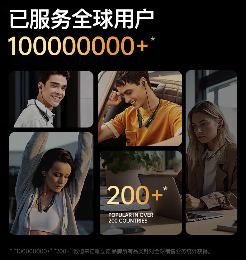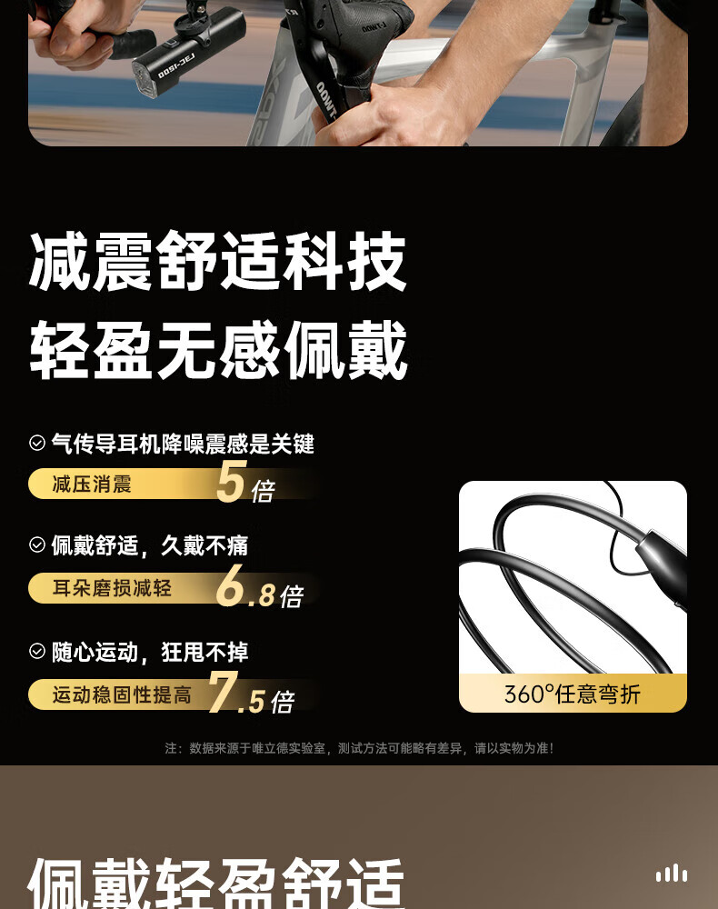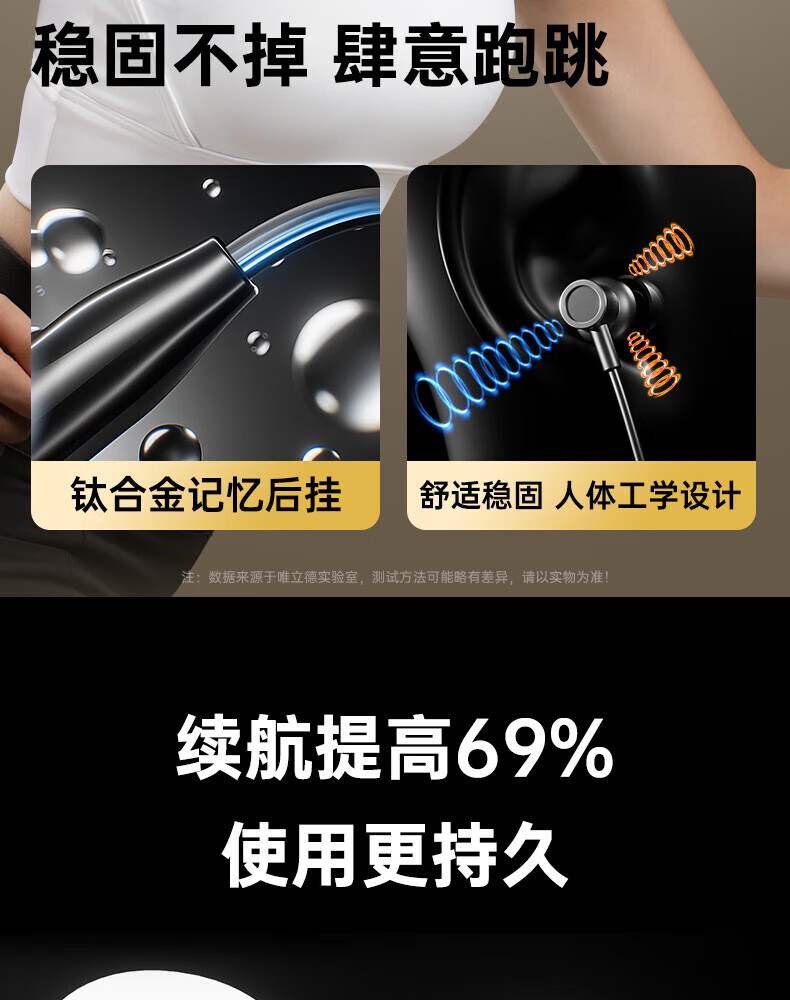唯立德【久戴不痛丨2026新款】蓝牙耳机挂脖式真无线运动跑步降噪防水防汗耳机HiF音乐耳机 高雅黑 | 不漏音 | 久戴无痛感