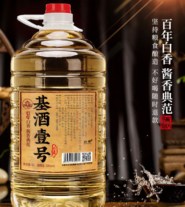 BAIXIANG茅台镇纯粮食散装白酒53度酱香型桶装白酒泡酒专用基酒高粱散酒 53%vol 5L 1桶