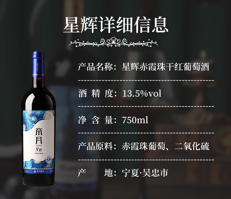 帝月红酒星辉13.5度750ml干红赤霞珠贺兰山东麓礼盒家宴年货过节送礼 星辉 750ml*2瓶