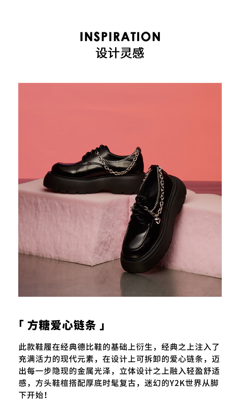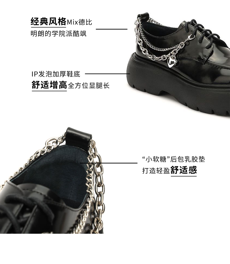 达芙妮【方糖系列】达芙妮乐福鞋女鞋新款链条款英伦风小皮鞋单鞋QJ1 爱心链条 39