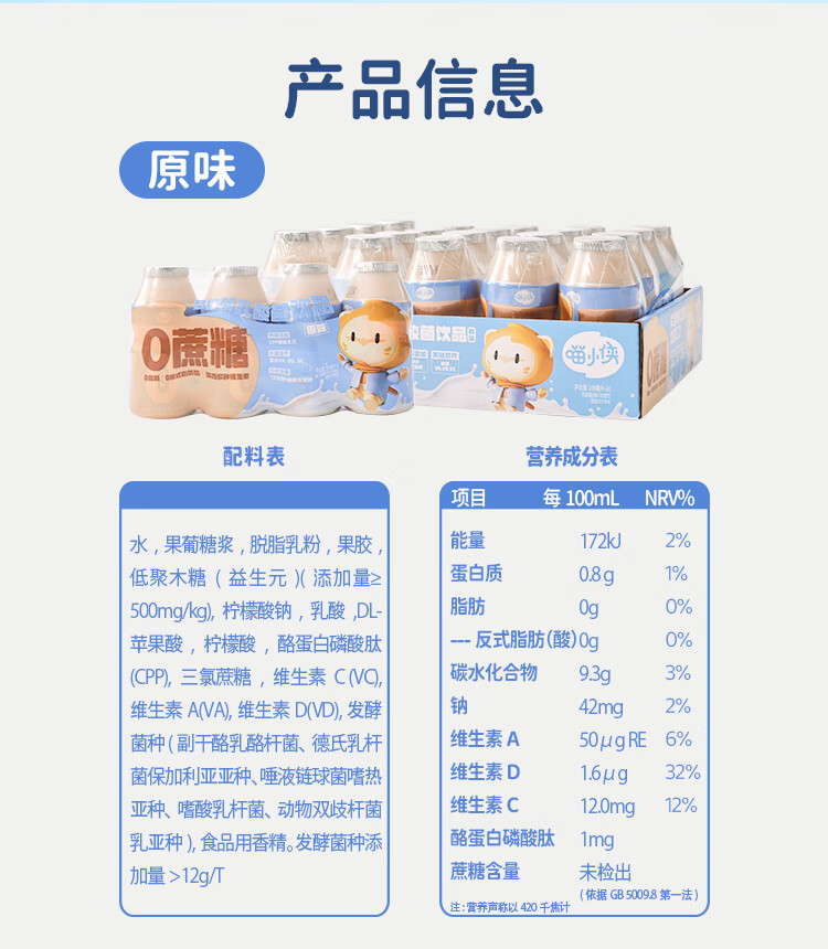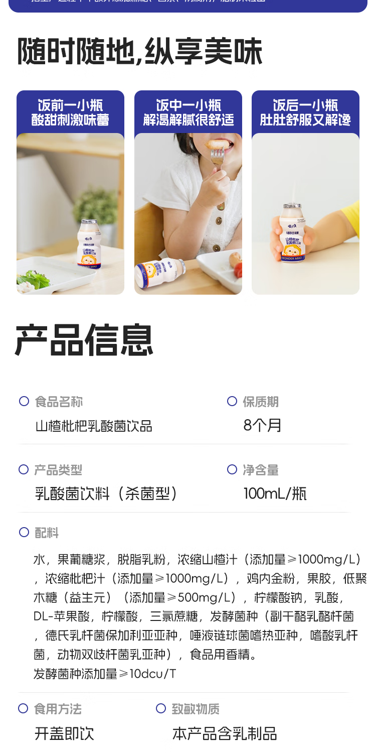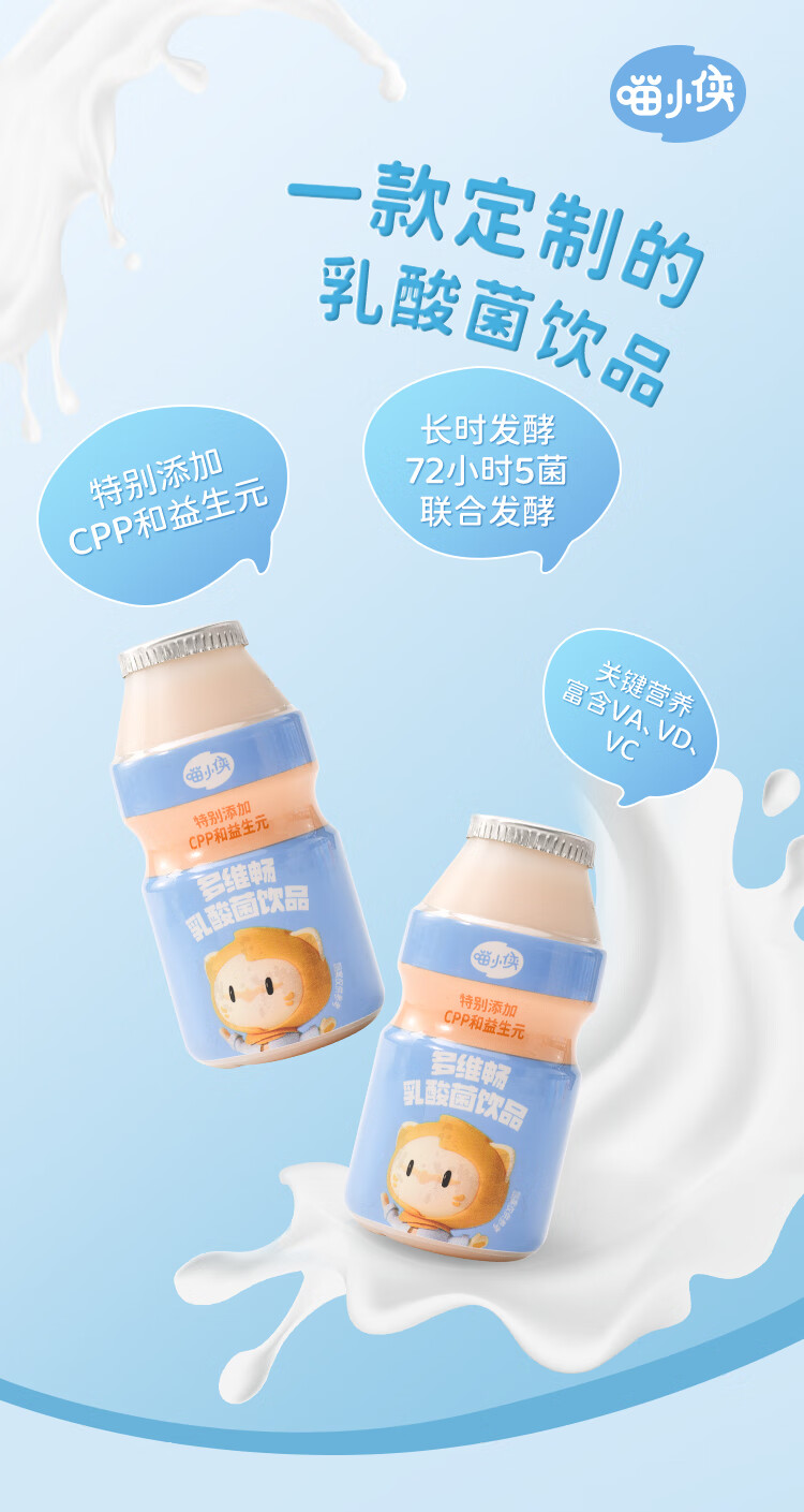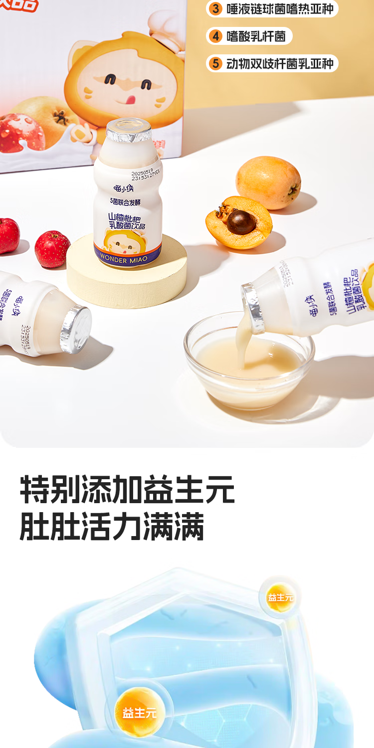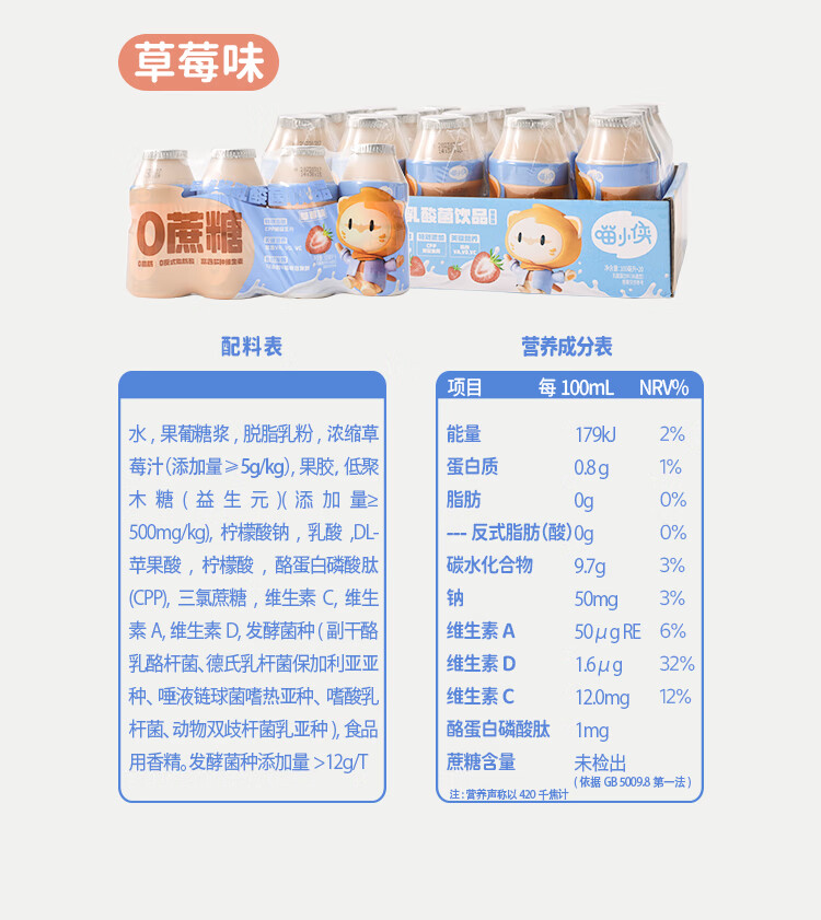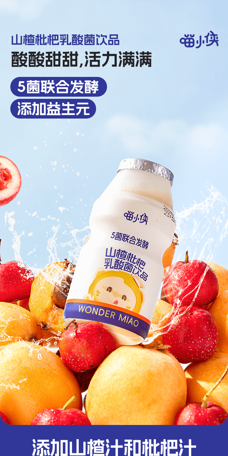 喵小侠乳酸菌饮品富锌益生元山楂汁乌梅清清饮果汁儿童饮品零食出游饮品 乳酸菌草莓味 100ml*20瓶