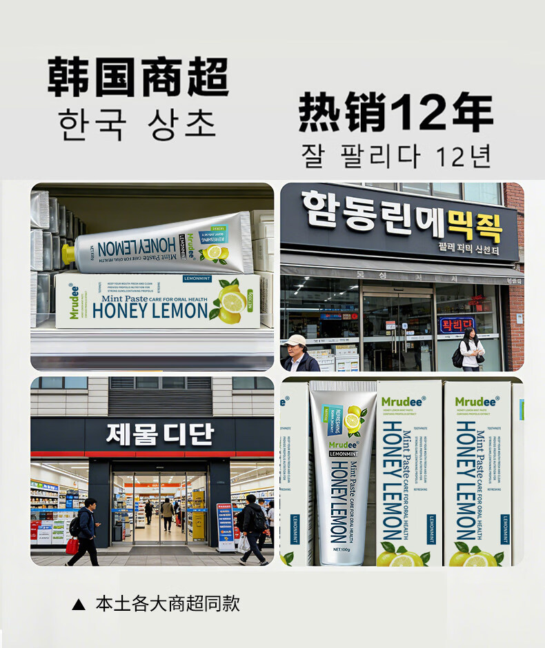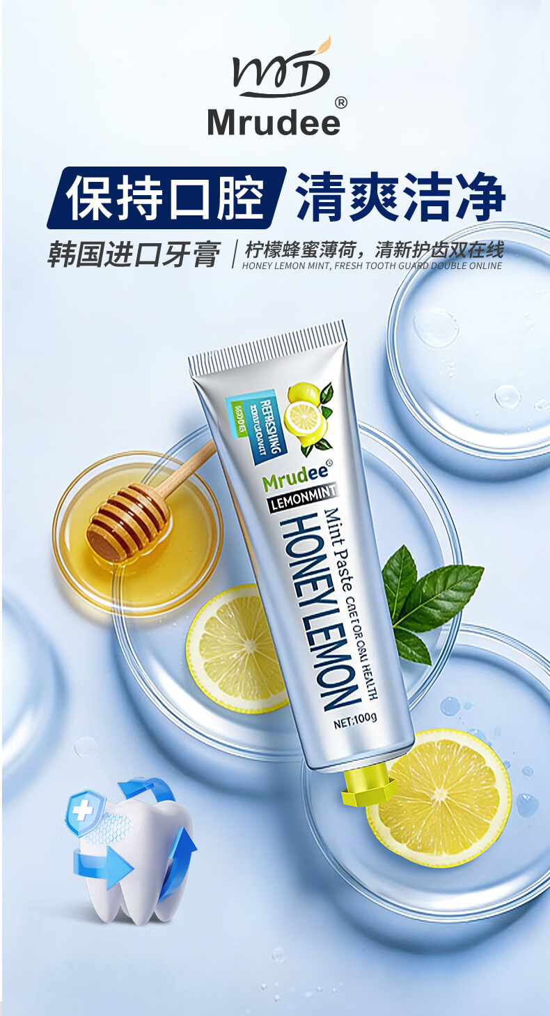 MRUDEE柠檬薄荷清新口气含氟美白牙膏韩国原装进口牙膏口臭去黄牙渍XF 【改善口臭去渍防蛀美白】3支装