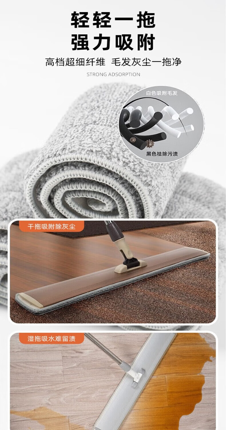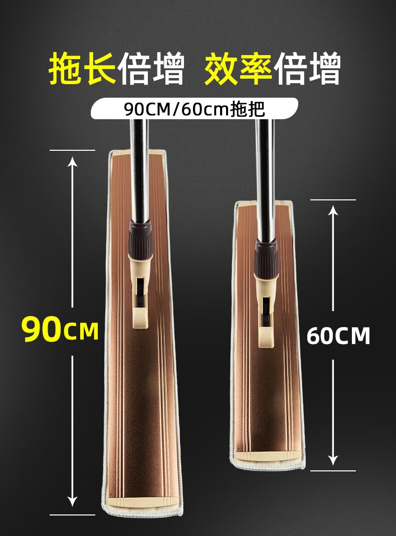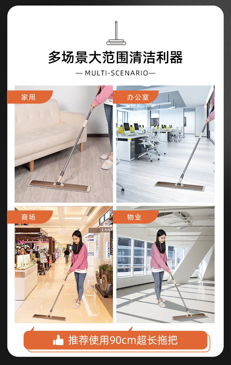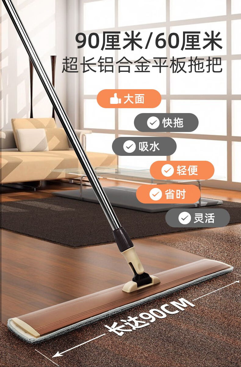 香夏平板拖把大号工厂铝合金懒人加长商场物业大户型一拖净替换布 90CM平拖+3块布
