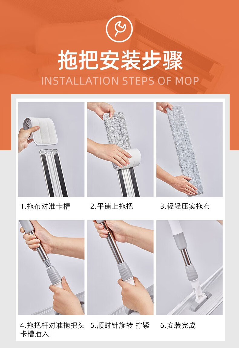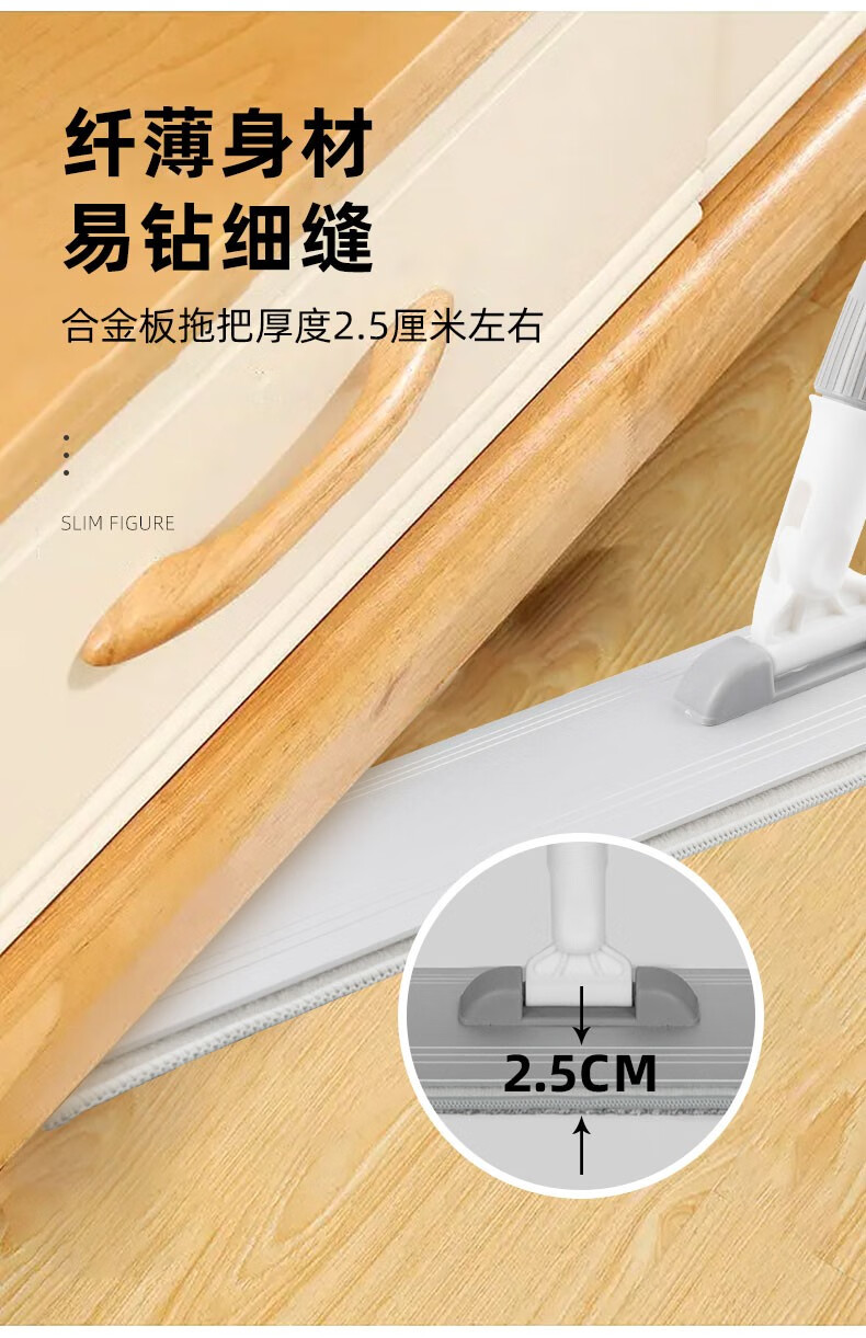 太太乐免手洗拖把平板家用一拖净2024大号拖布干湿两用拖地墩布铝合金板 太空铝板45cm+加粗刚杆+共1块布 45cm