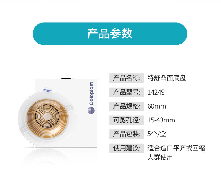 康乐保造口底盘特舒14249二件式凸面造口袋底盘 两件式造瘘袋底座60mm 14249凸面造口底盘(5个/盒)