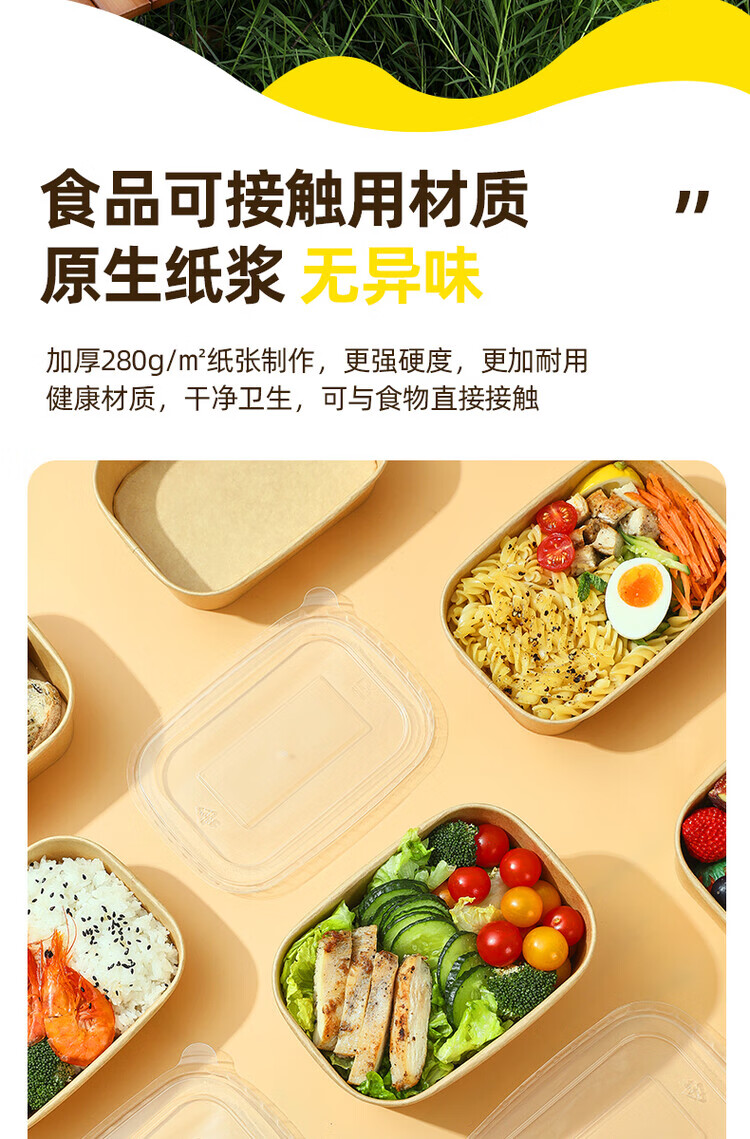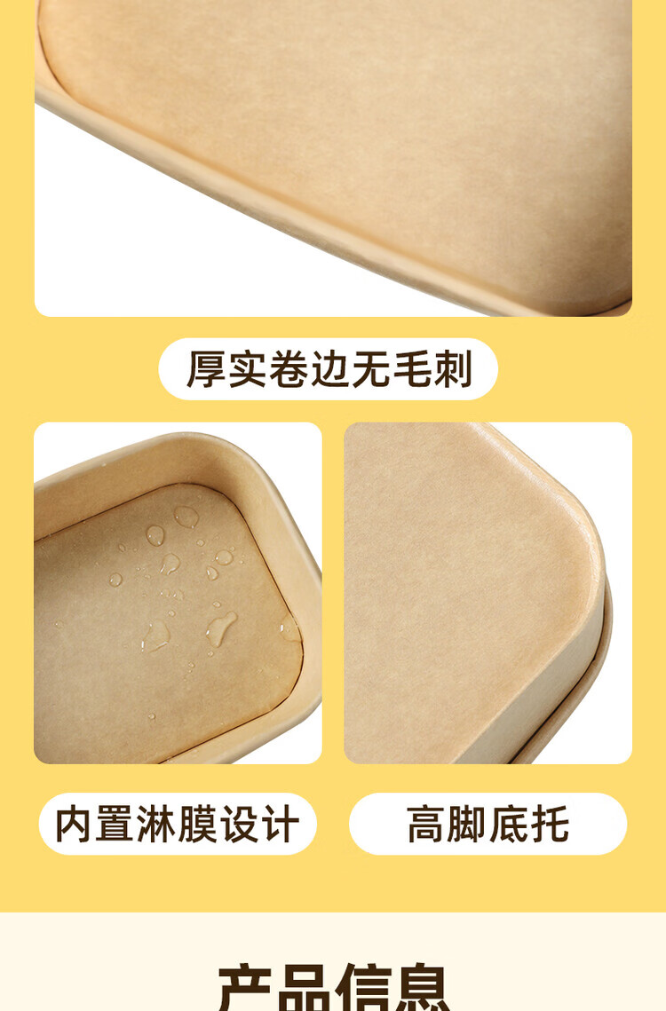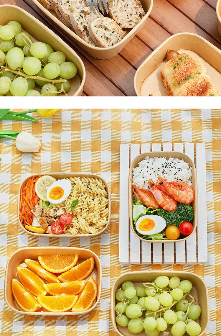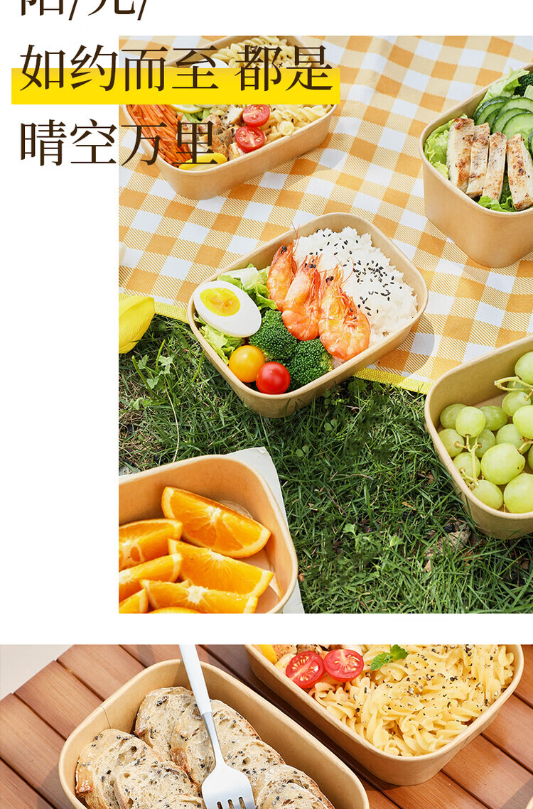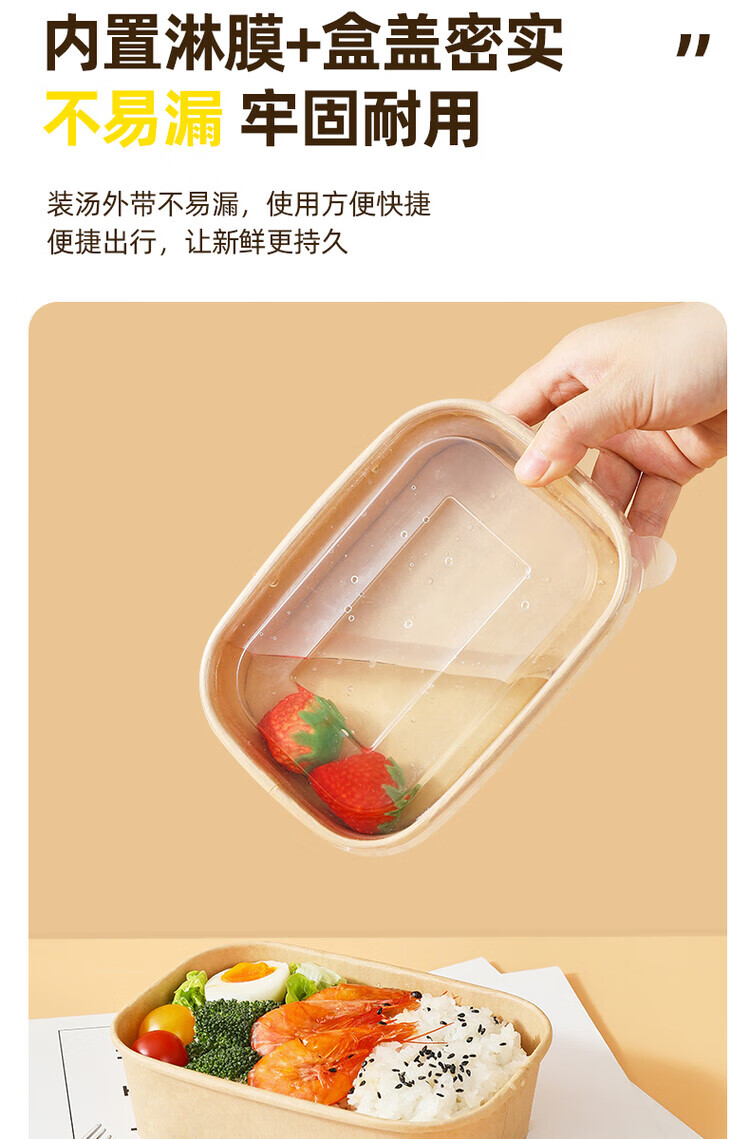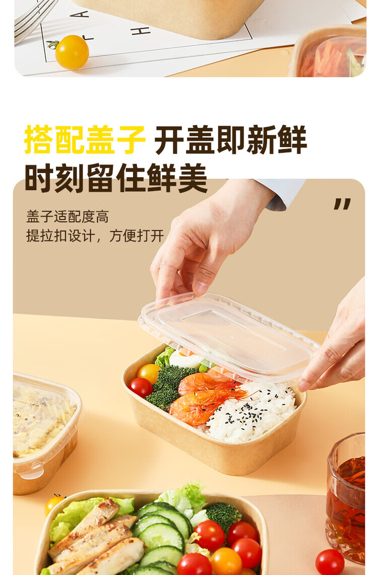一次性餐盒牛皮纸野餐盒饭盒水果食品包装纸盒上班族打包盒泡面碗 加厚牛皮纸【500ML】碗+盖:30套