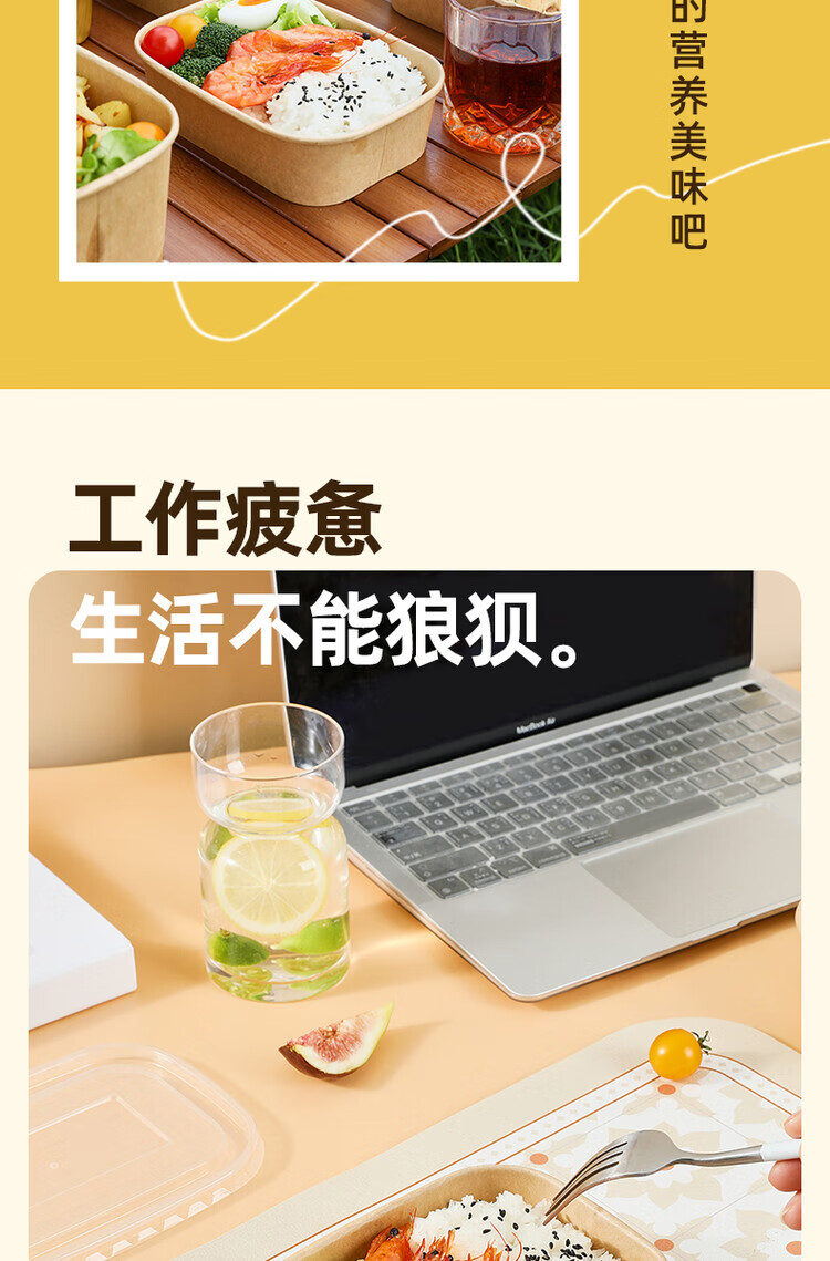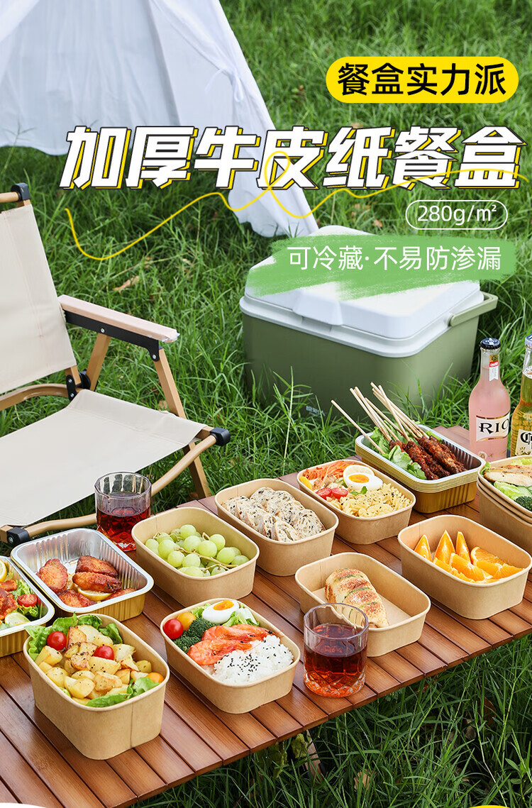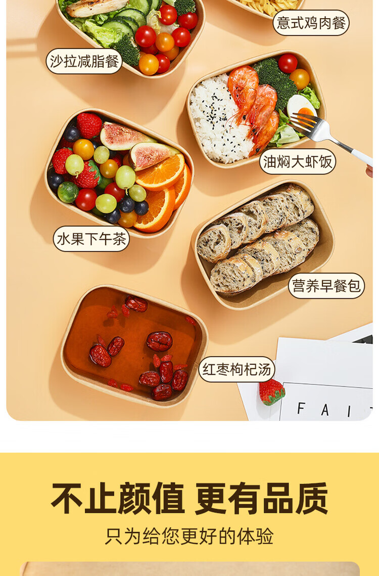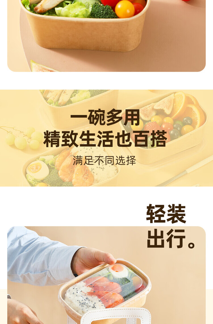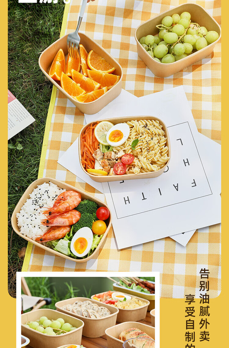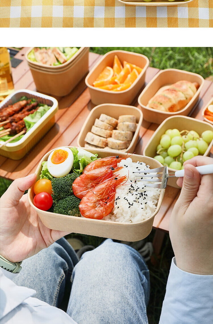 一次性餐盒牛皮纸野餐盒饭盒水果食品包装纸盒上班族打包盒泡面碗 加厚牛皮纸【500ML】碗+盖:30套