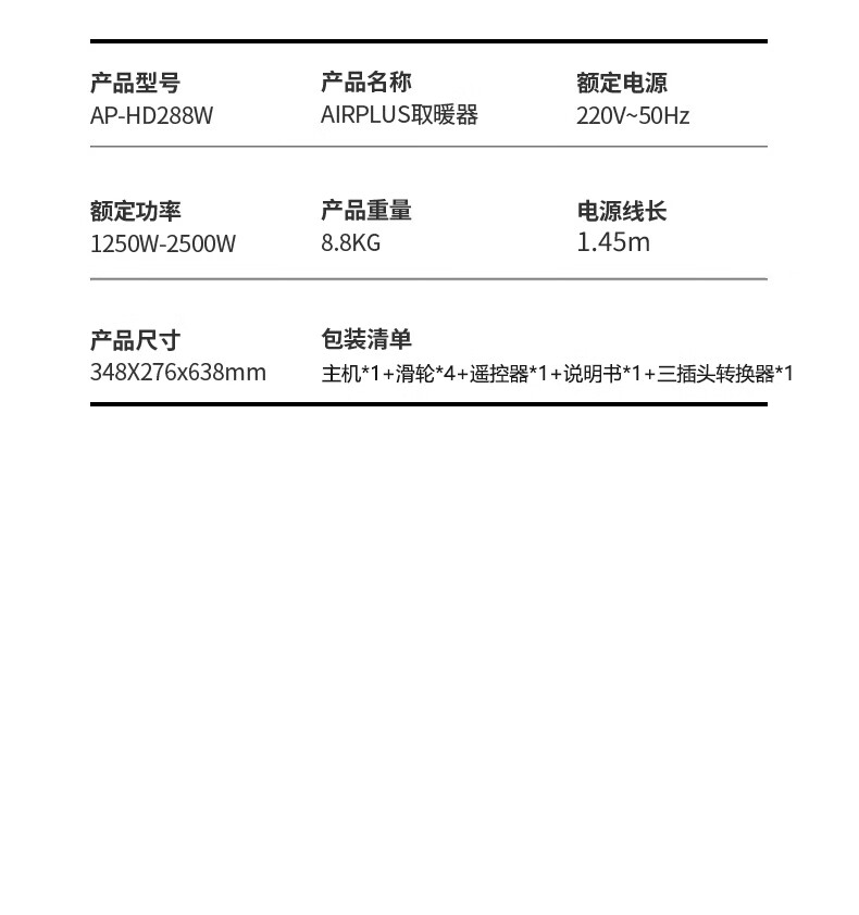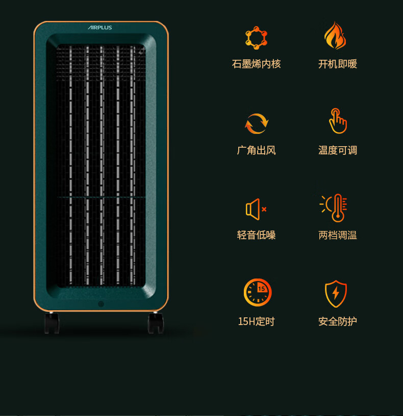 艾普莱斯 (艾普莱斯)取暖器/石墨烯取暖器/暖风机家用电暖气办公室立式浴室定时暖风机节能省电 AP-HD288W 白