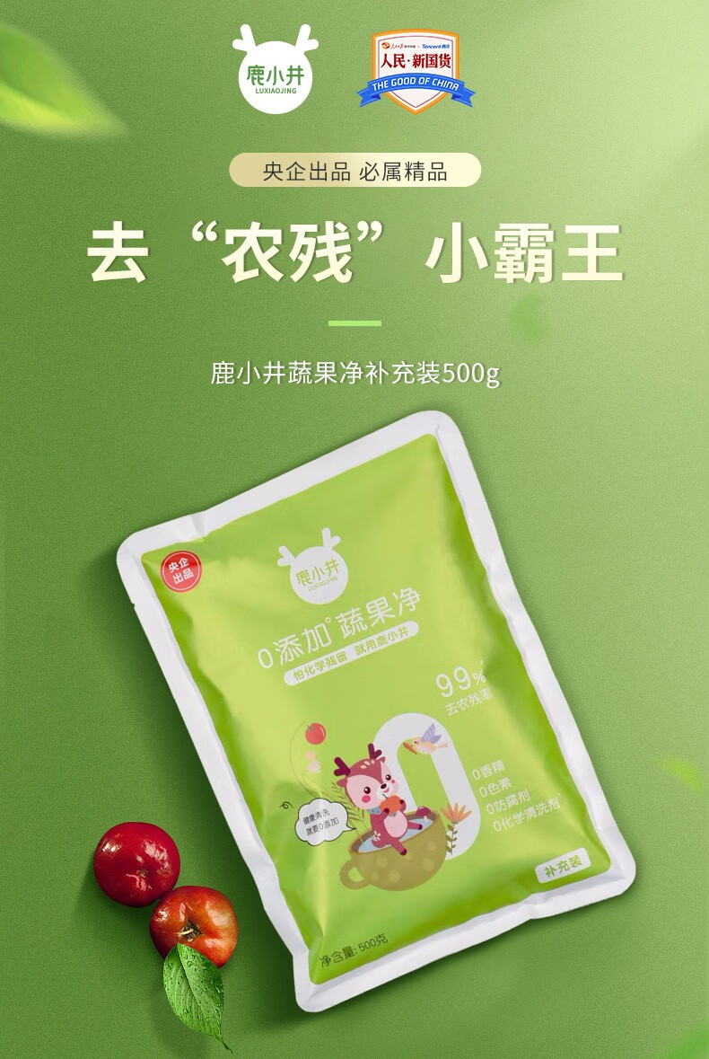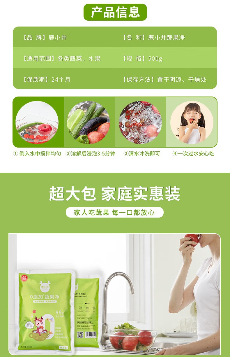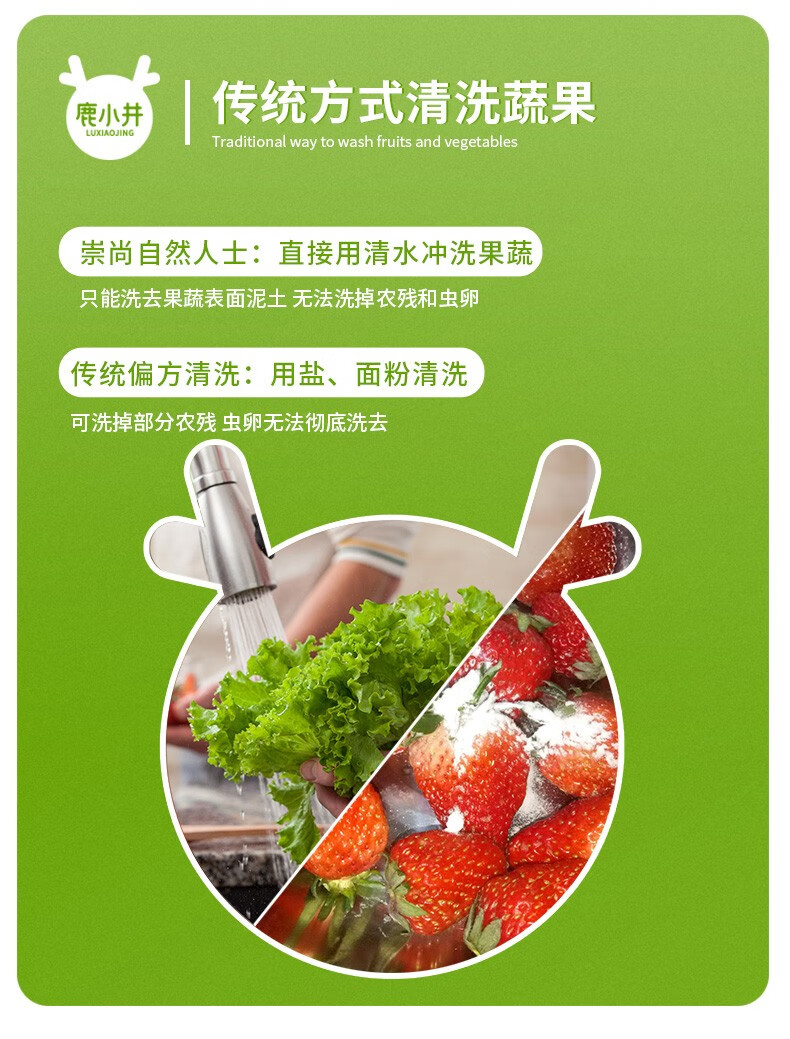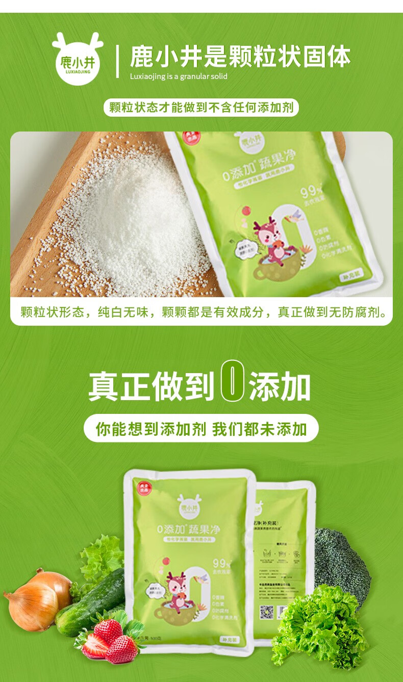 鹿小井宝宝果蔬清洗剂去农残专用清洁剂洗涤盐孕妇婴儿超值补充装 蔬果净补充装500g