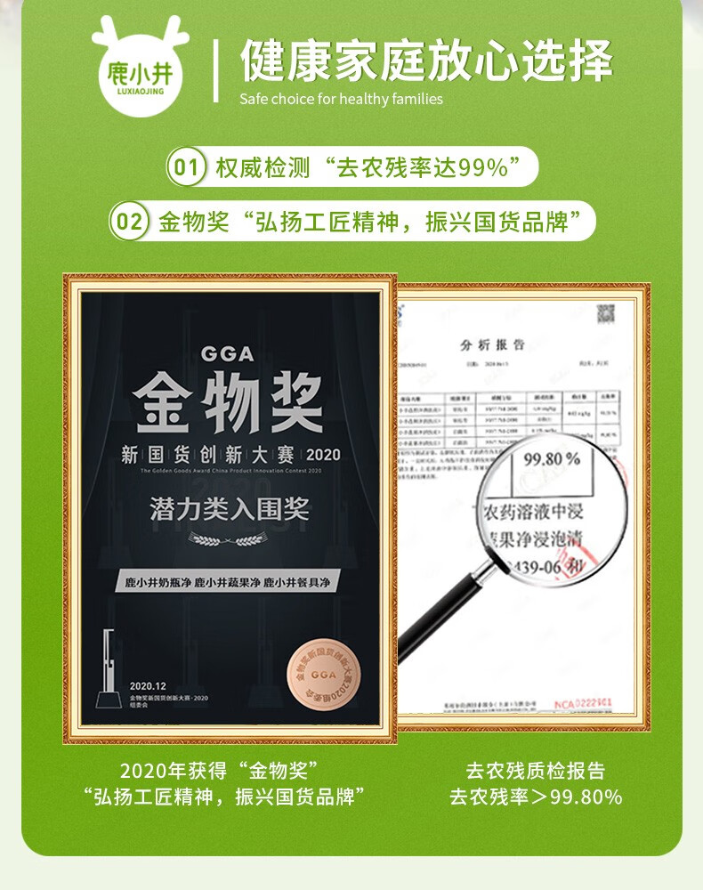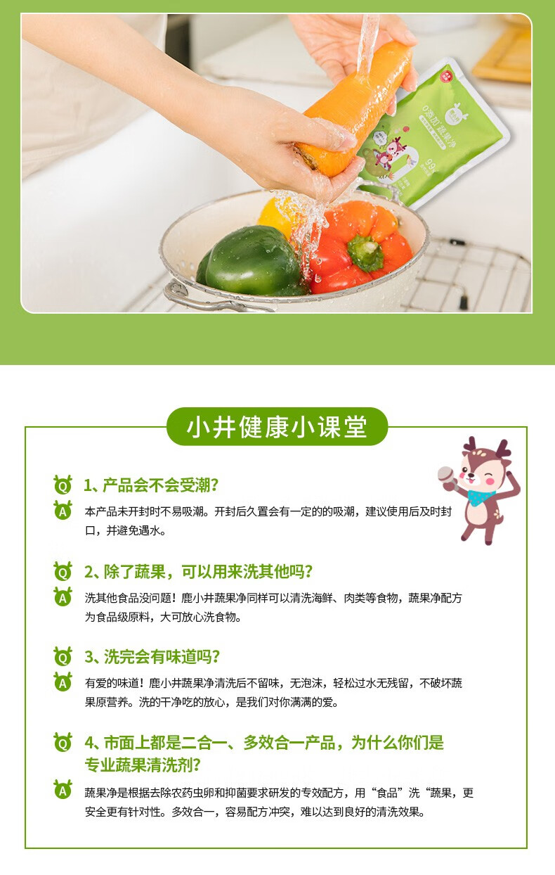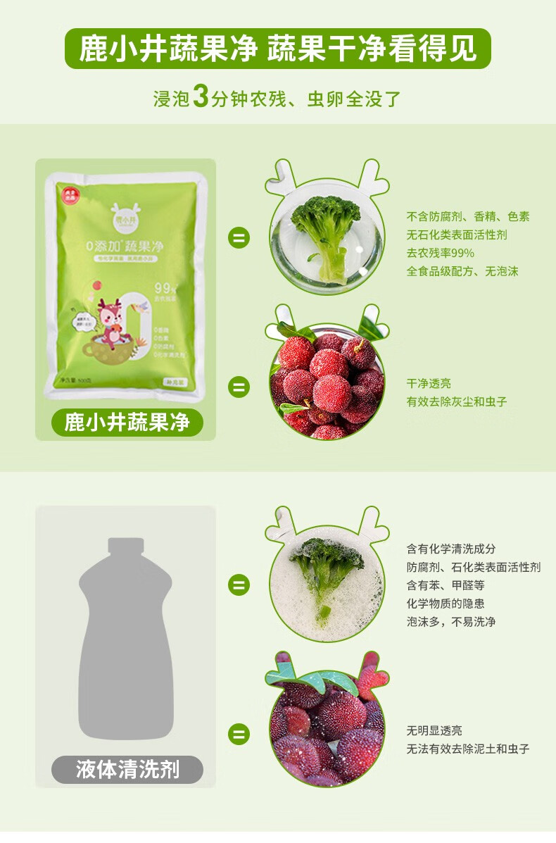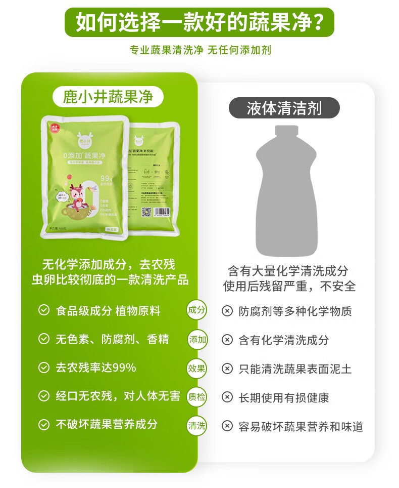 鹿小井宝宝果蔬清洗剂去农残专用清洁剂洗涤盐孕妇婴儿超值补充装 蔬果净补充装500g