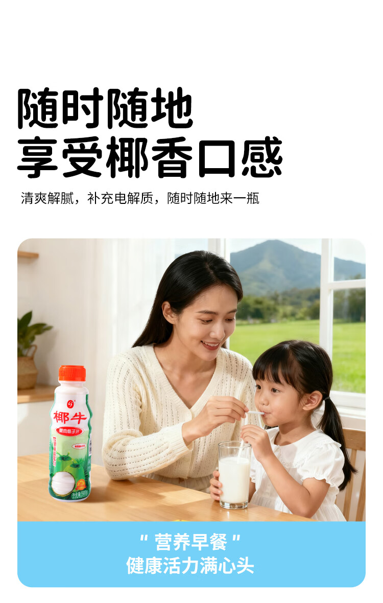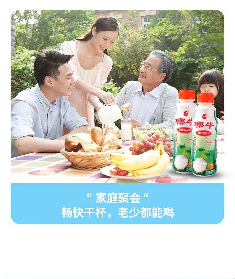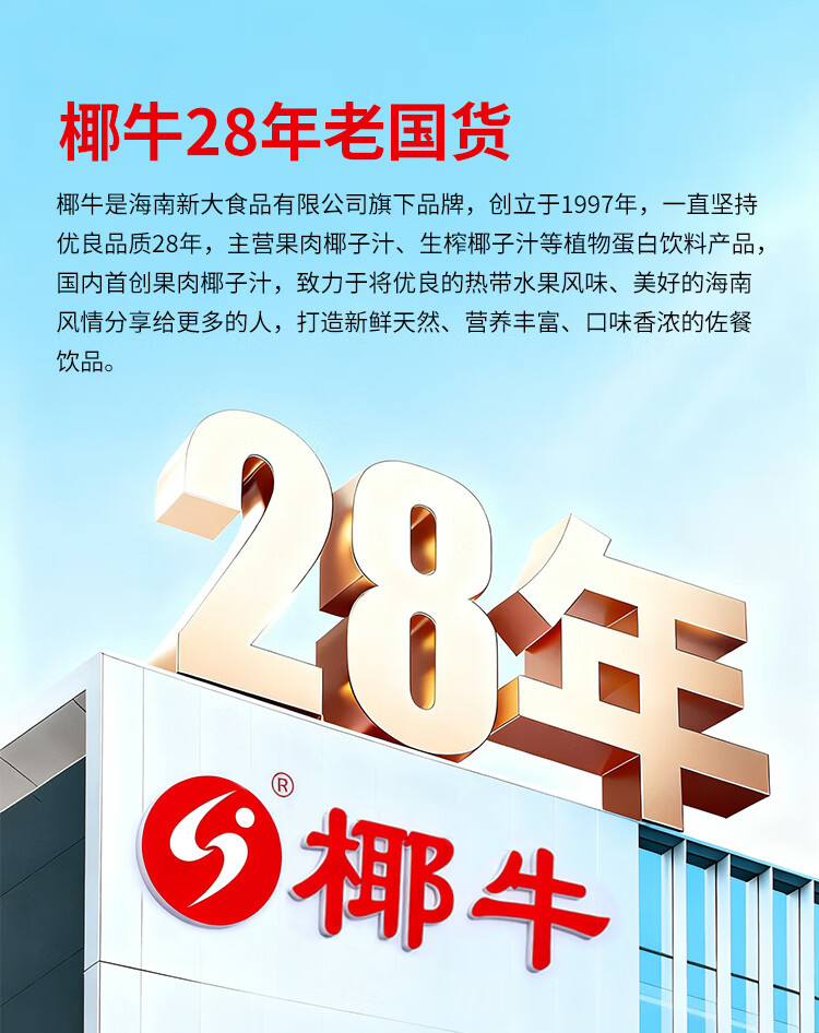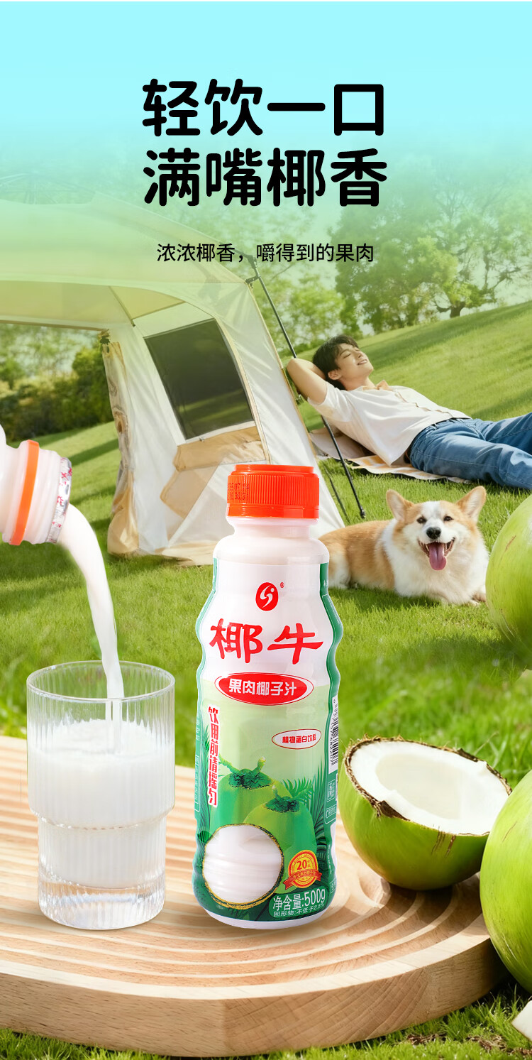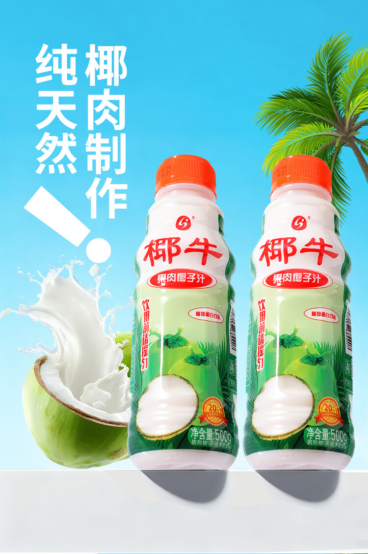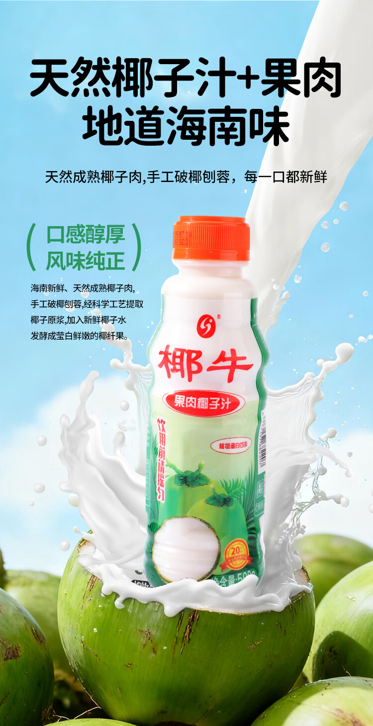 椰牛(yeniu)果肉椰子汁海南特产植物蛋白饮料经典大瓶整箱家用椰汁早餐减脂 500g*10瓶