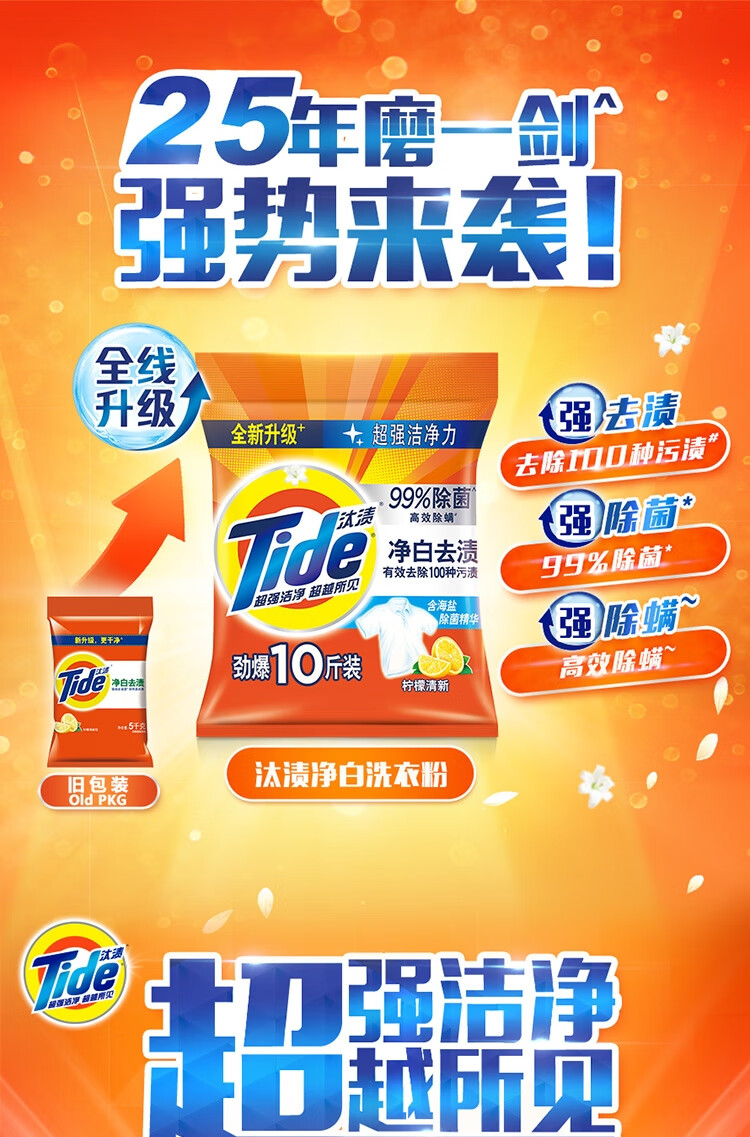 汰渍净白去渍洗衣粉柠檬清新10斤装 强效去渍 大袋批发非皂粉家庭装