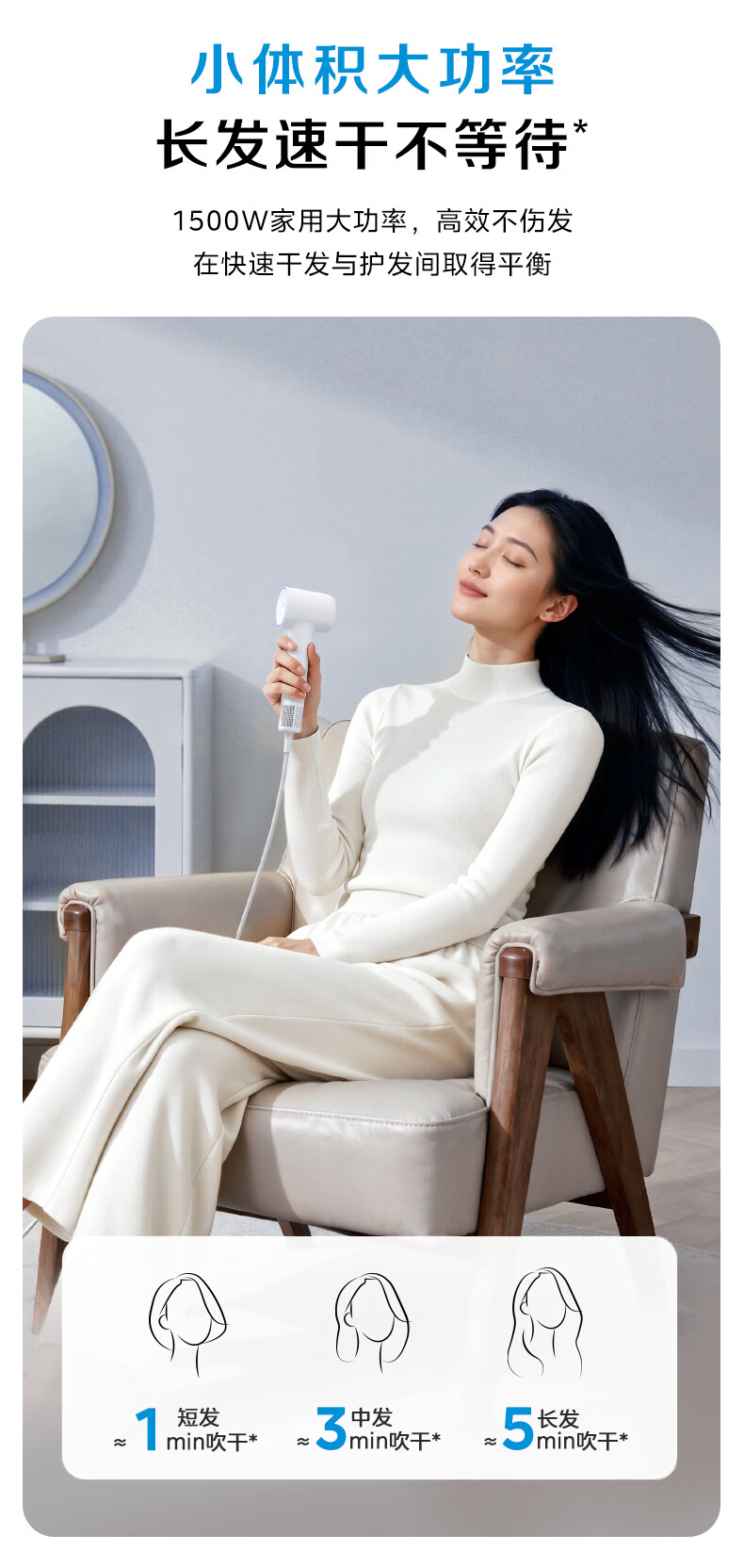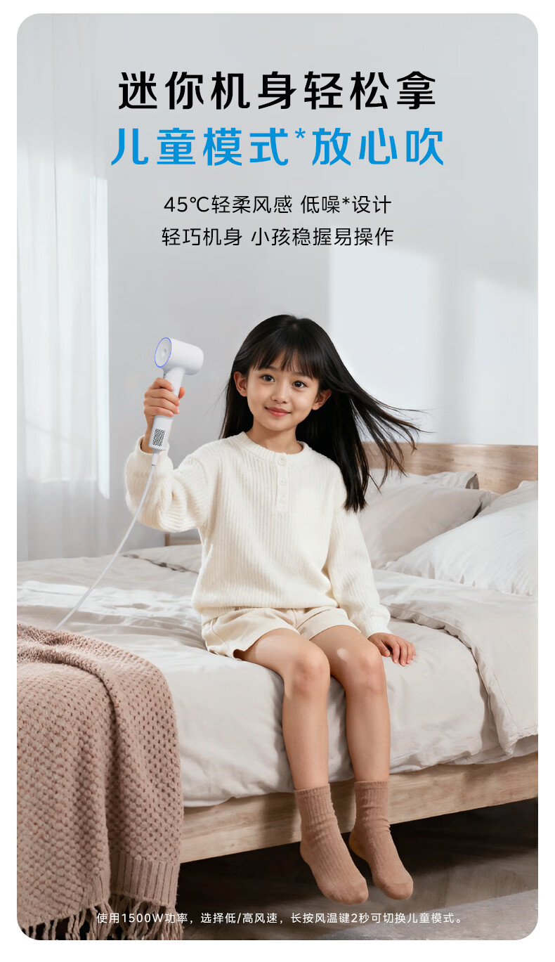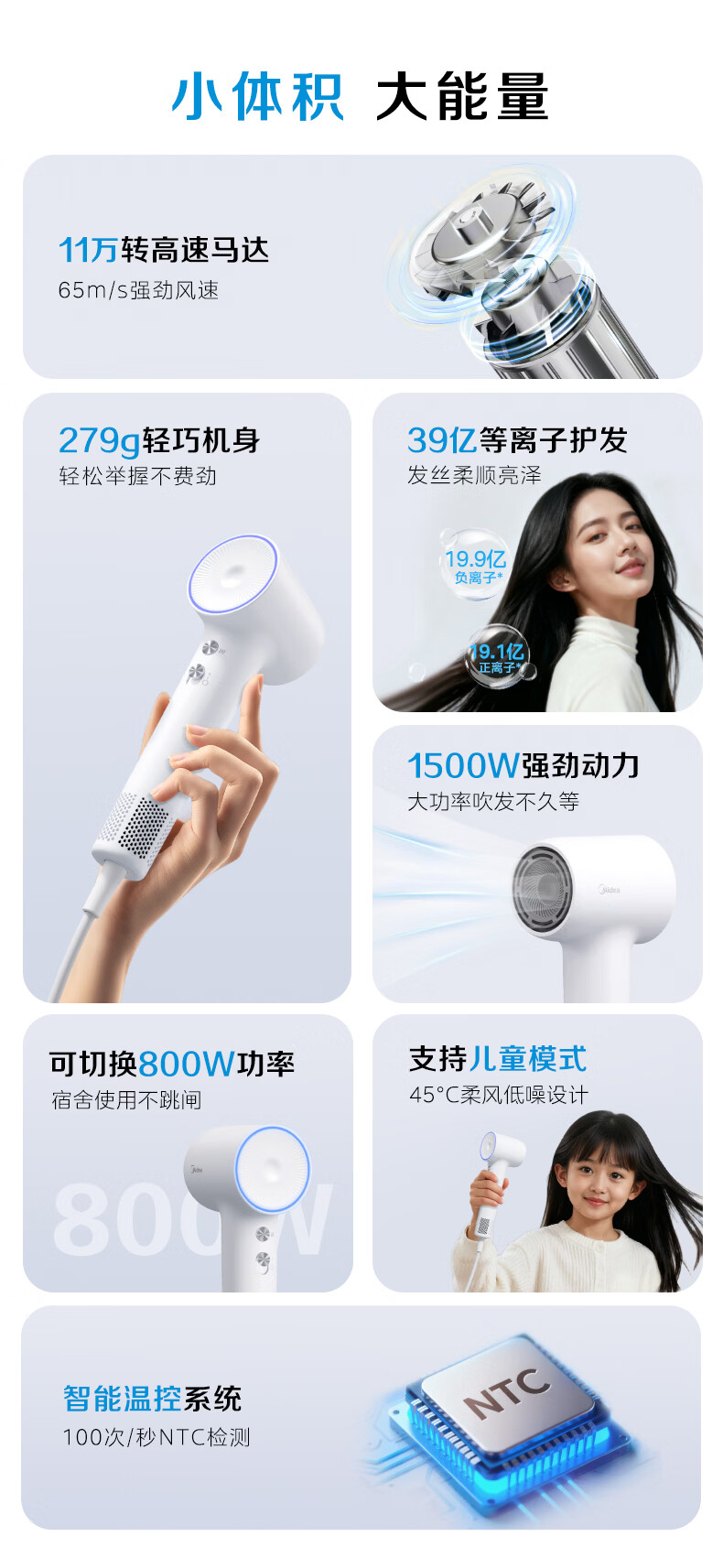 美的(Midea)高速吹风机 39亿等离子护发 家用负离子电吹风 速干便携吹风筒FG208Mini 800W宿舍可用 生日礼物