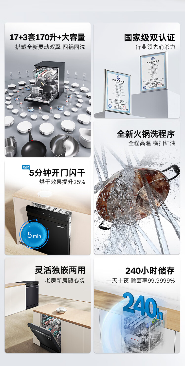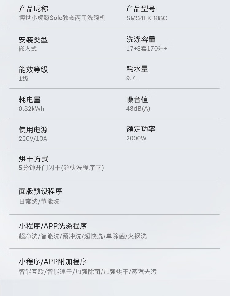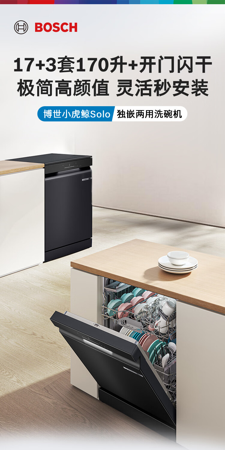 博世(BOSCH)小虎鲸Solo17+3套170升+家用容量洗碗机独立嵌入式5分钟开门闪干【火锅洗】240h除菌存SMS4EKB88C