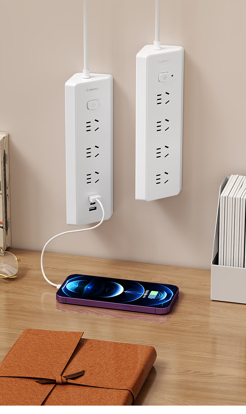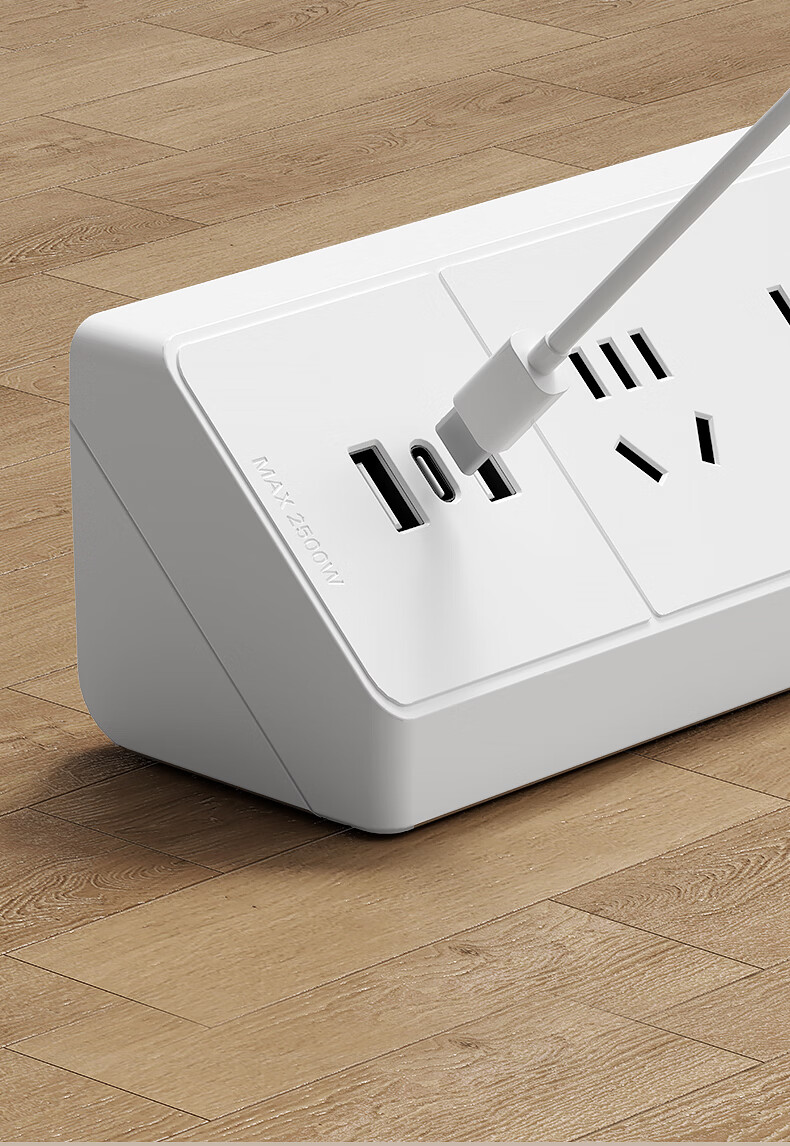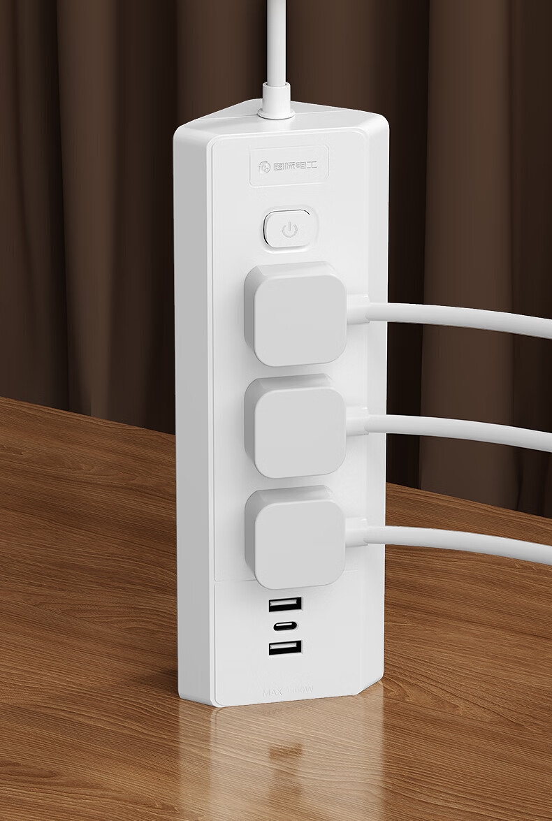 国际电工新国标带线排插办公桌面接线板电源排插斜面多孔位插排带20W快充 三位15孔+12WUSB/C一键总控【线长0.3米】