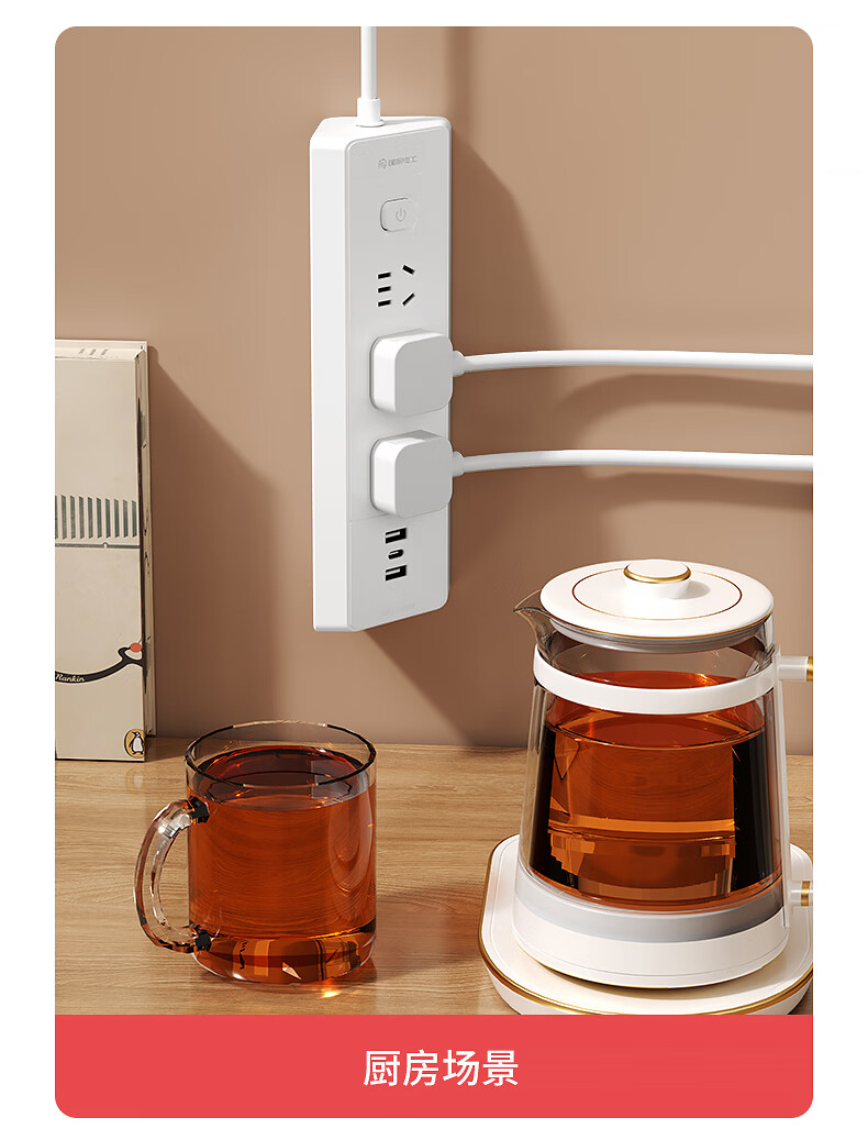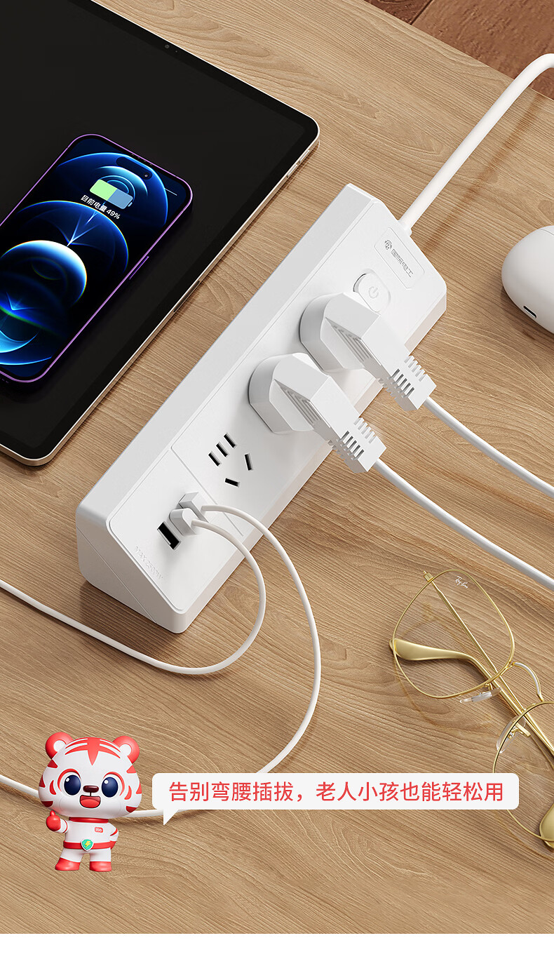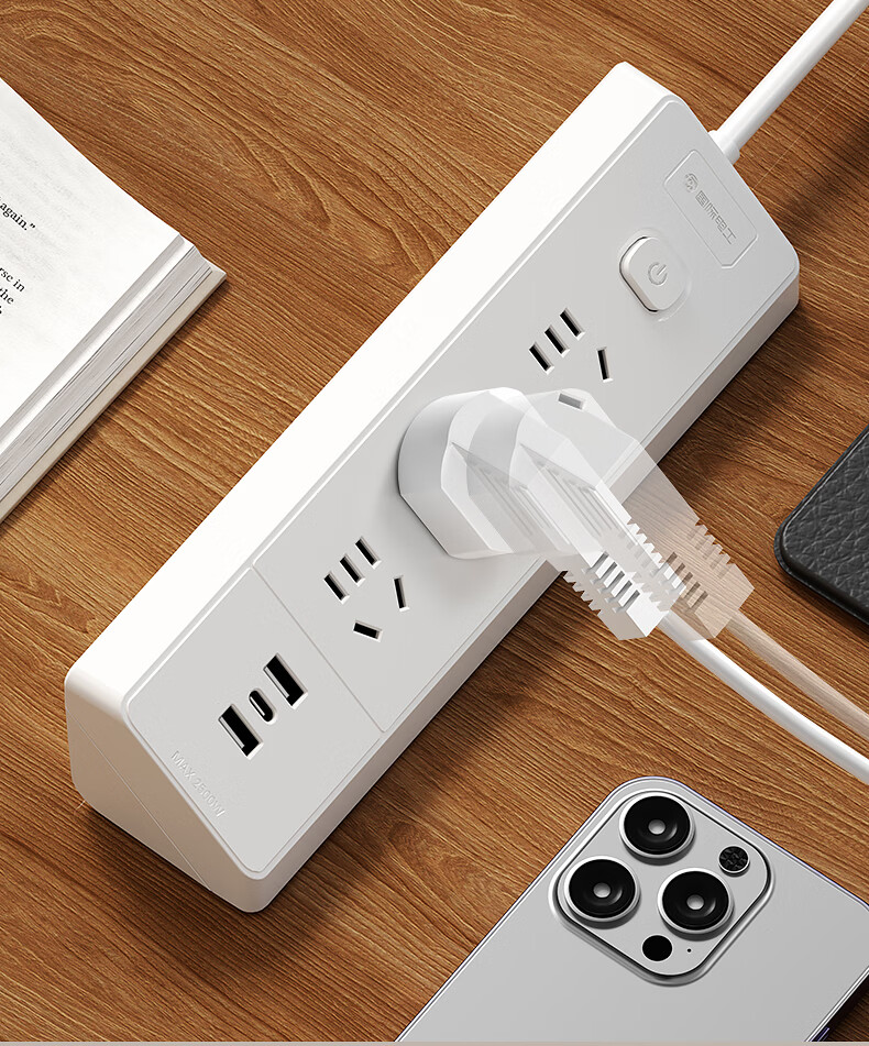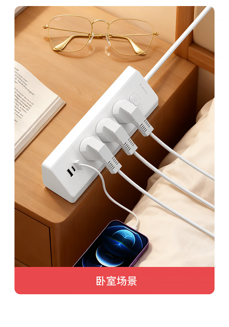 国际电工新国标带线排插办公桌面接线板电源排插斜面多孔位插排带20W快充 三位15孔+12WUSB/C一键总控【线长0.3米】