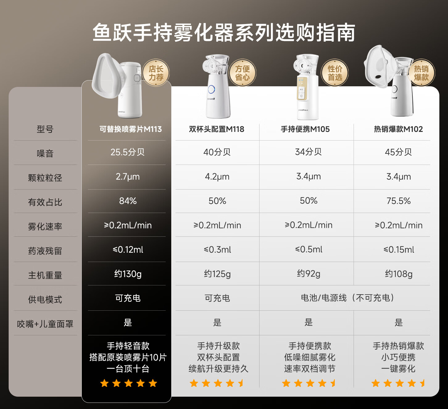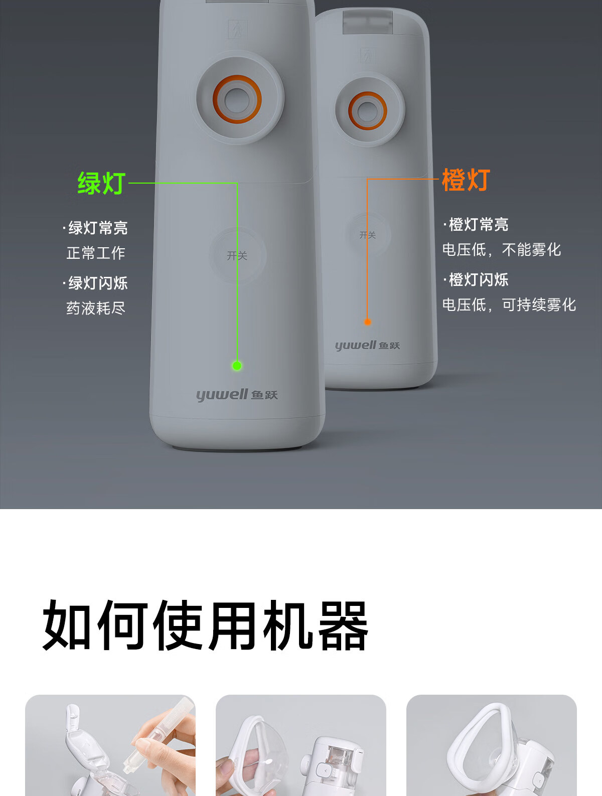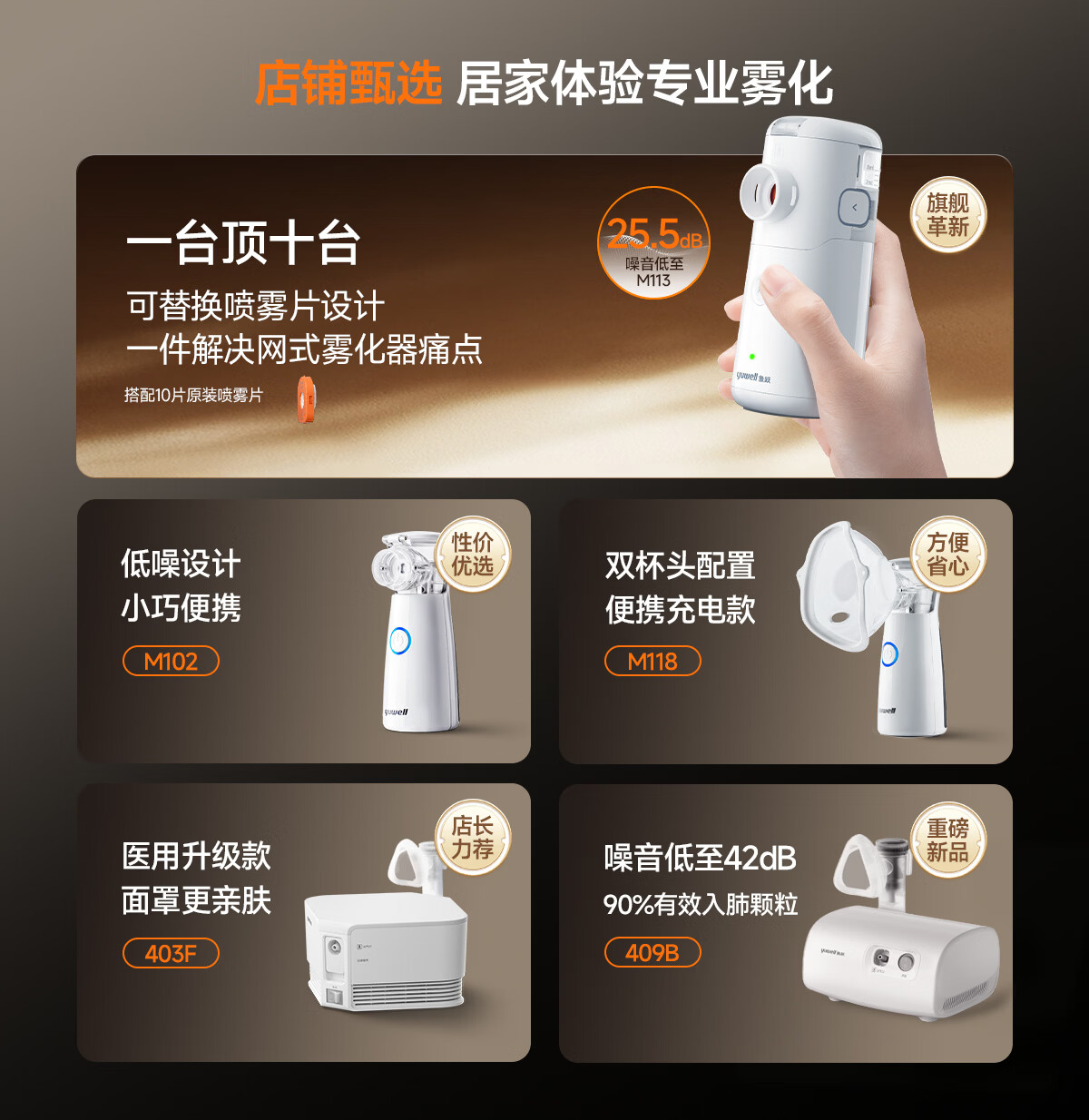 鱼跃(Yuwell)雾化机医用雾化器儿童家用老人可更换式轻音手持M113含喷雾片年货