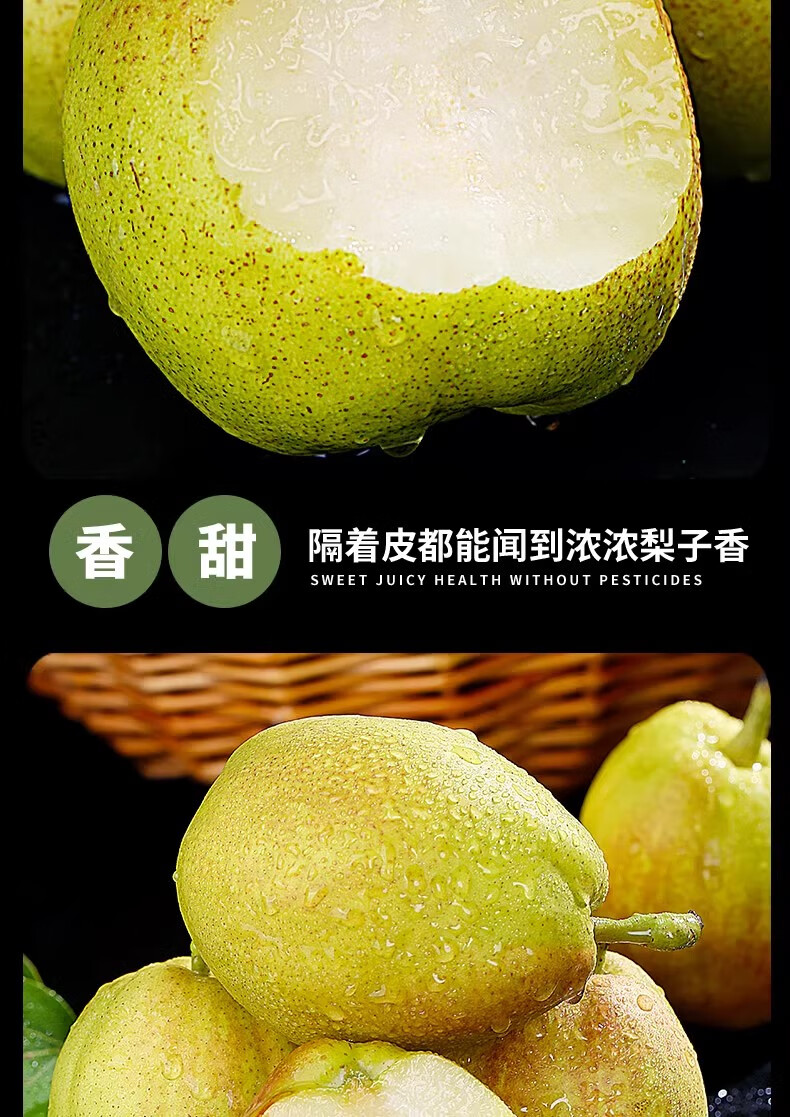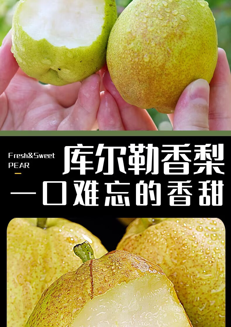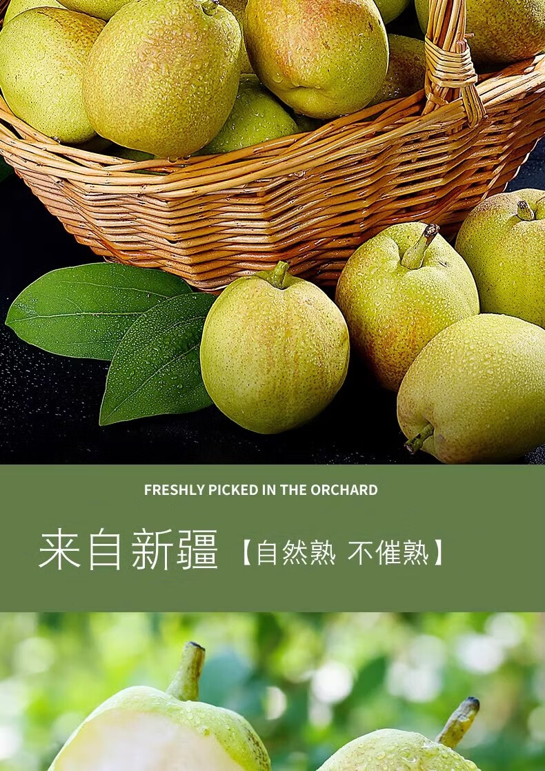 绿熊庄园正宗新疆库尔勒香梨酥脆甜梨子新鲜水果应季时令果蔬节日送礼整箱 特级果5斤单果120g+彩箱装
