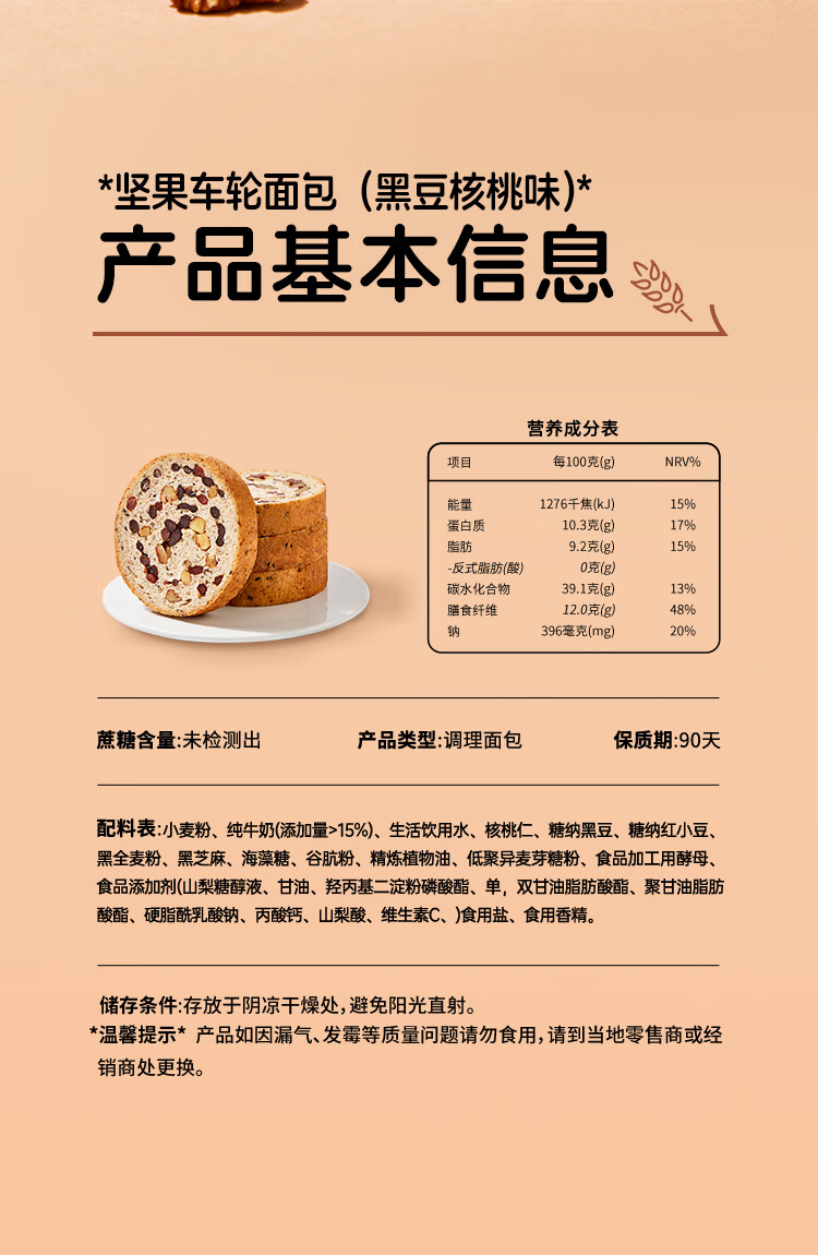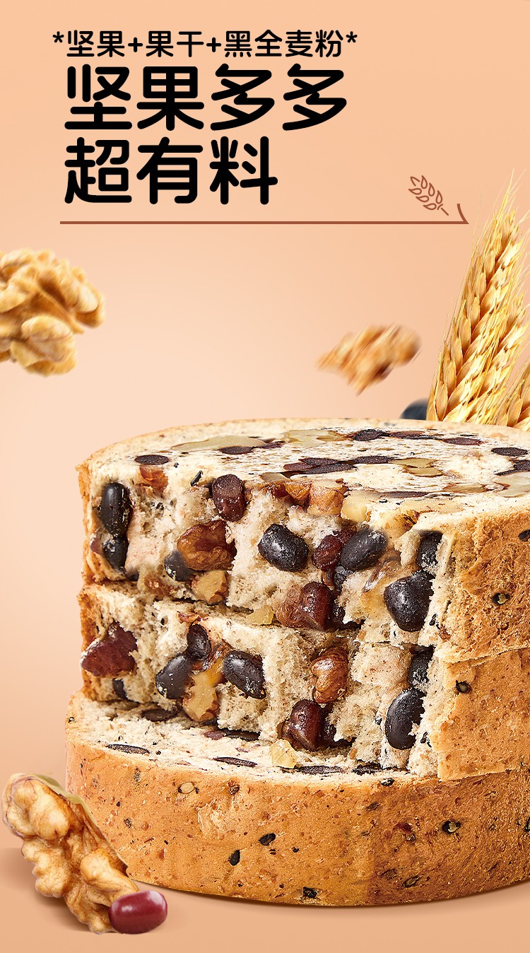 麦麦的日记全麦黑麦坚果车轮面包380g大列巴吐司早餐欧包代餐0蔗糖