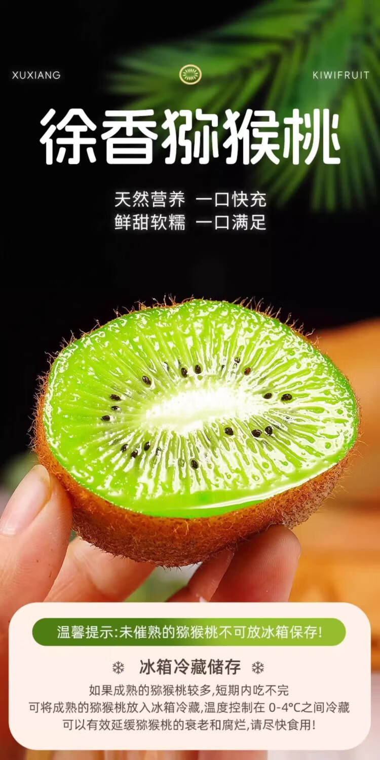 徐香猕猴桃新鲜绿心奇异果猕猴桃水果源头直发京东快递 12枚装60-70克