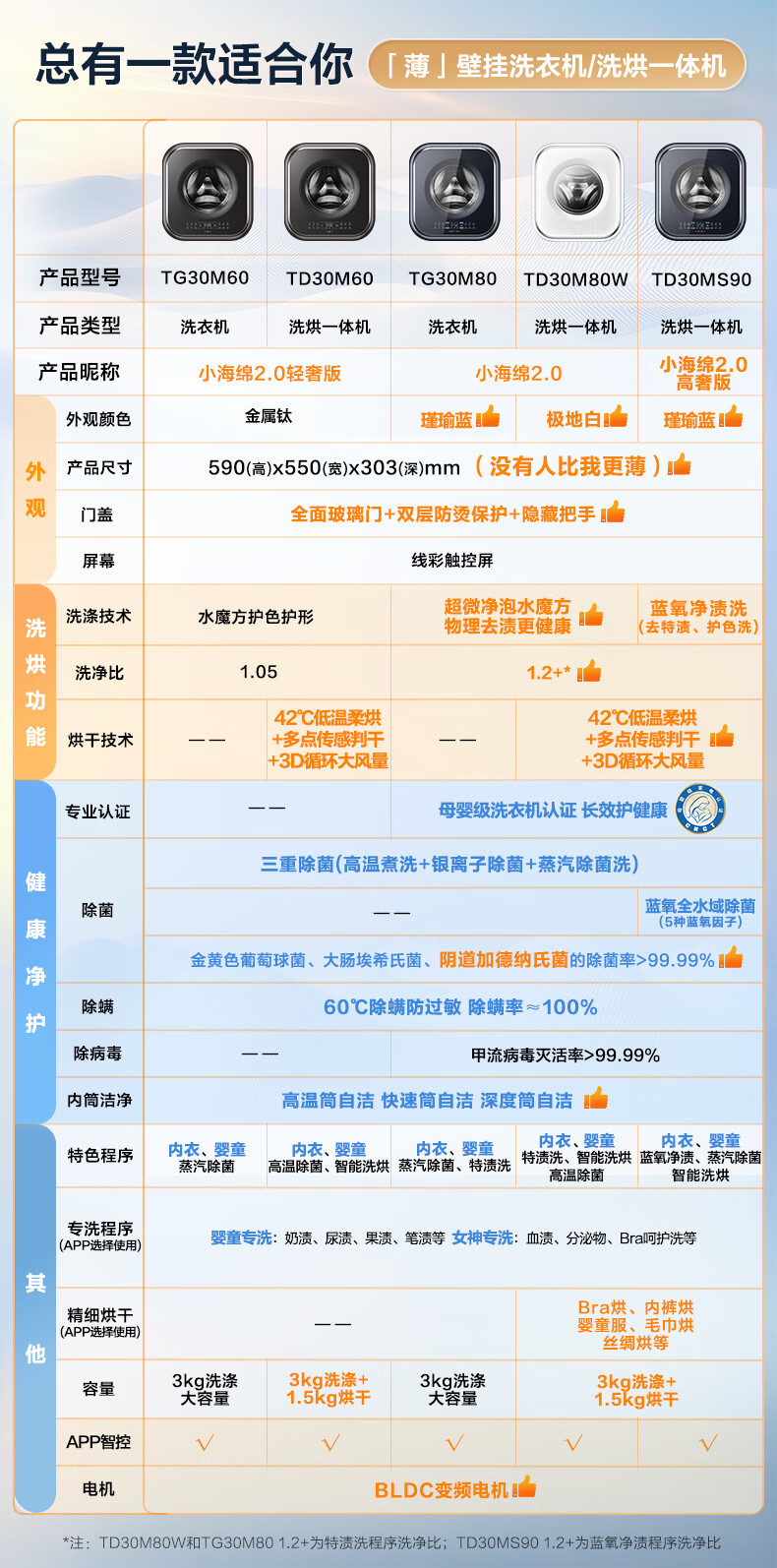 小天鹅(LittleSwan)3kg变频水魔方壁挂洗衣机 深净顽渍 细致洗护 高温蒸汽除菌 六维防松动 家电以旧换新 一级能效 TG30M60【小海绵2.0轻奢版】