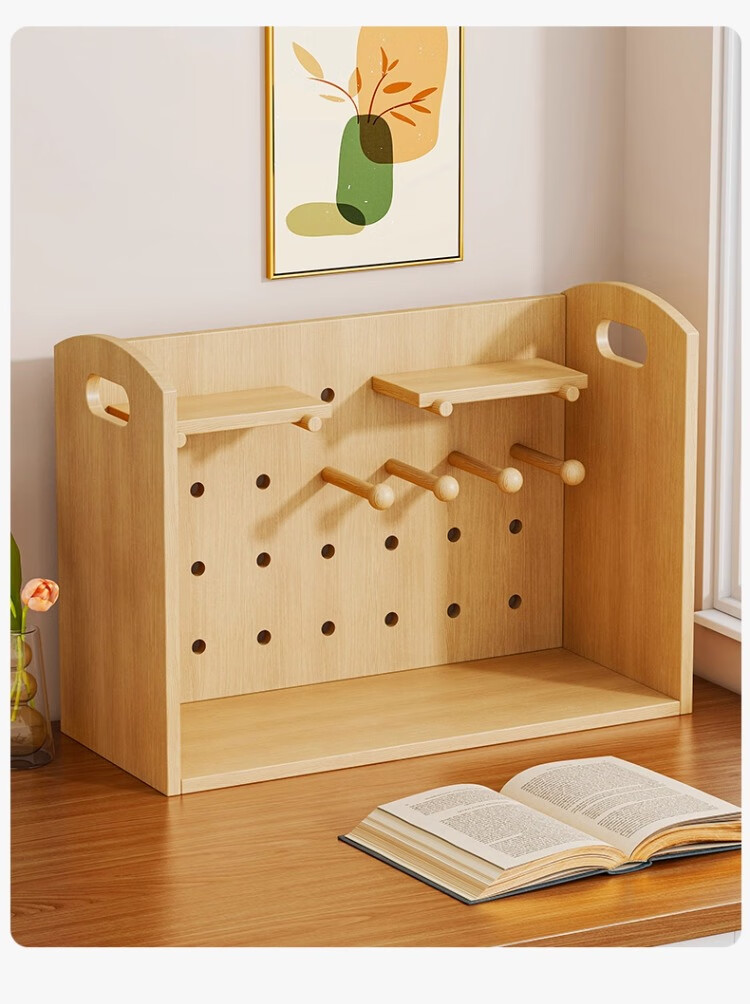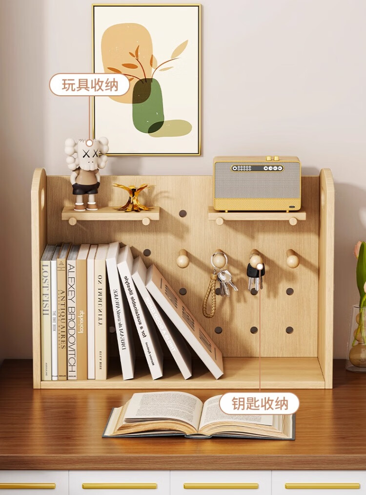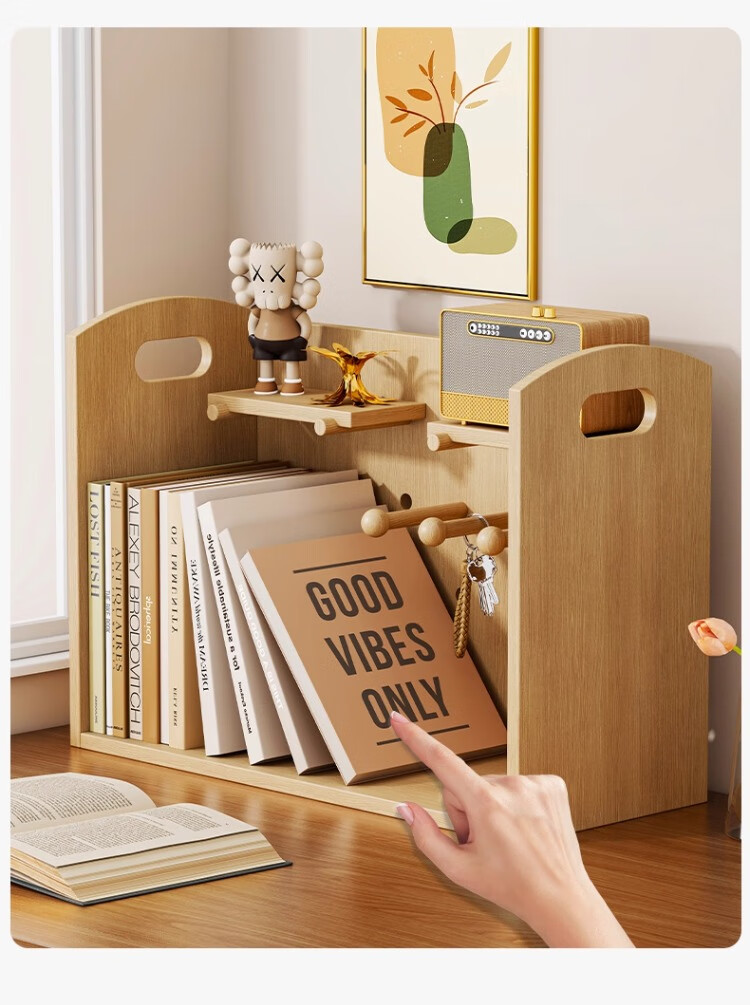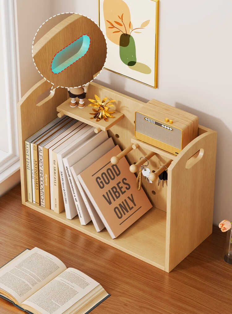 尔思家桌面书架儿童学生家用简易书桌置物架小型收纳箱办公桌简易储物柜 原木色-大号