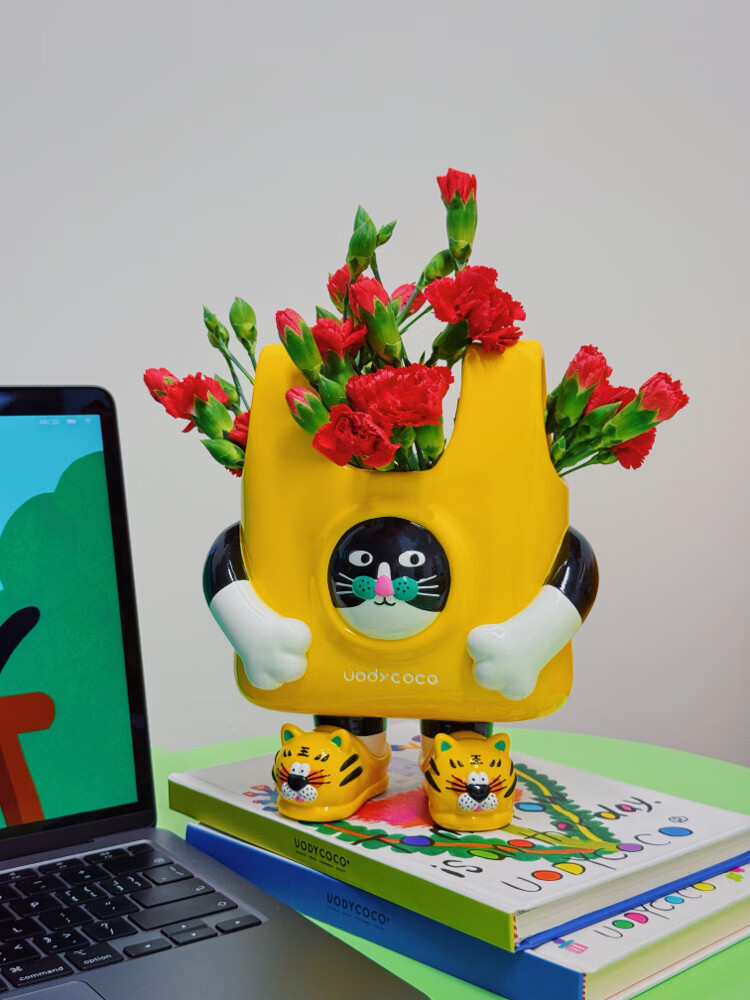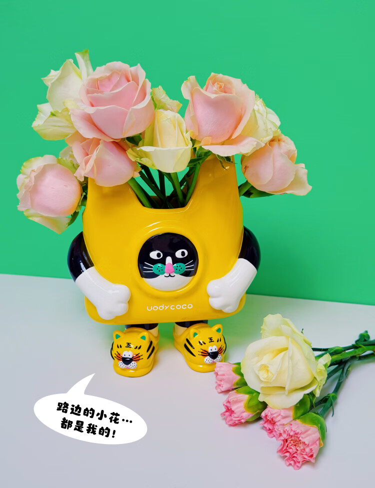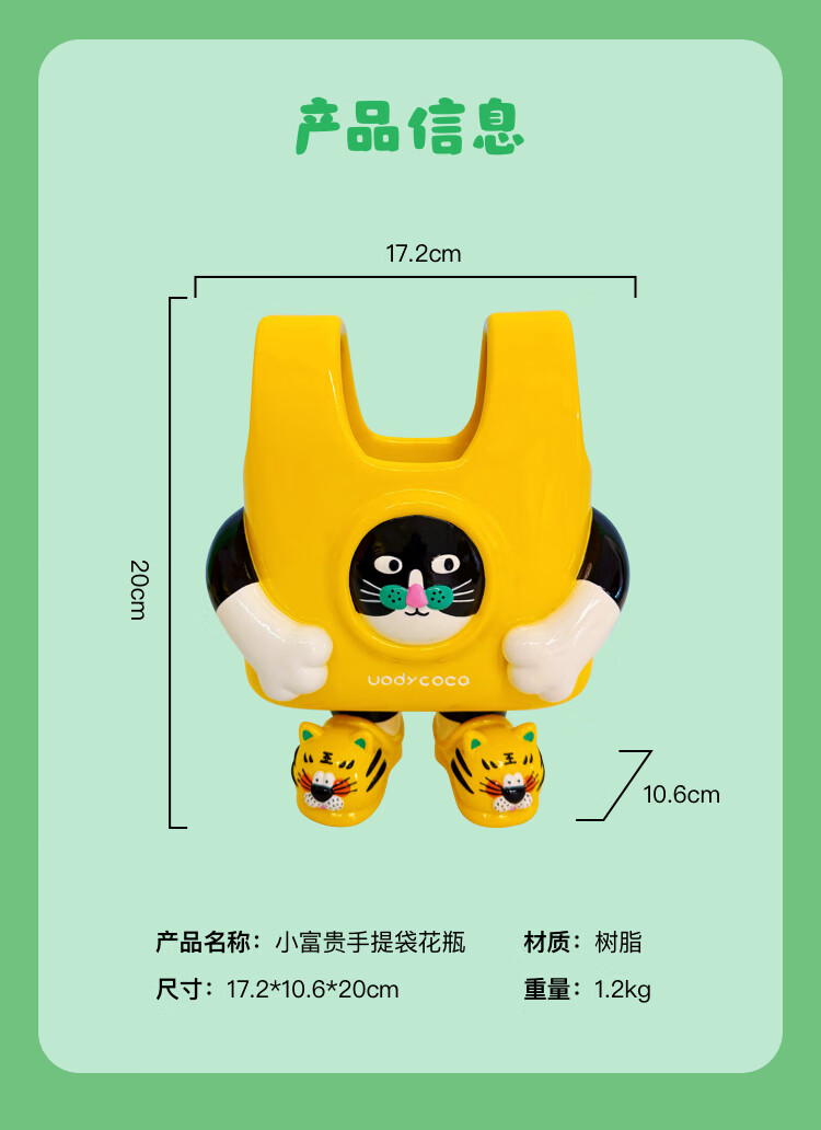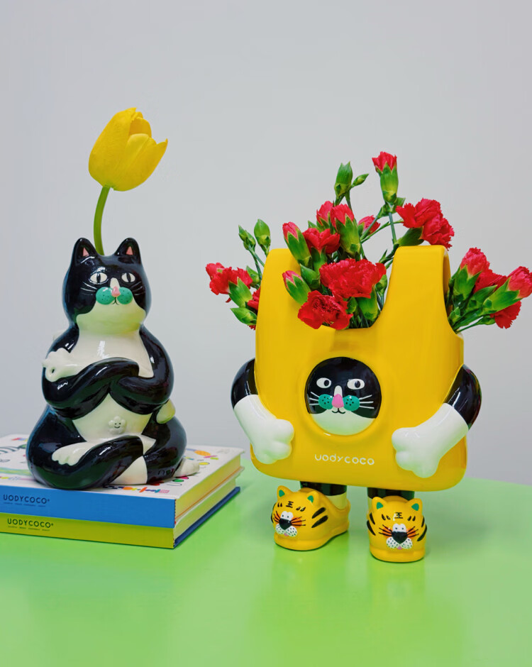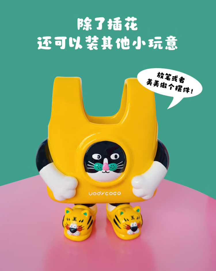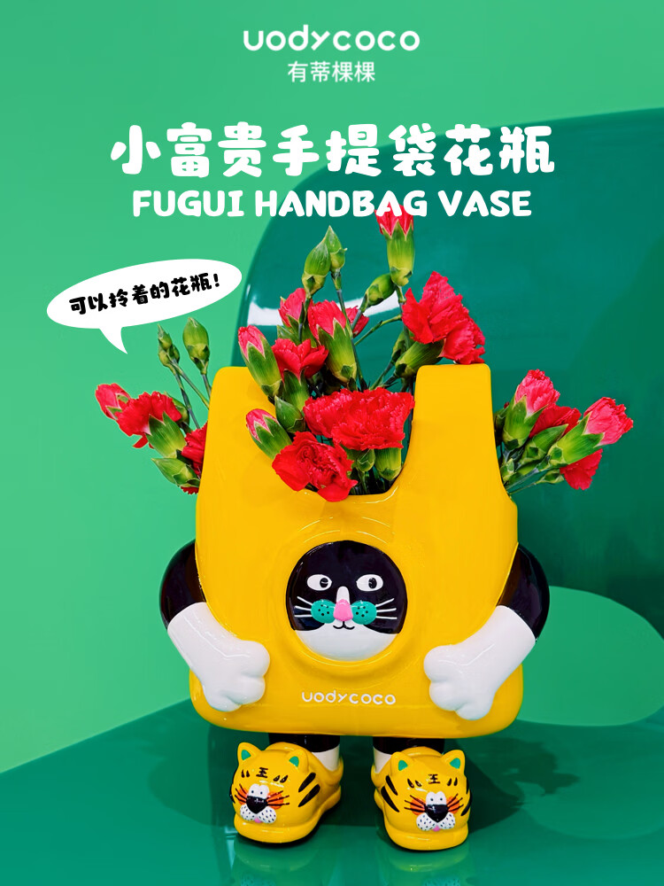 UODYCOCO原创小富贵花瓶手绘设计高级感轻奢可爱卡通创意插花容器生日礼物 小富贵手提袋花瓶