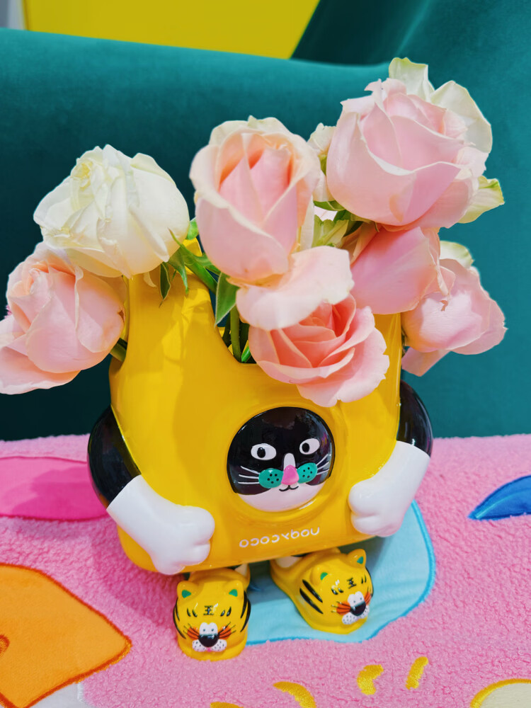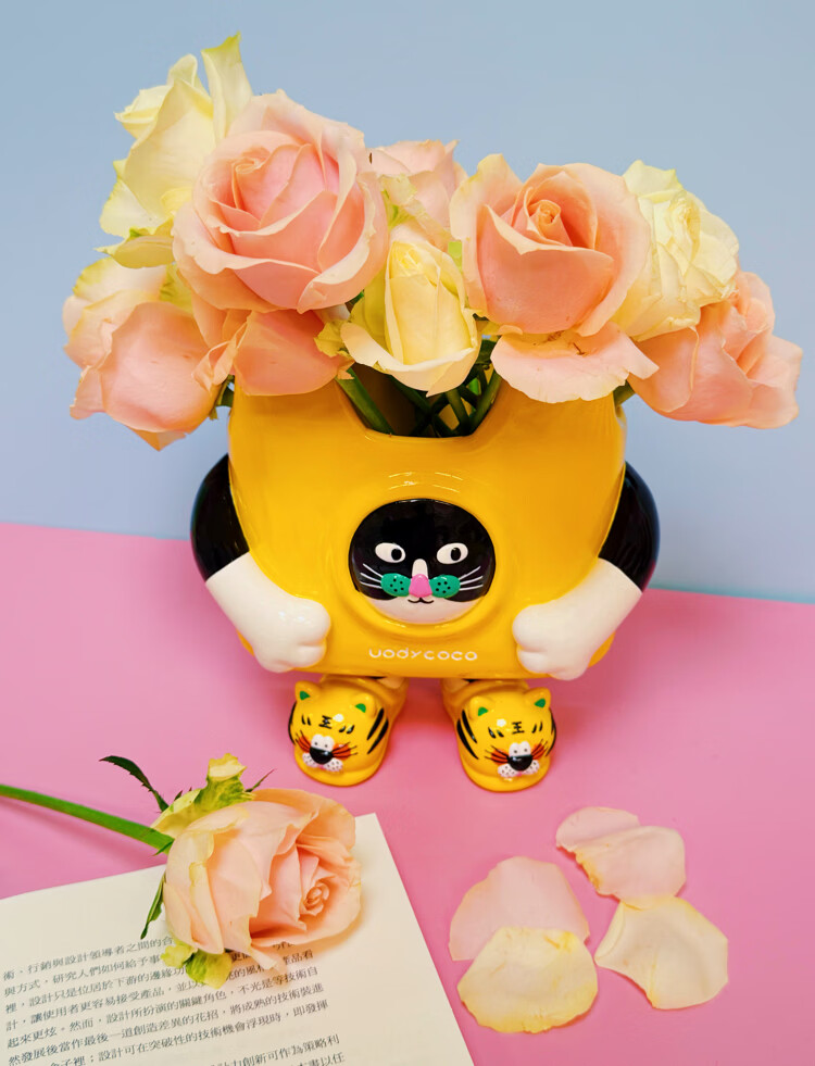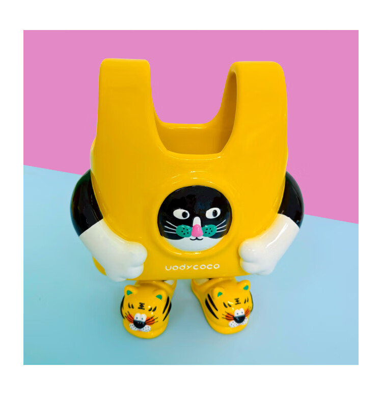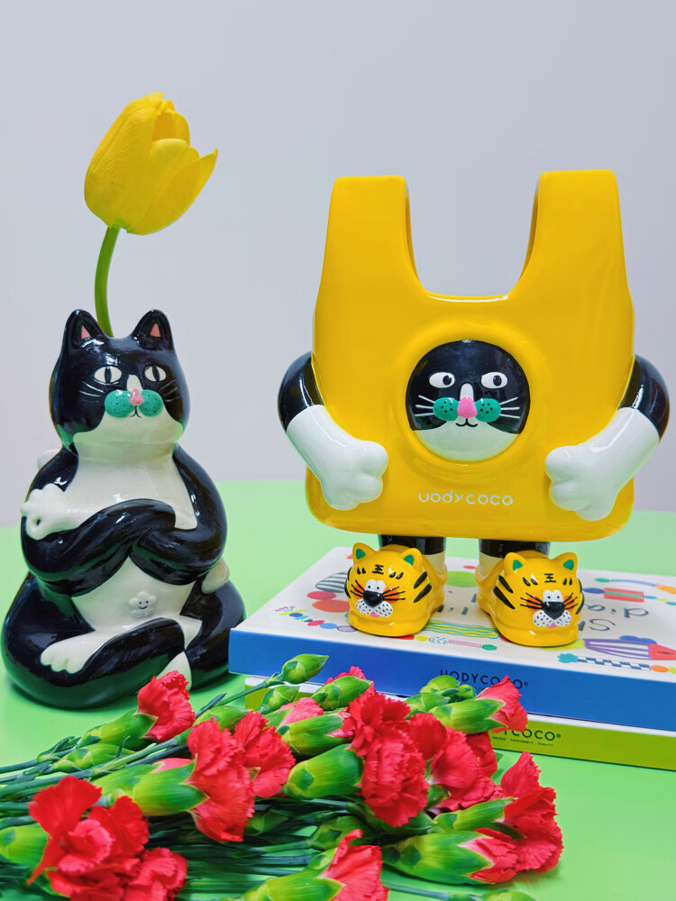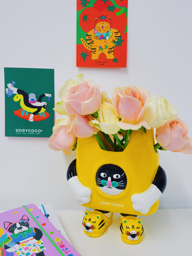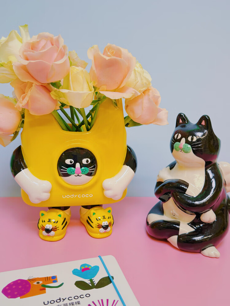 UODYCOCO原创小富贵花瓶手绘设计高级感轻奢可爱卡通创意插花容器生日礼物 小富贵手提袋花瓶
