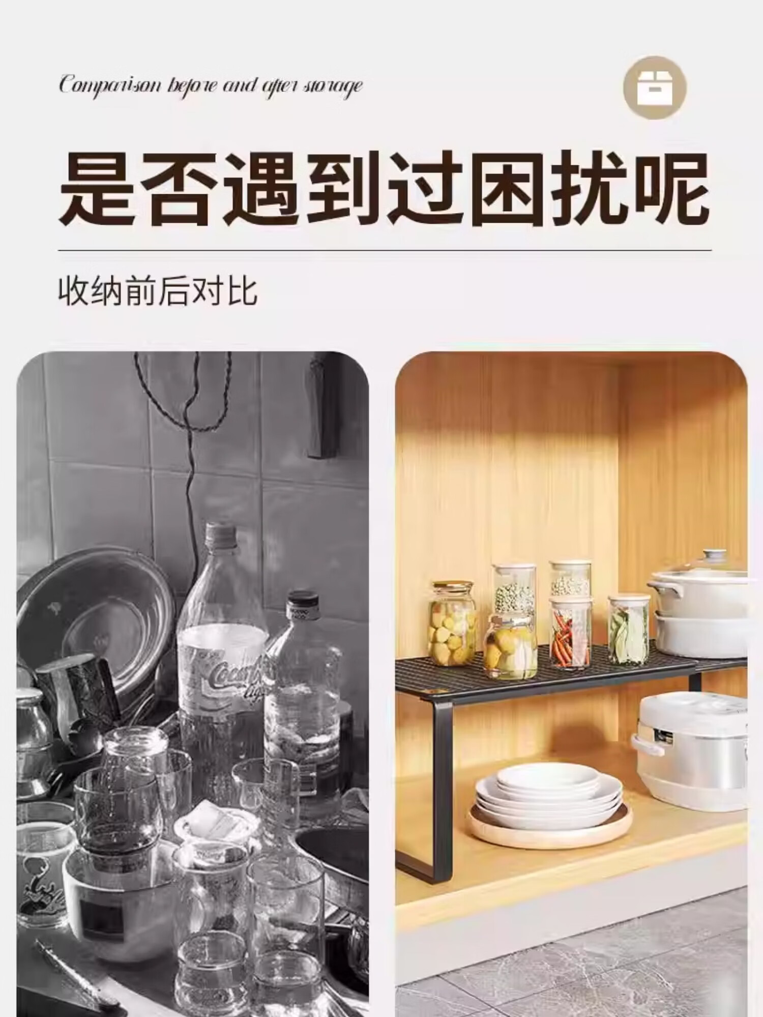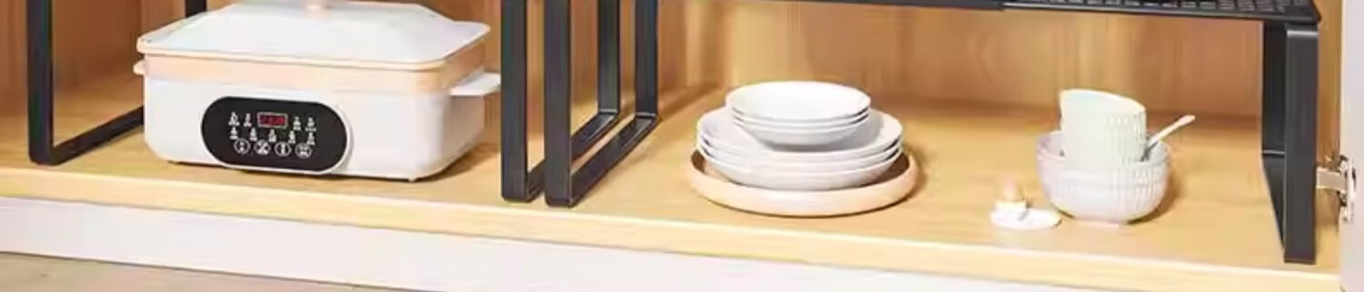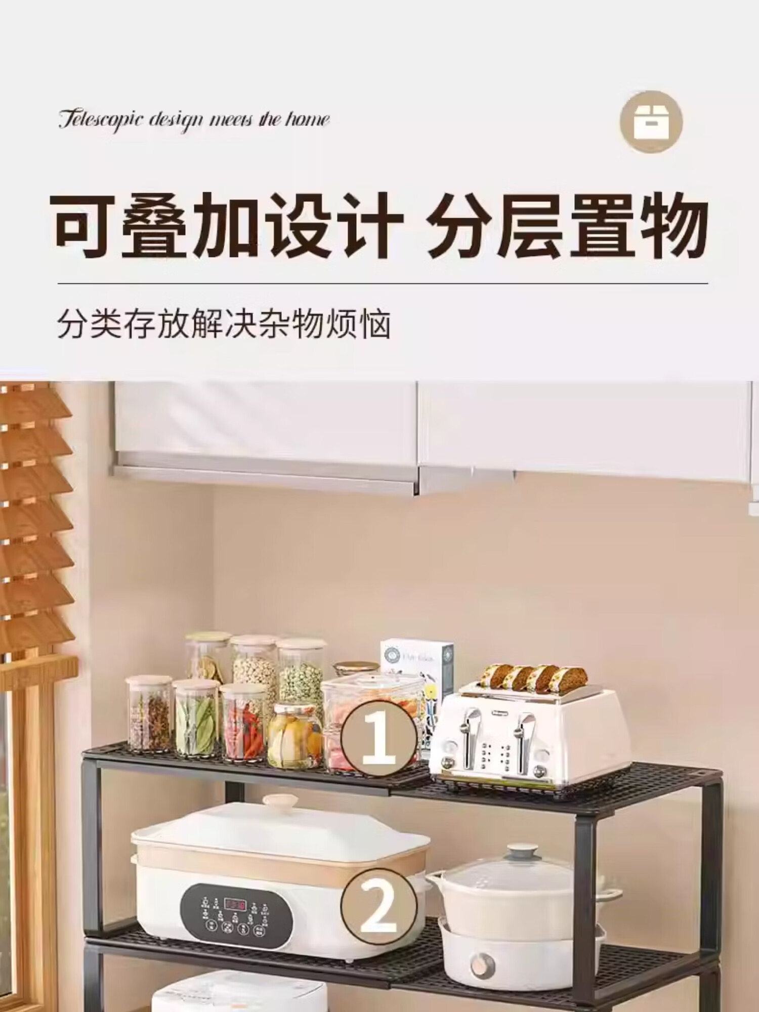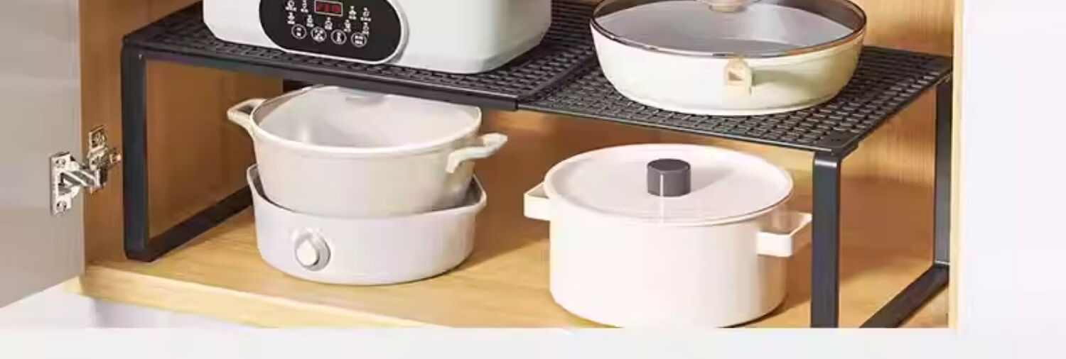 馨婺家可伸缩厨房橱柜分层置物架柜内隔板台面下水槽调料碗盘锅具收纳架 黑色-伸缩27-38*27*22【单层】