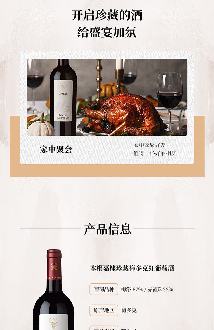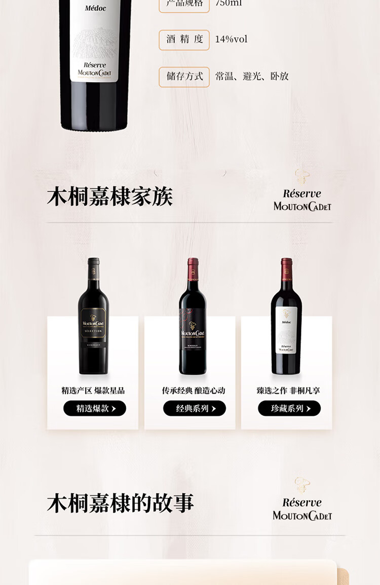 木桐嘉棣(MOUTON CADET)法国 波尔多 珍藏 梅多克 红葡萄酒 750ml 整箱 年货