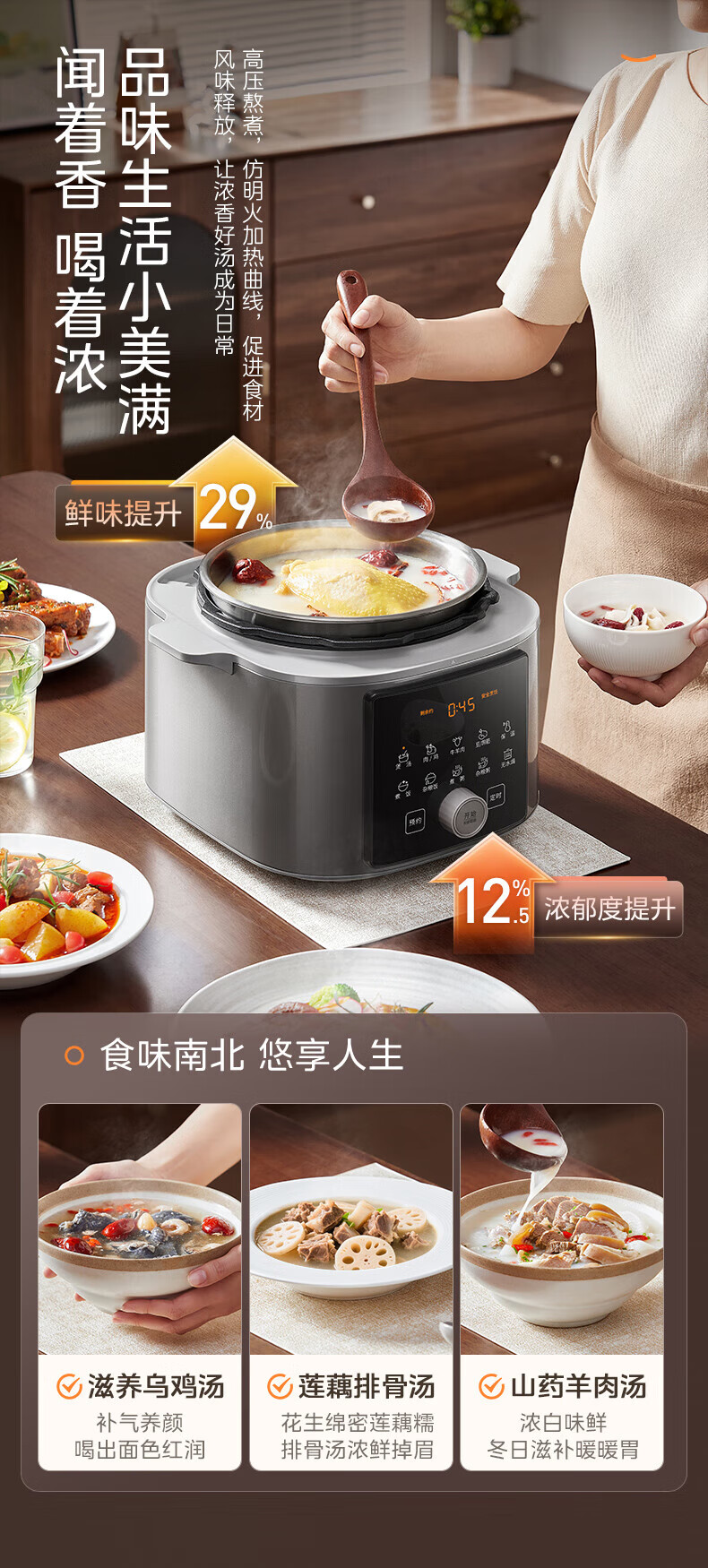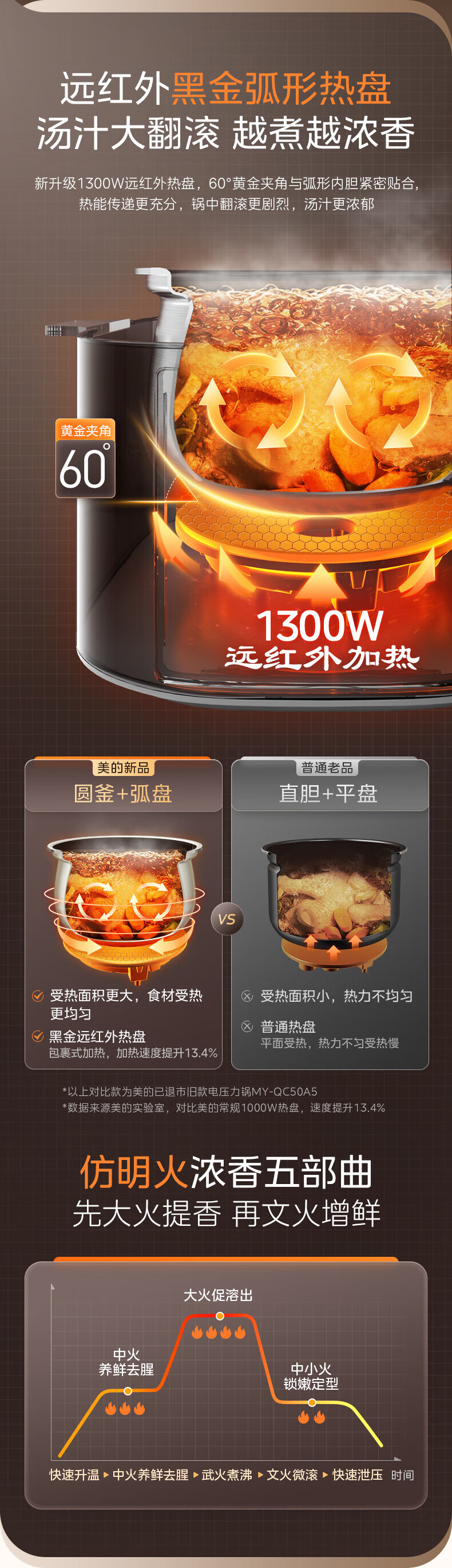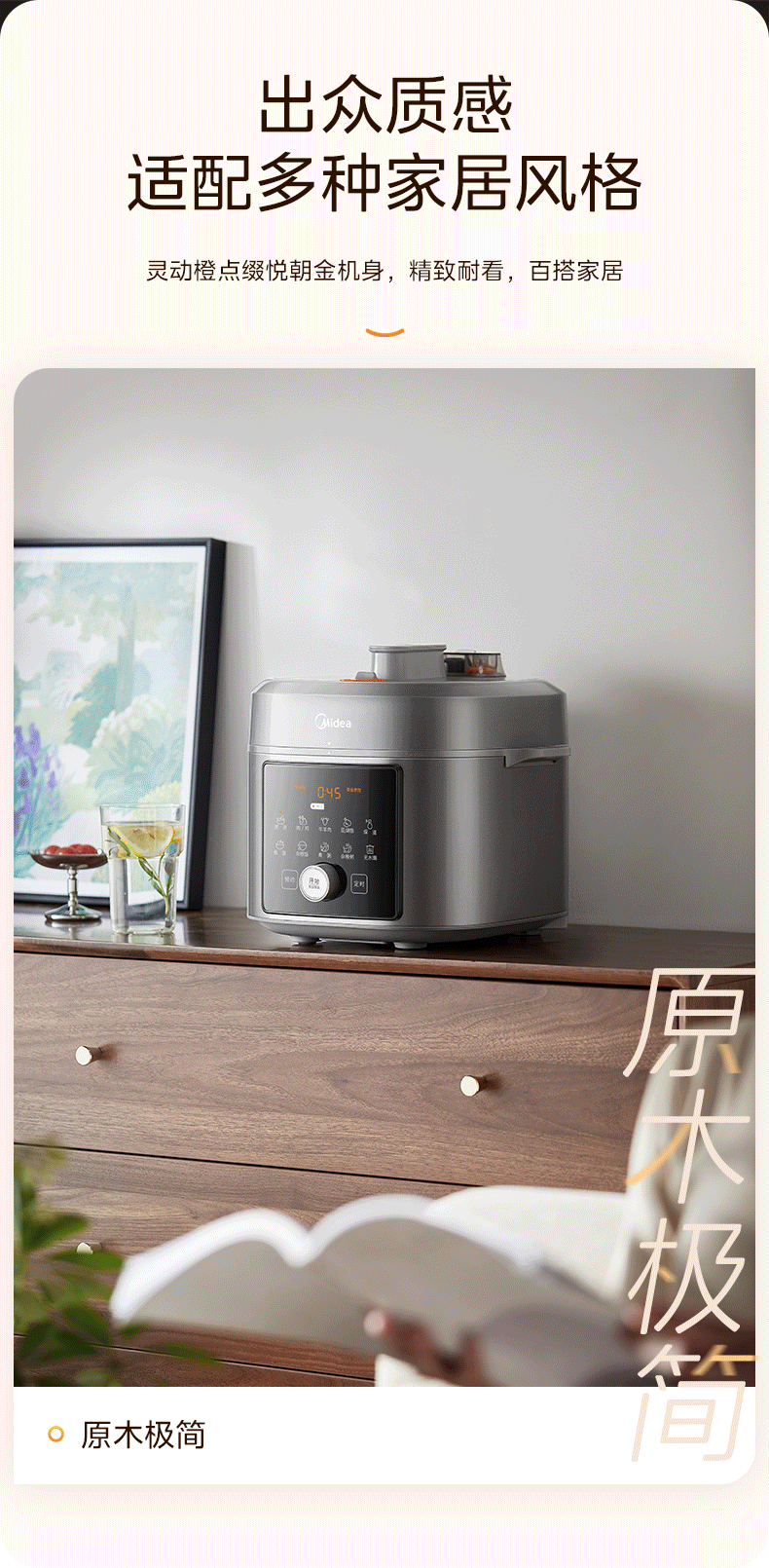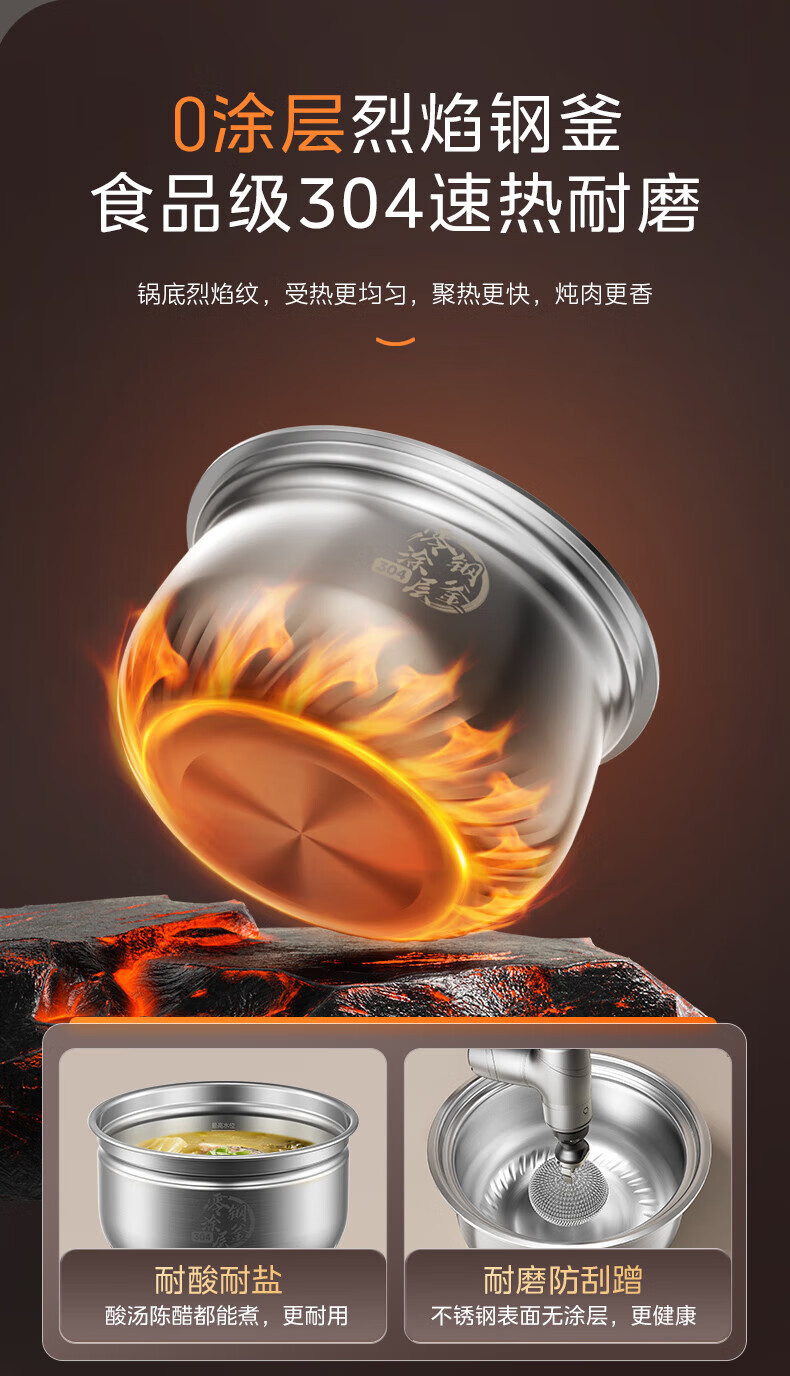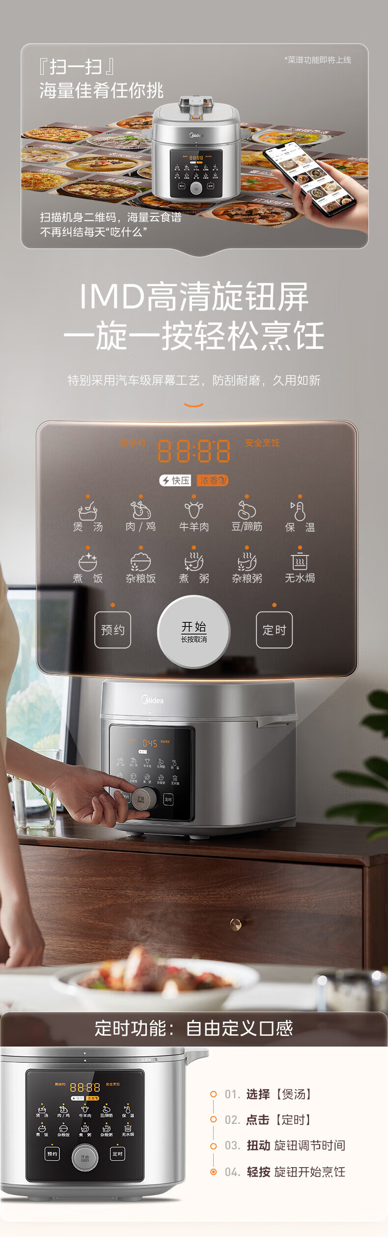美的(Midea)沸腾浓香双模式小飞侠电压力锅0氟0涂层双胆304不锈钢高压锅5L智能多功能预约家用煲汤4-6人煮饭煲 MY-E5825N 5L