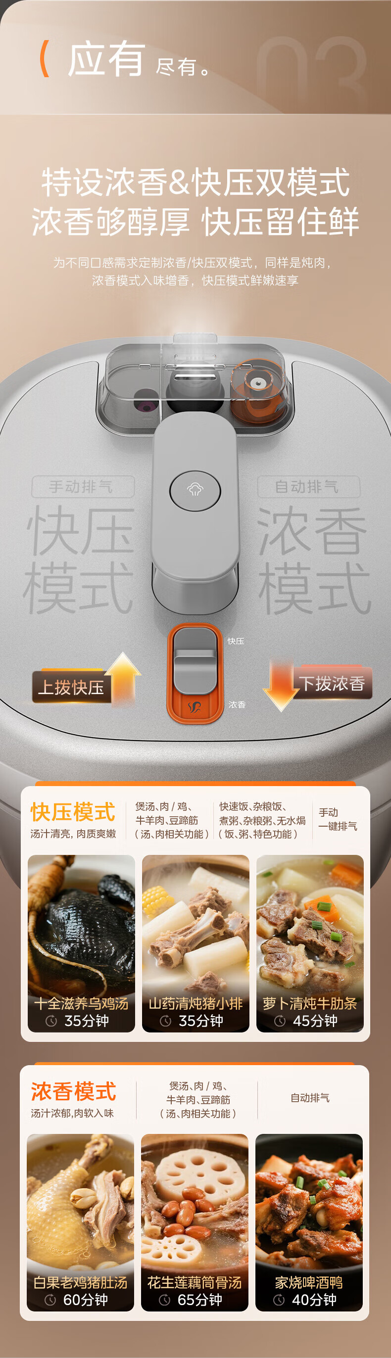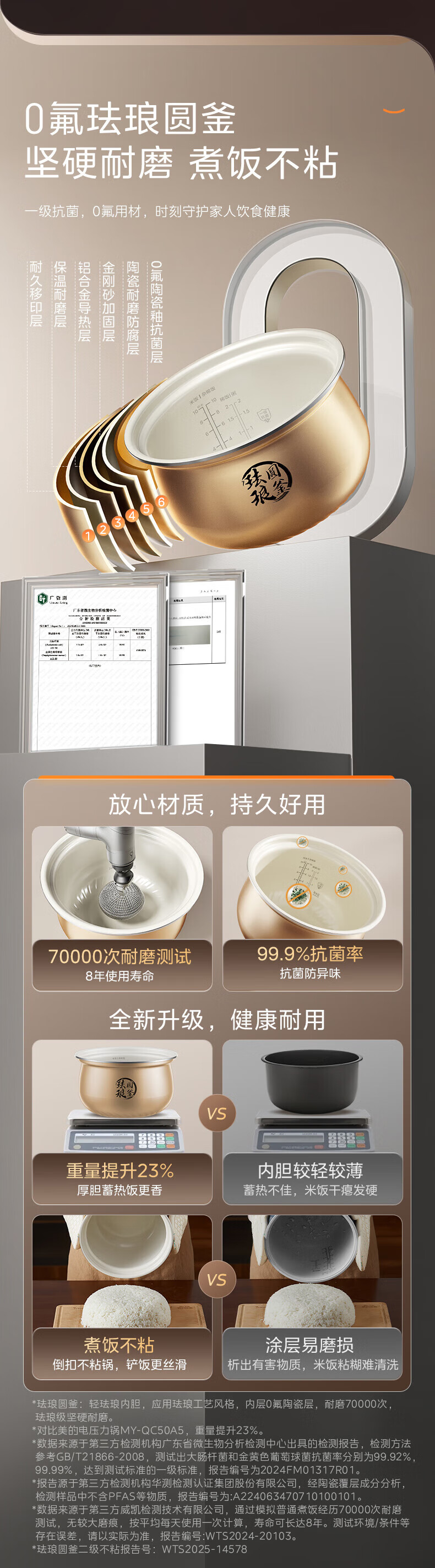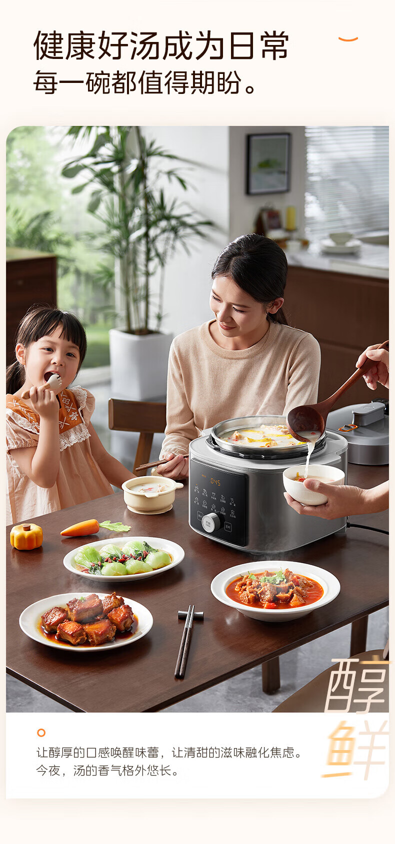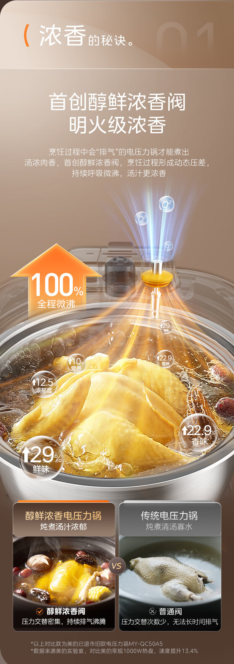 美的(Midea)沸腾浓香双模式小飞侠电压力锅0氟0涂层双胆304不锈钢高压锅5L智能多功能预约家用煲汤4-6人煮饭煲 MY-E5825N 5L