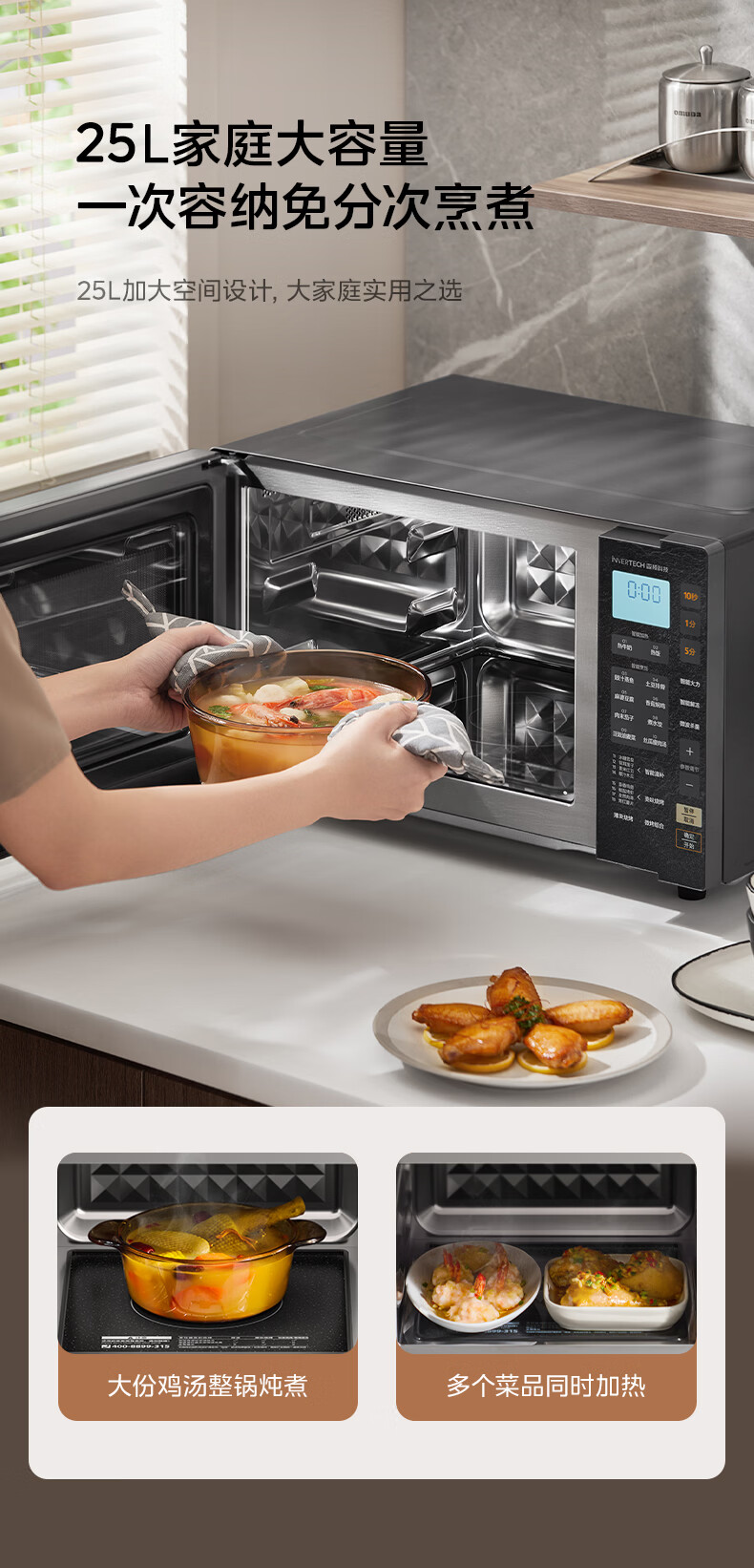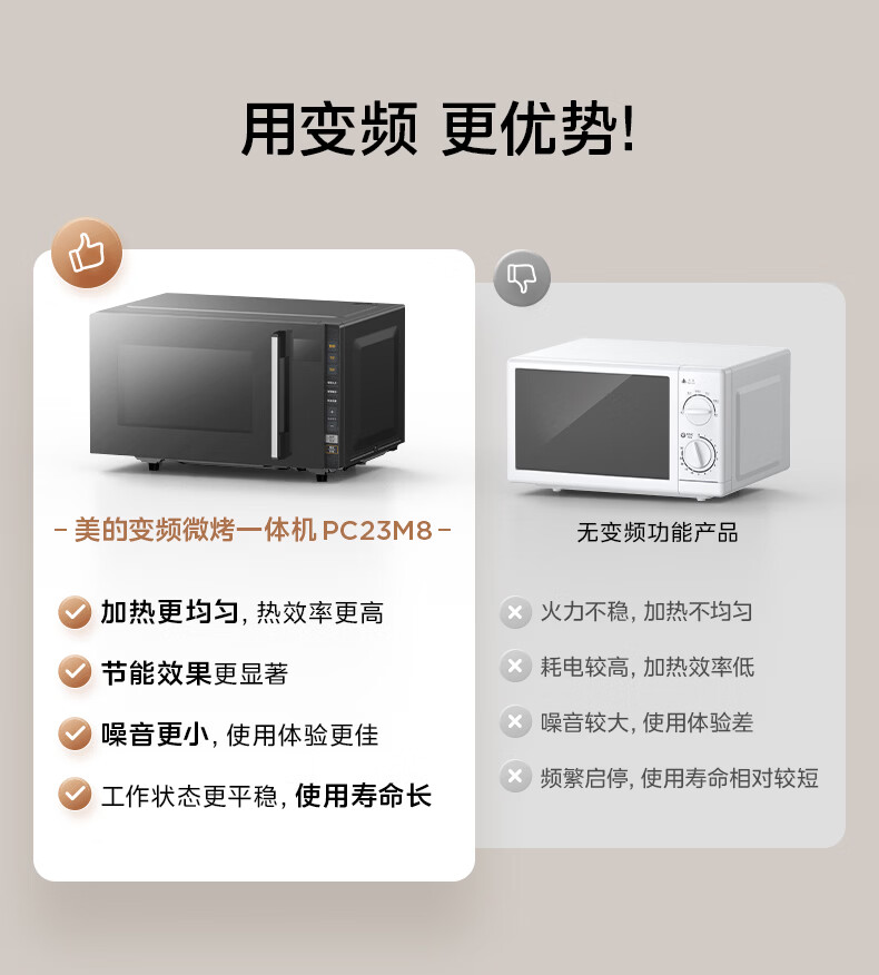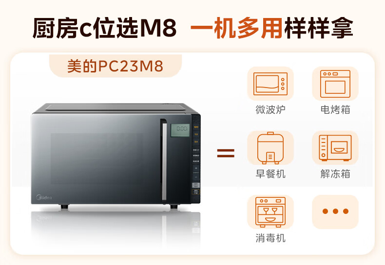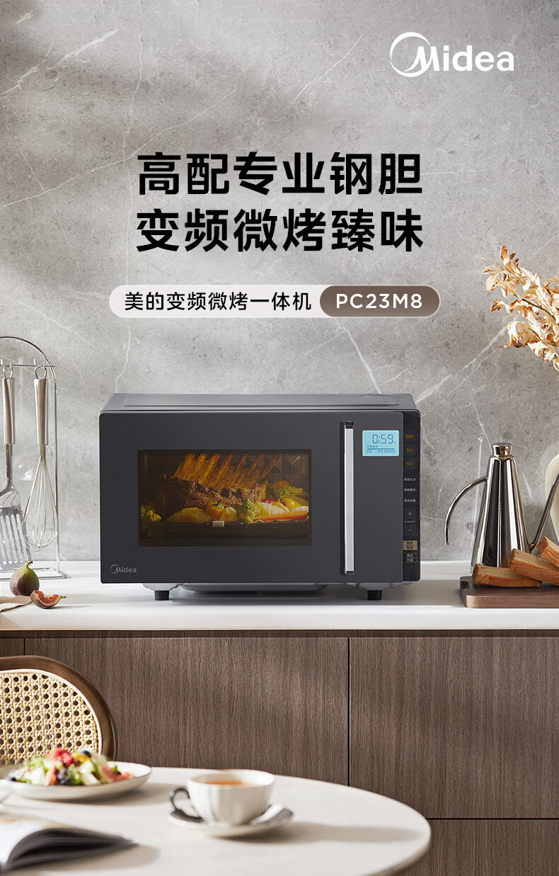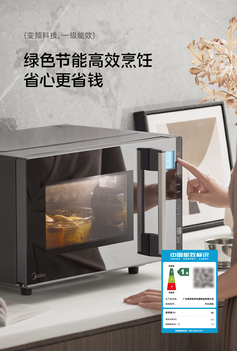 美的(Midea)微碳系列微波炉家用微烤一体机不锈钢内胆一级能效平板25升解冻解热PC23M8