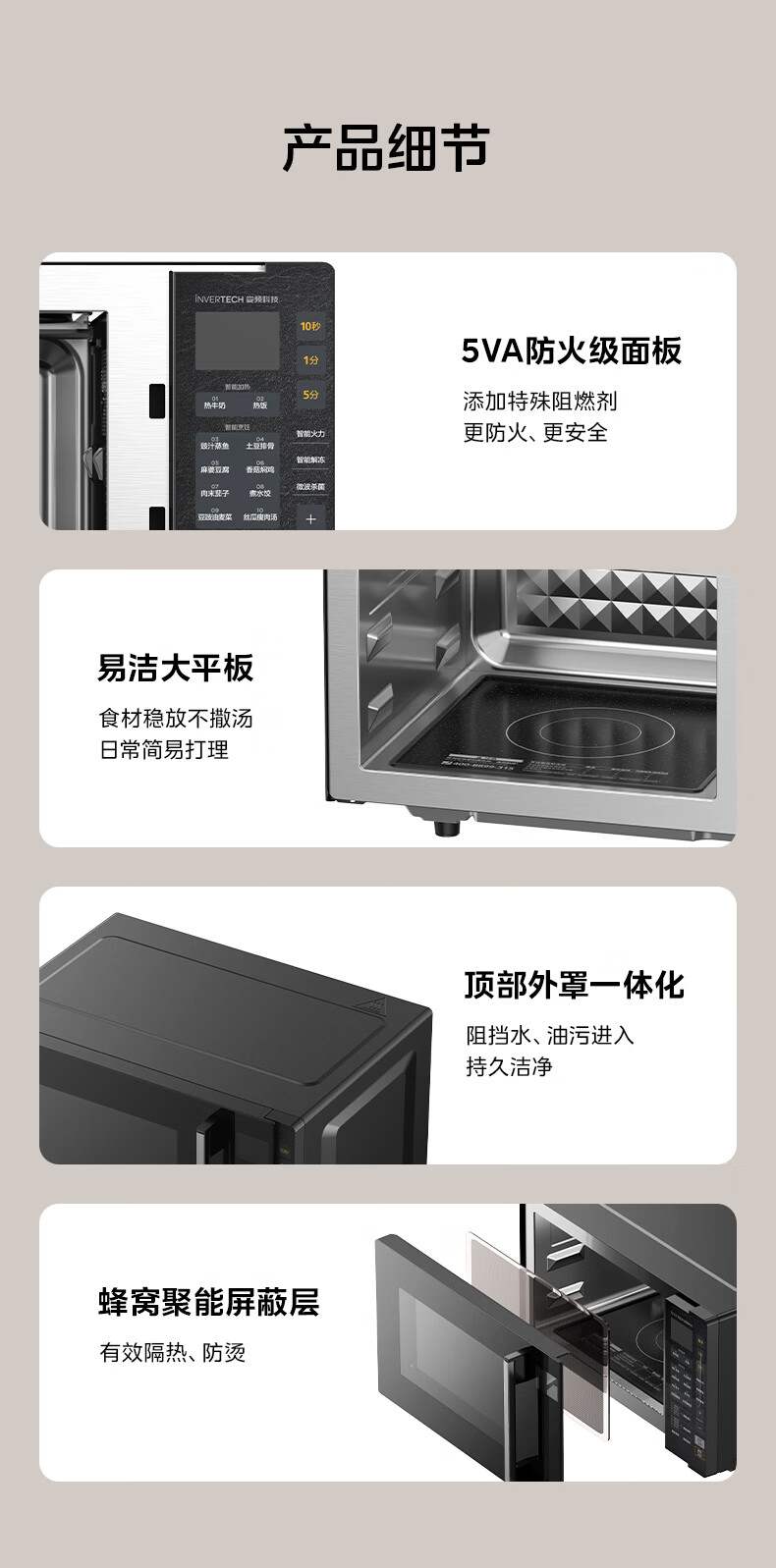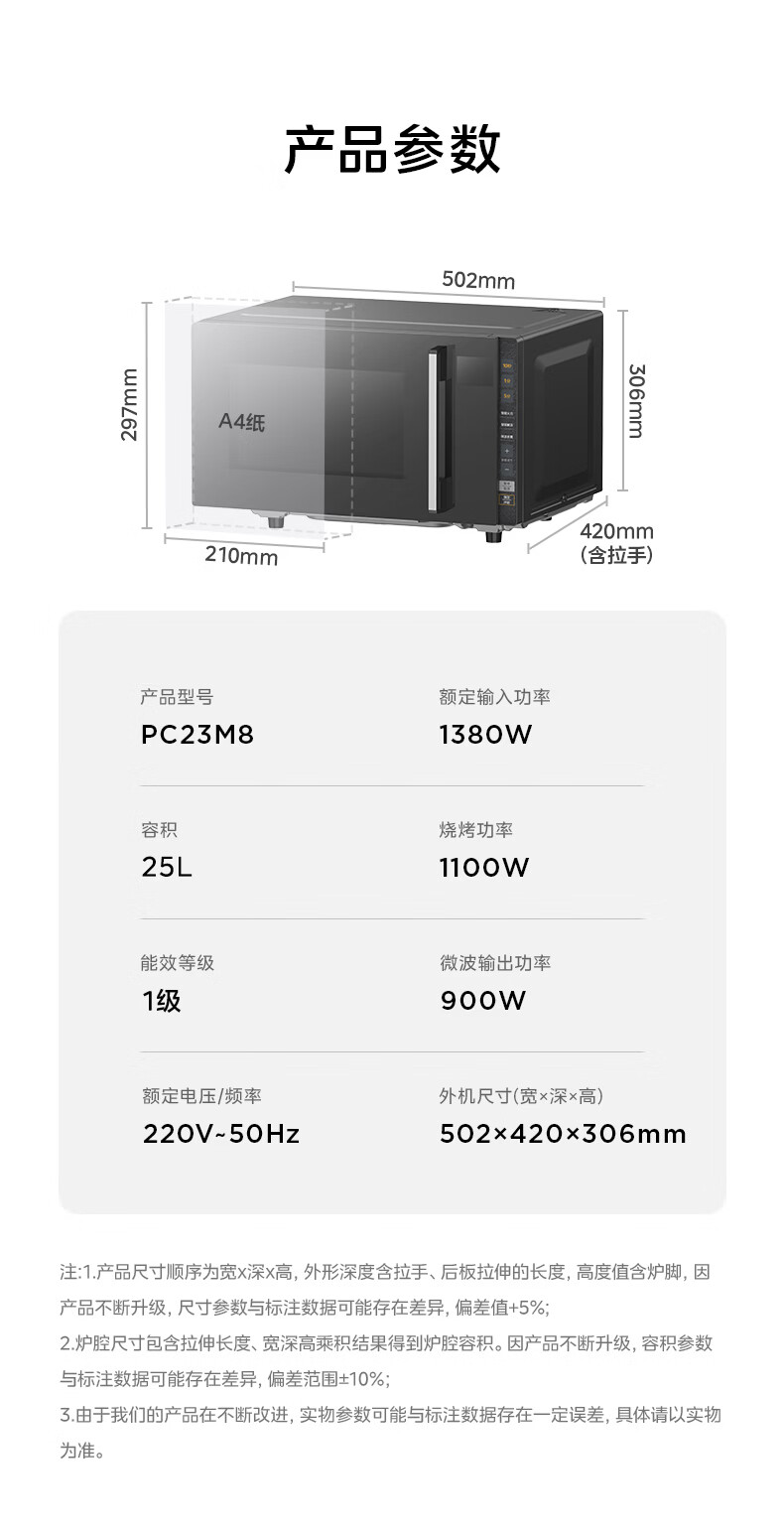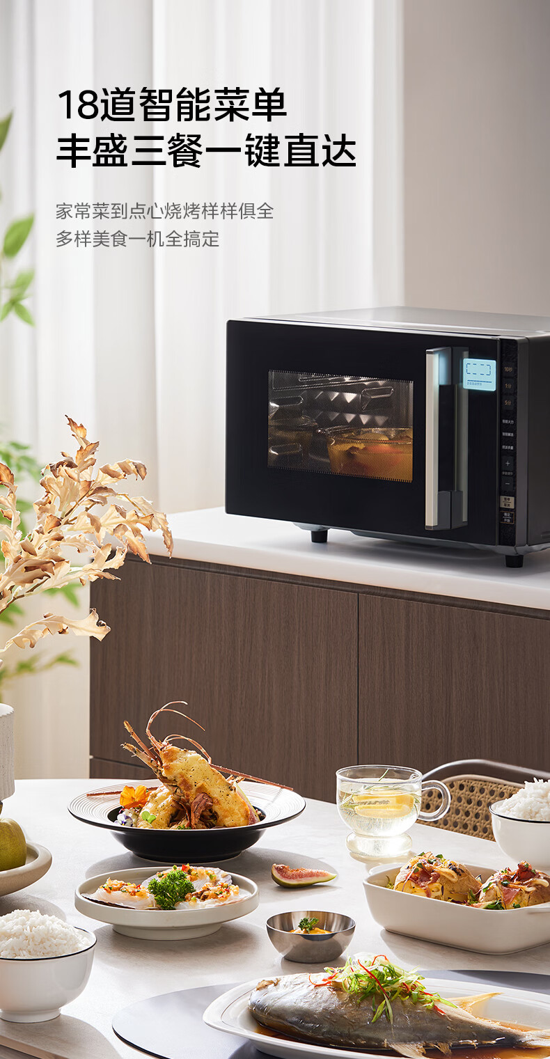 美的(Midea)微碳系列微波炉家用微烤一体机不锈钢内胆一级能效平板25升解冻解热PC23M8