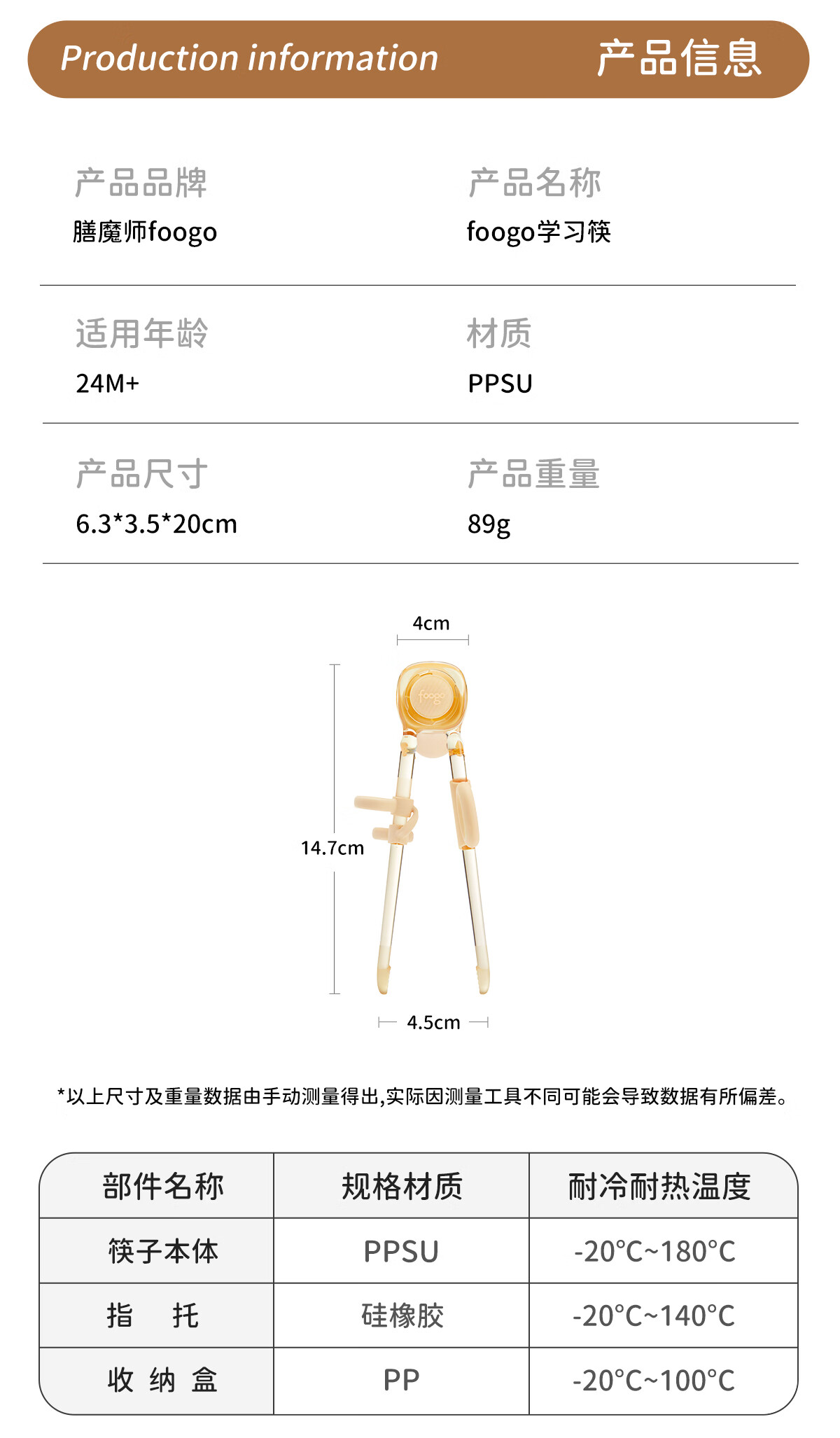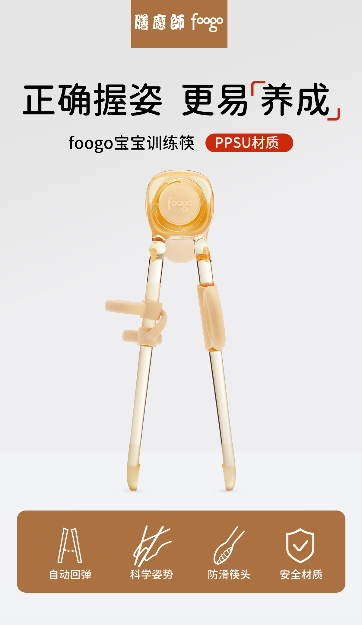 膳魔师foogo学习筷ppsu幼儿园儿童训练筷2-4-5岁婴幼儿宝宝虎口练习筷