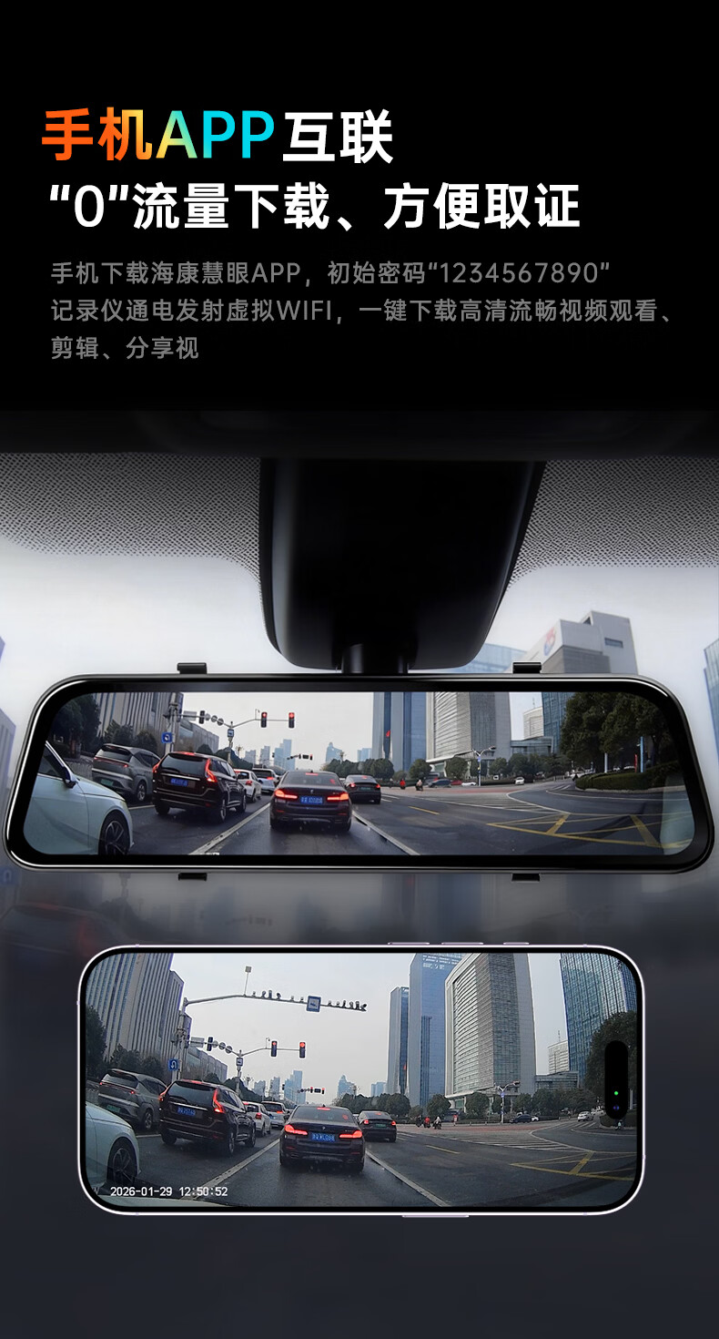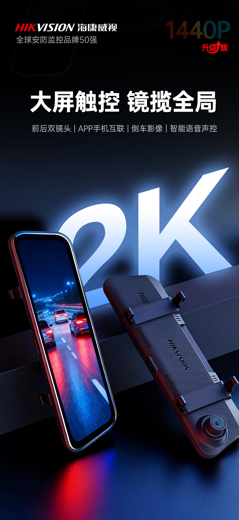 HIKVISION海康威视行车记录仪N6+2K 1440P超高清夜视前后双录流媒体后视镜