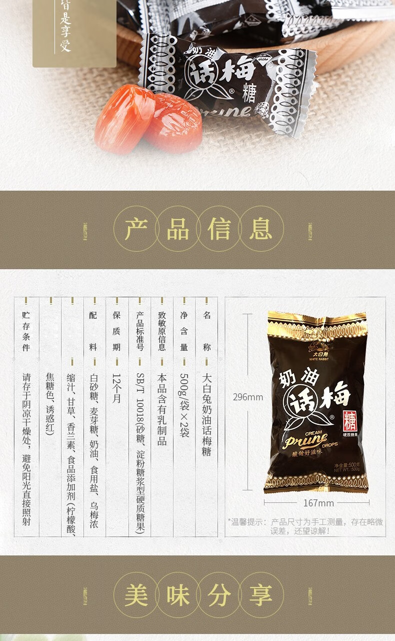 大白兔【采销推荐】 奶油话梅糖500g约100颗 散装婚庆糖果 新年礼物