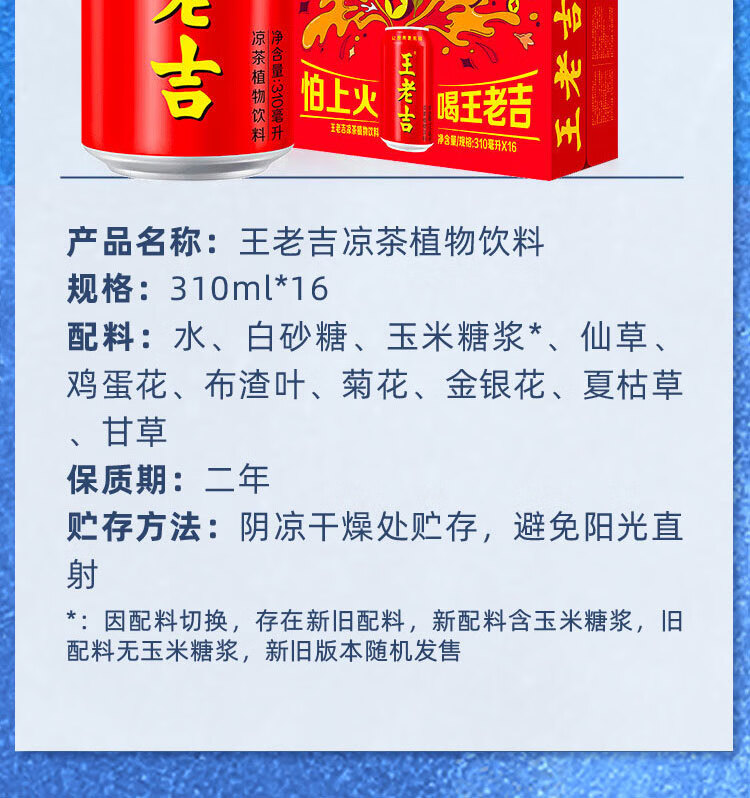 王老吉凉茶310ml*16罐 整箱装 天然植物饮料【张凌赫同款】热门商品推荐
